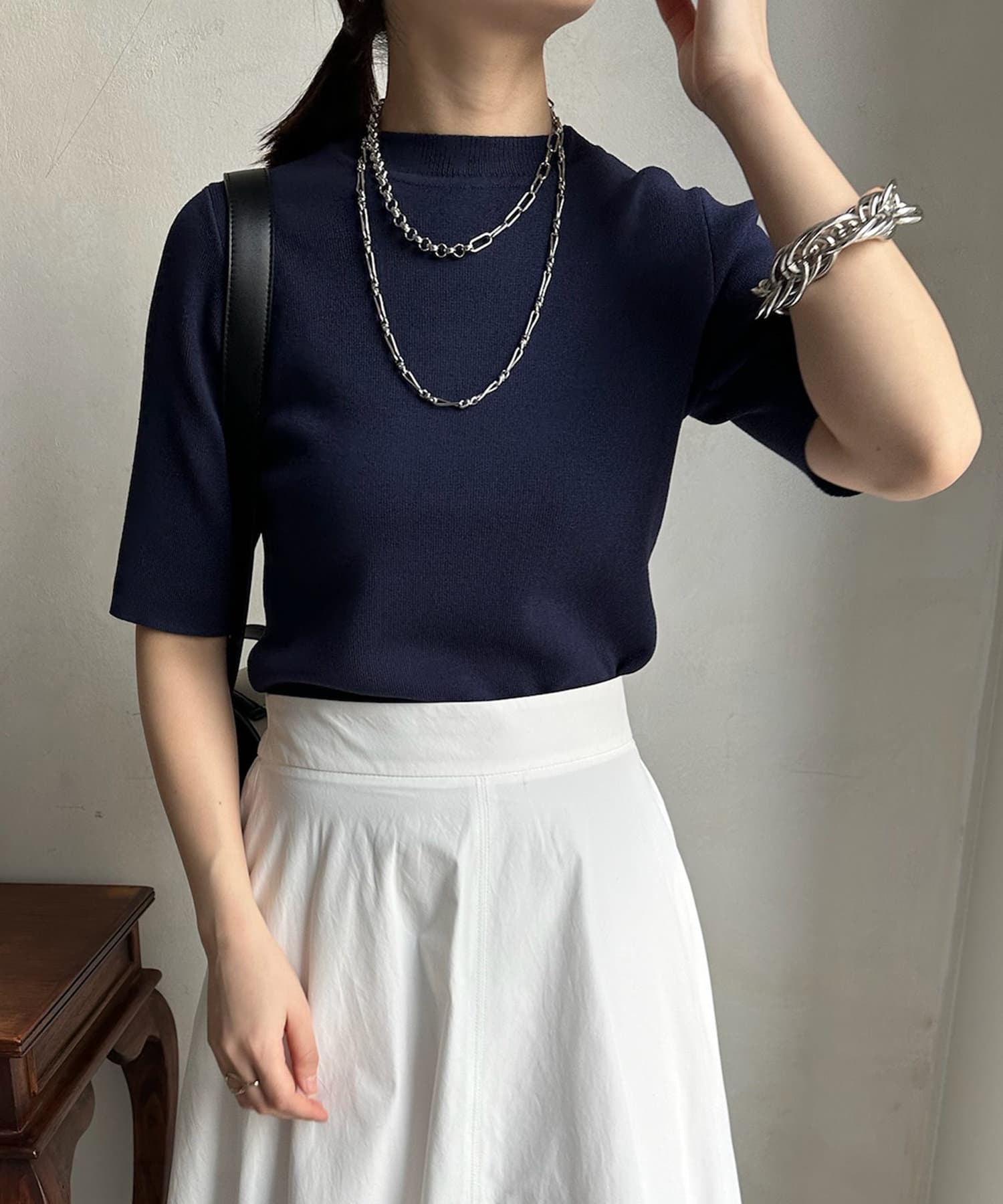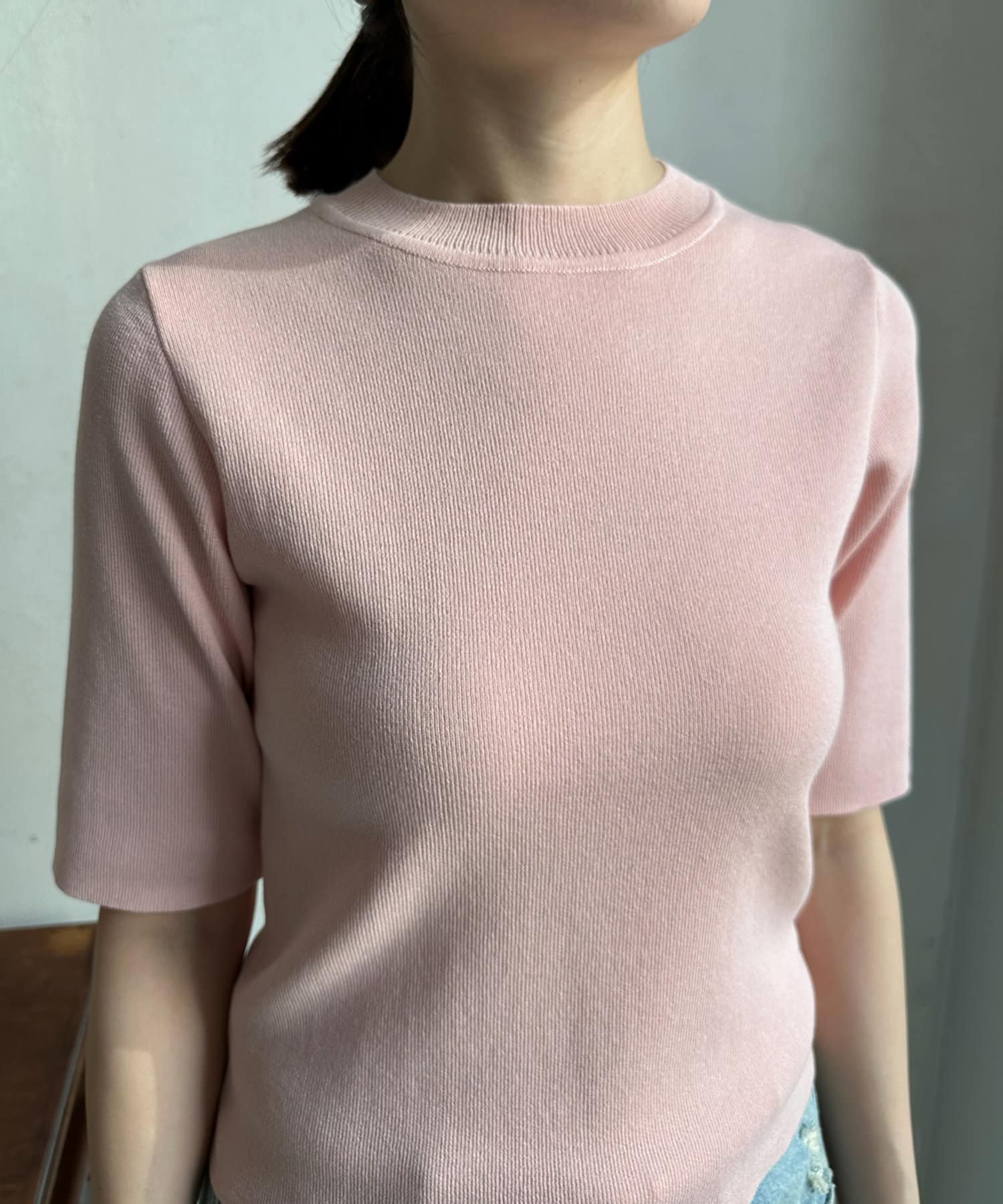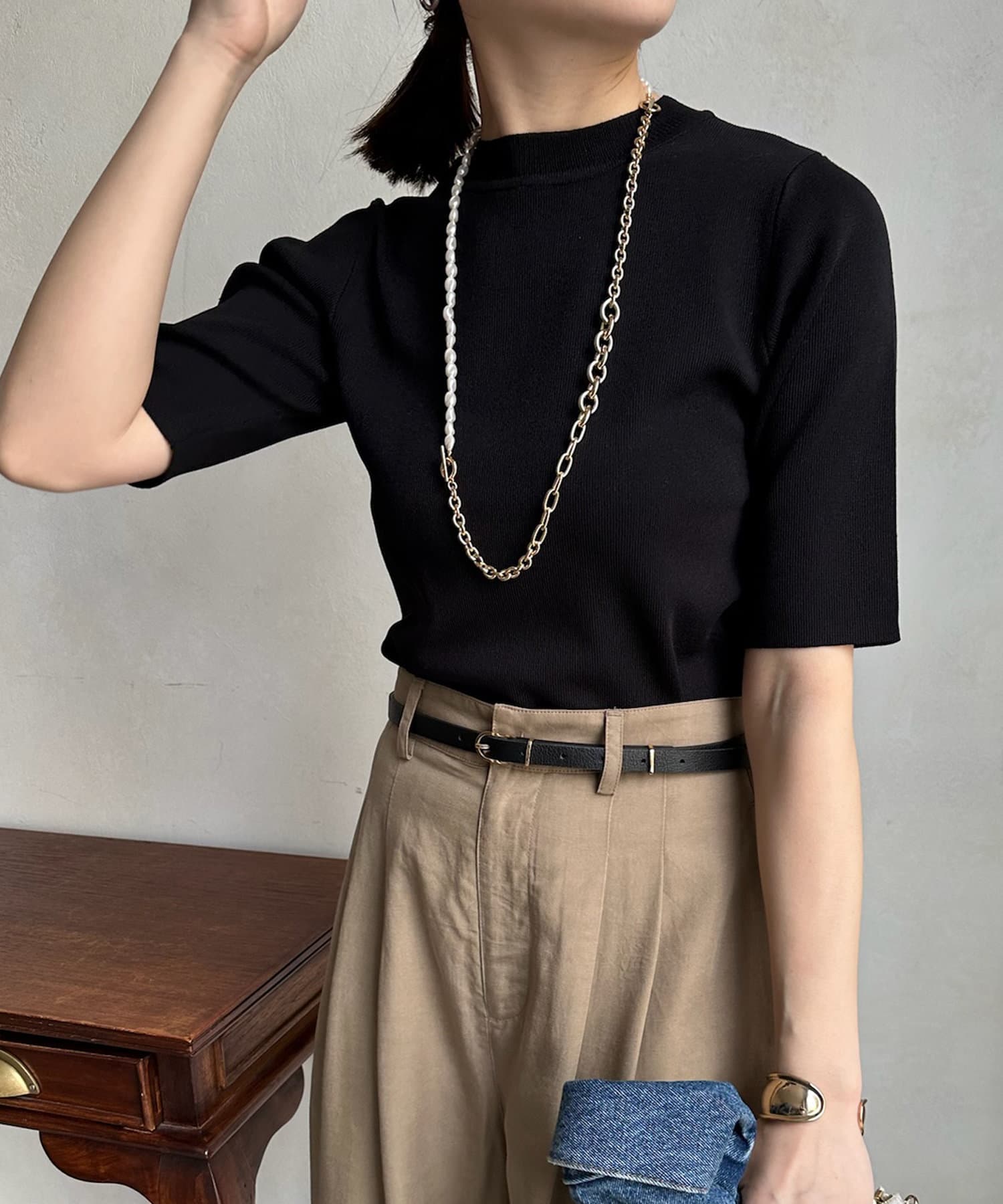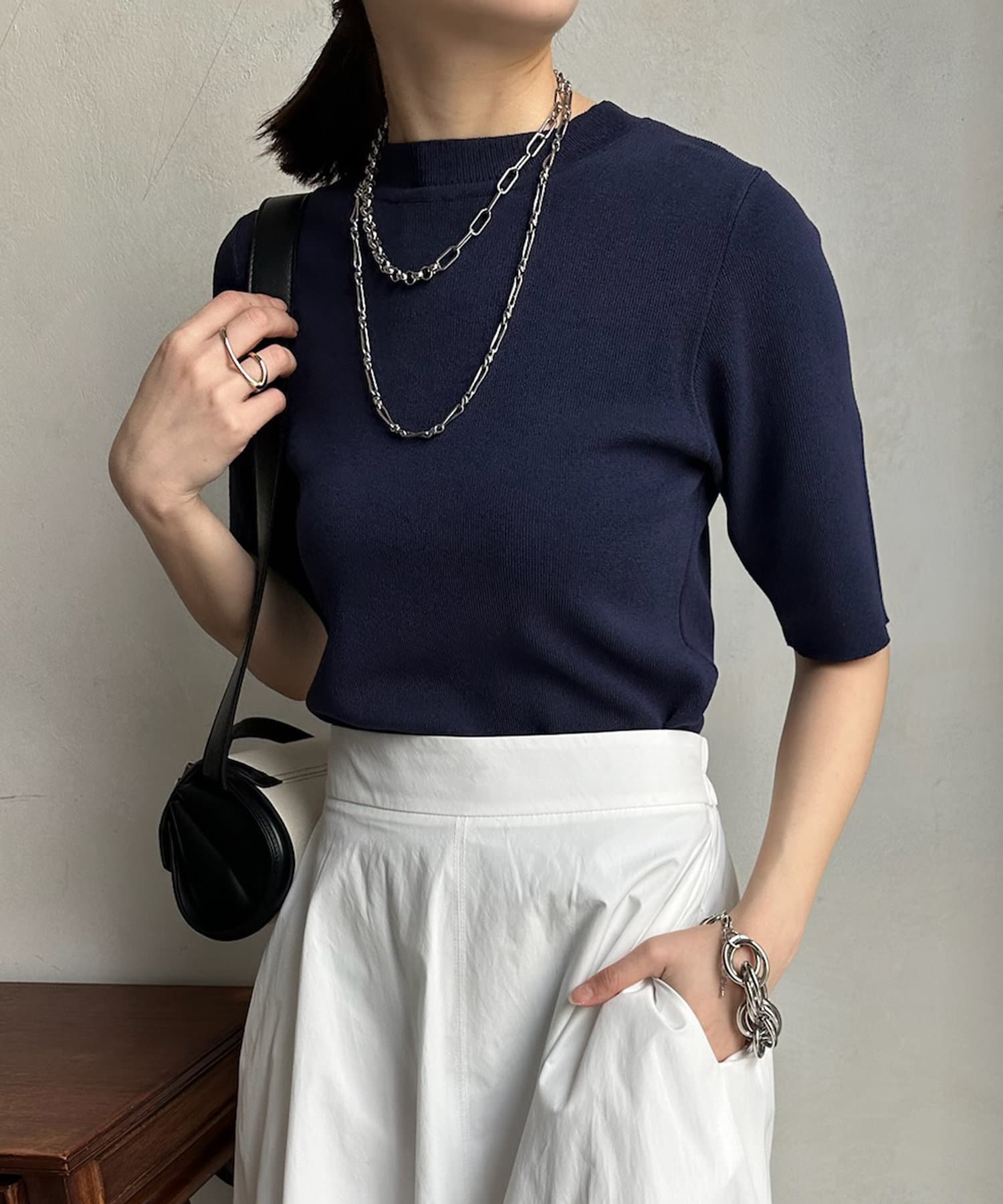 ベーシックで使いやすく、汎用性の高さがポイントの5分袖ニット。