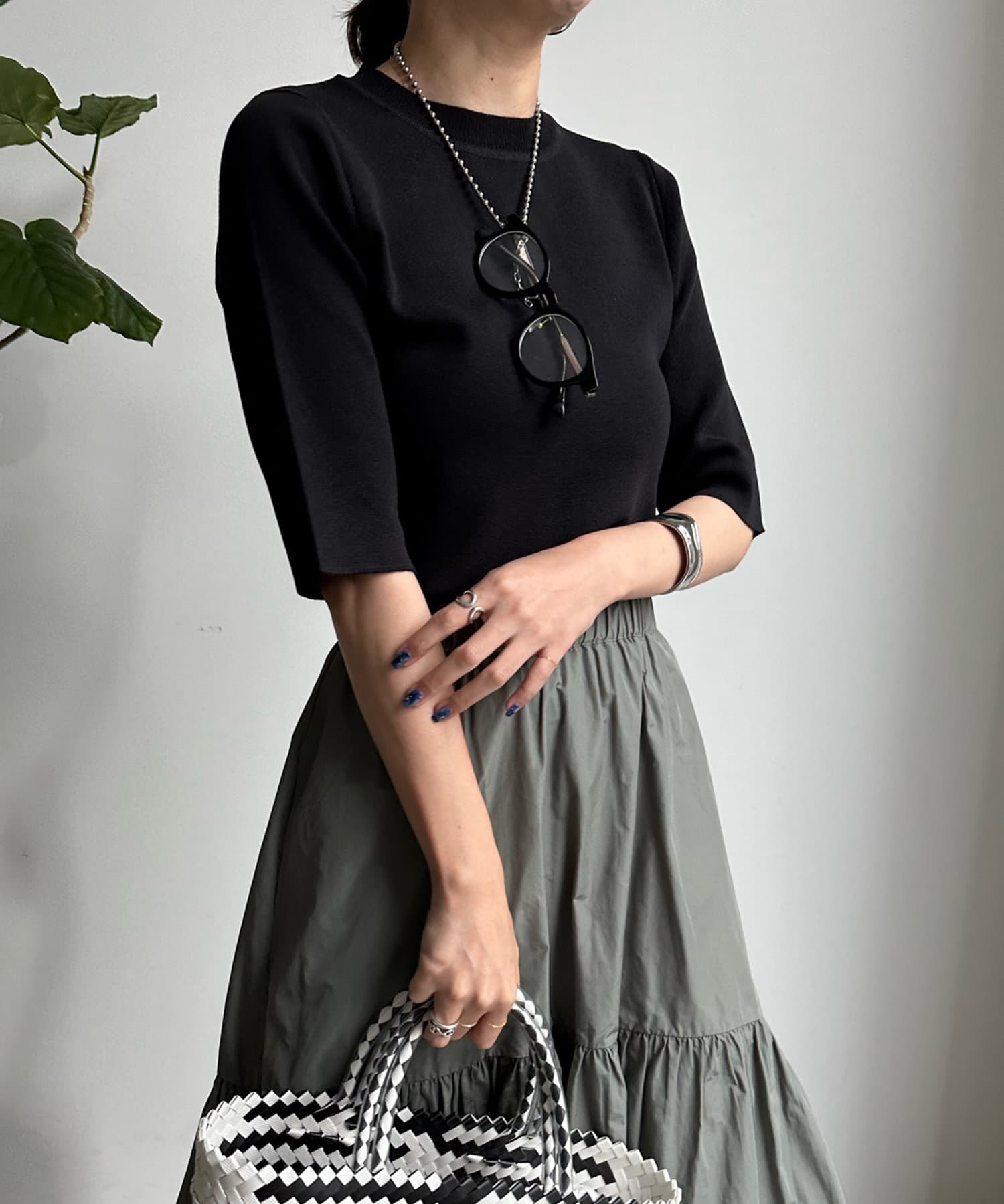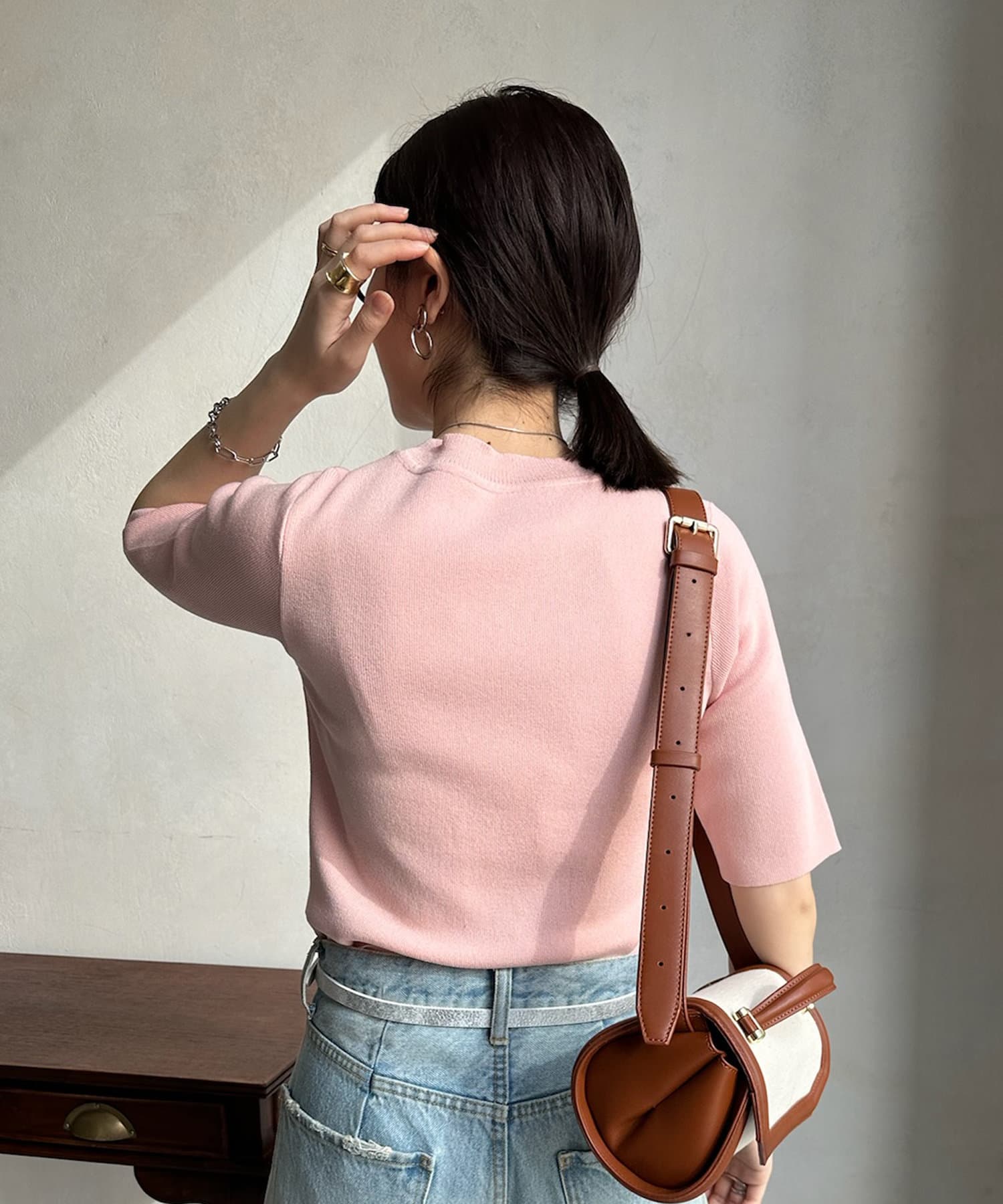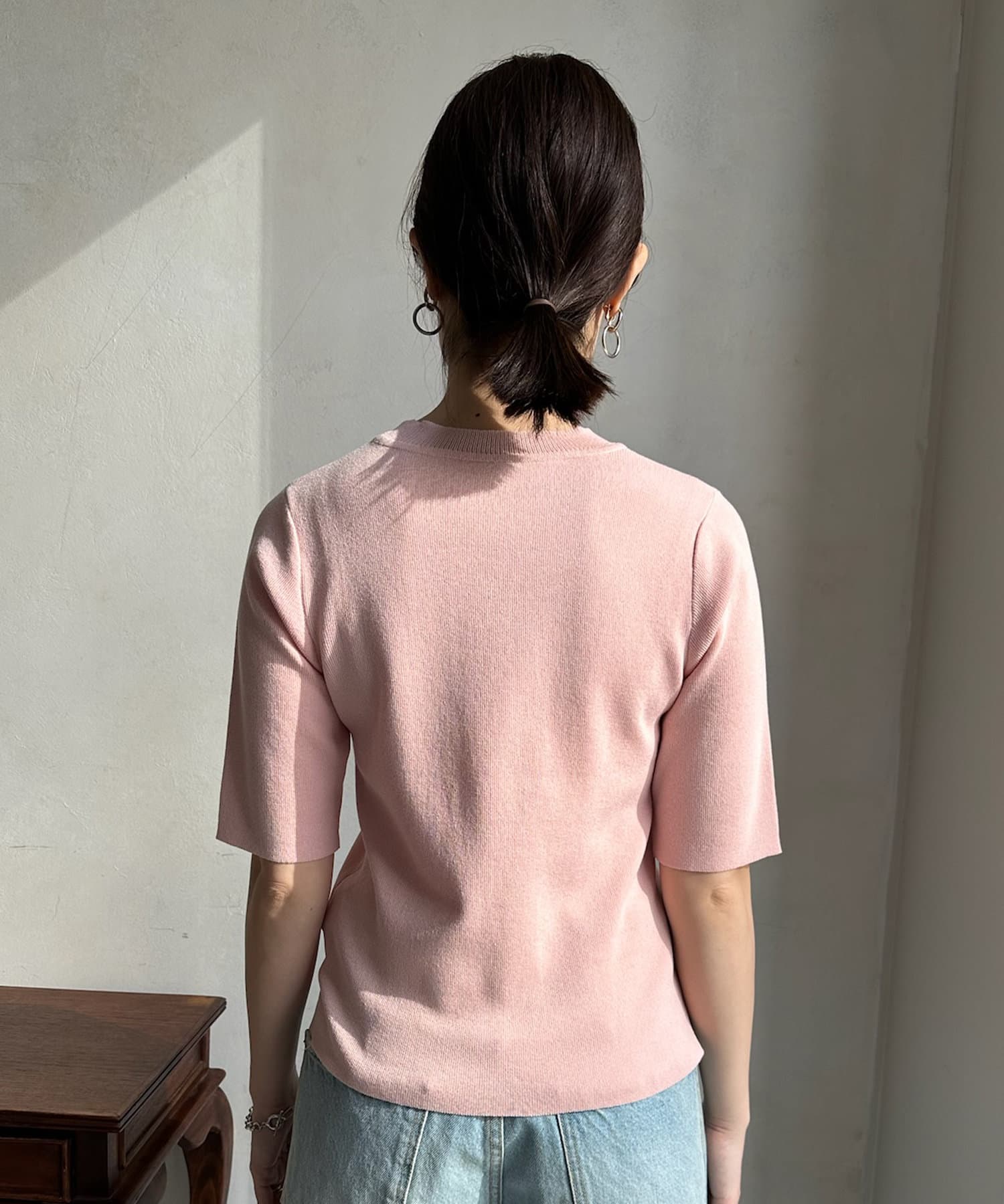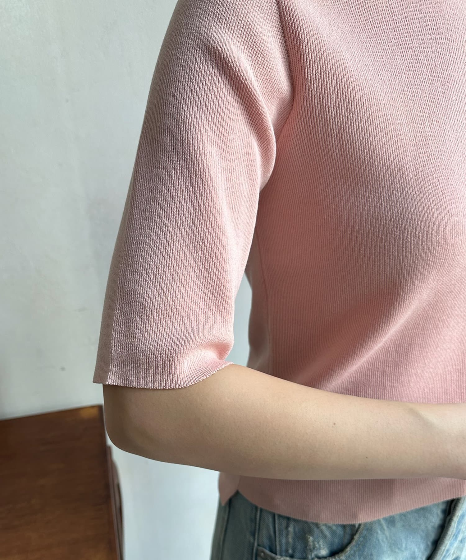 ベーシックで使いやすく、汎用性の高さがポイントの5分袖ニット。