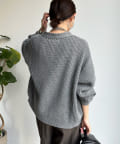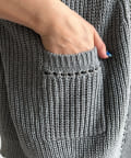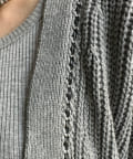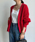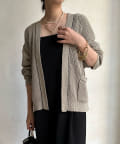 ぱっと目を惹き、カジュアルな畔編みカーディガンが女性らしい印象に。