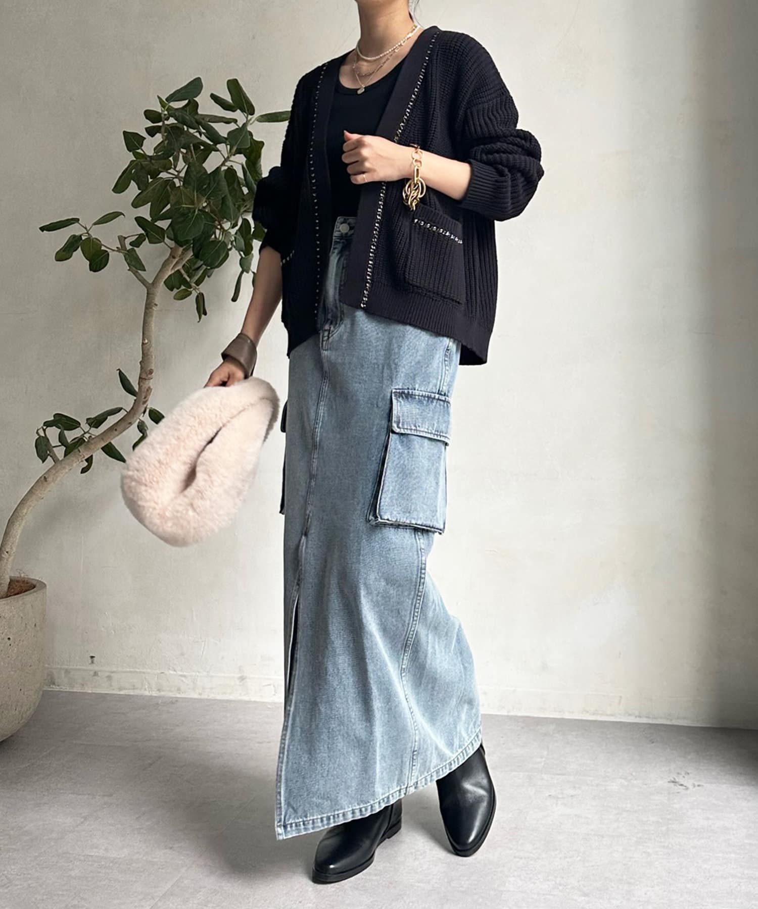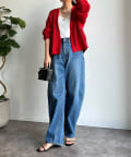 デニムなどのカジュアルなアイテムと合わせて、甘くなりすぎないように着こなすのがおすすめですよ!