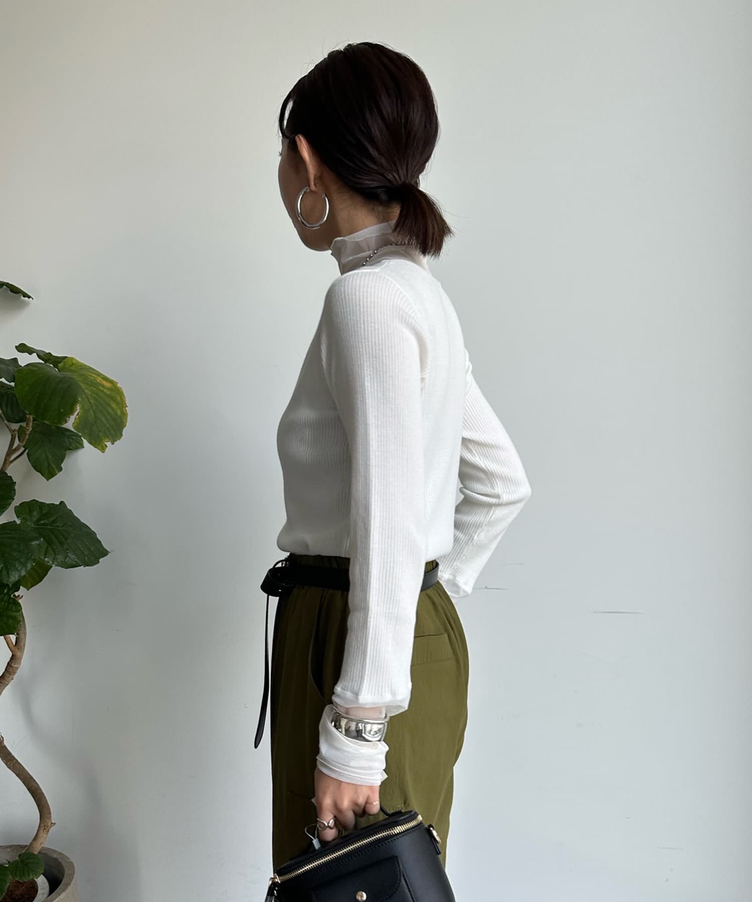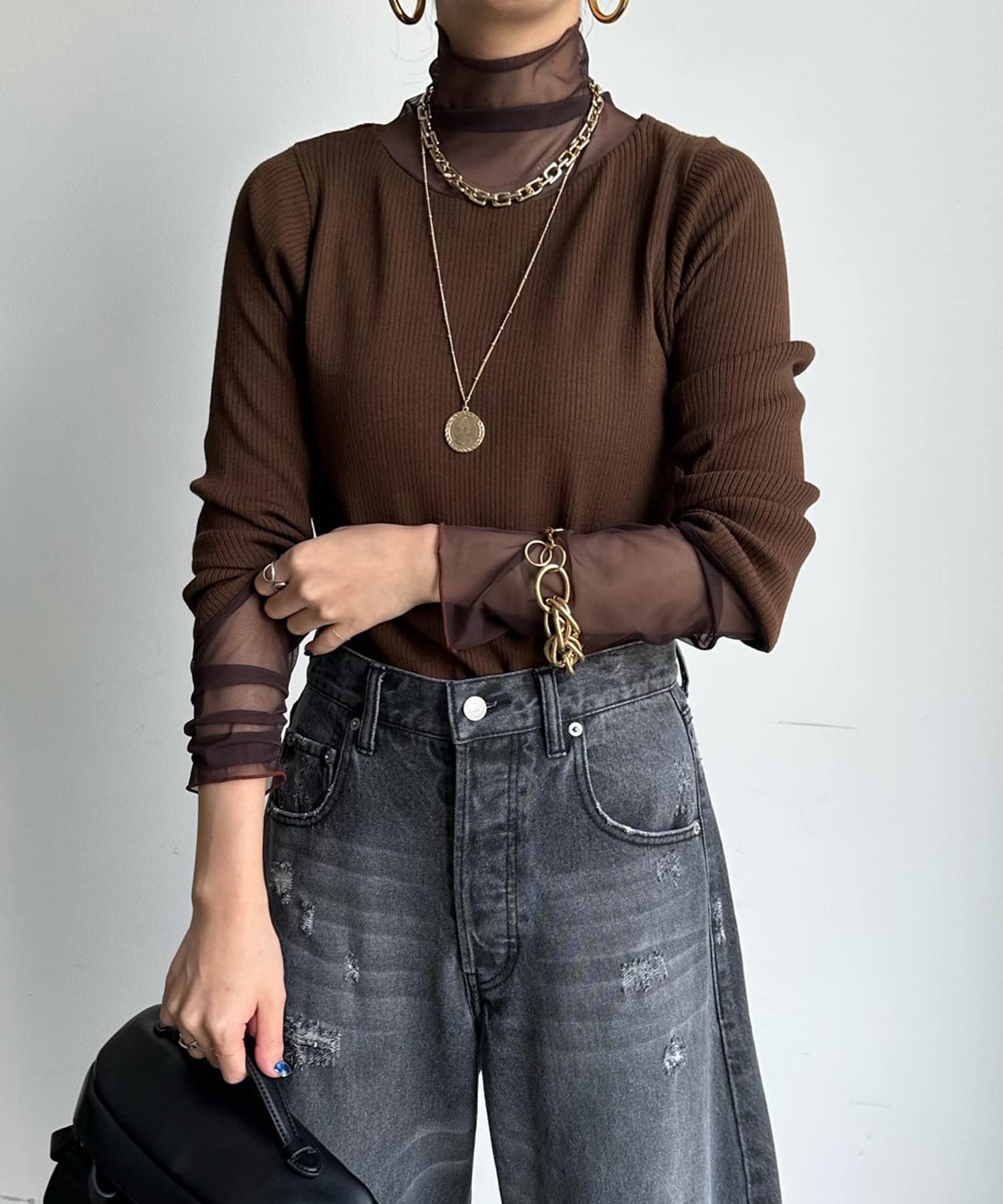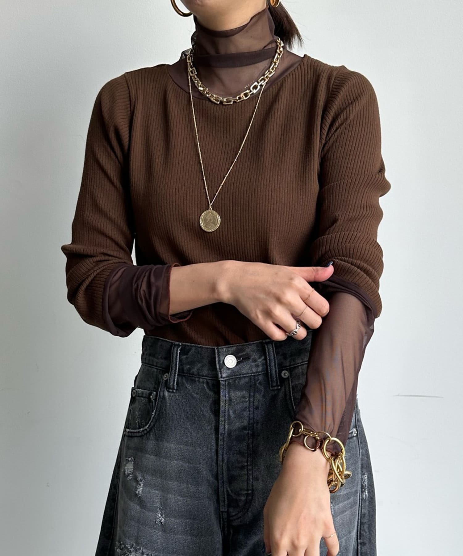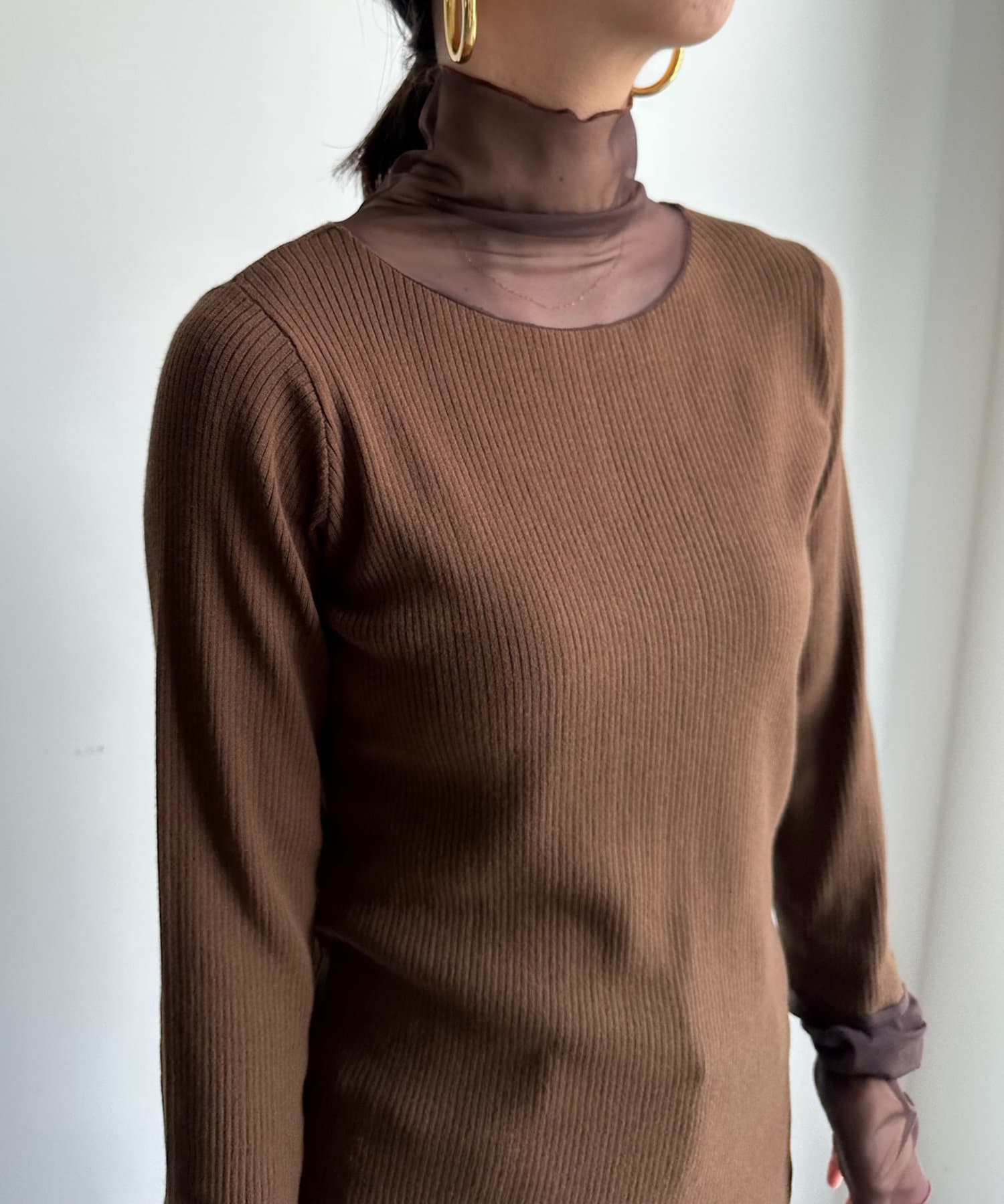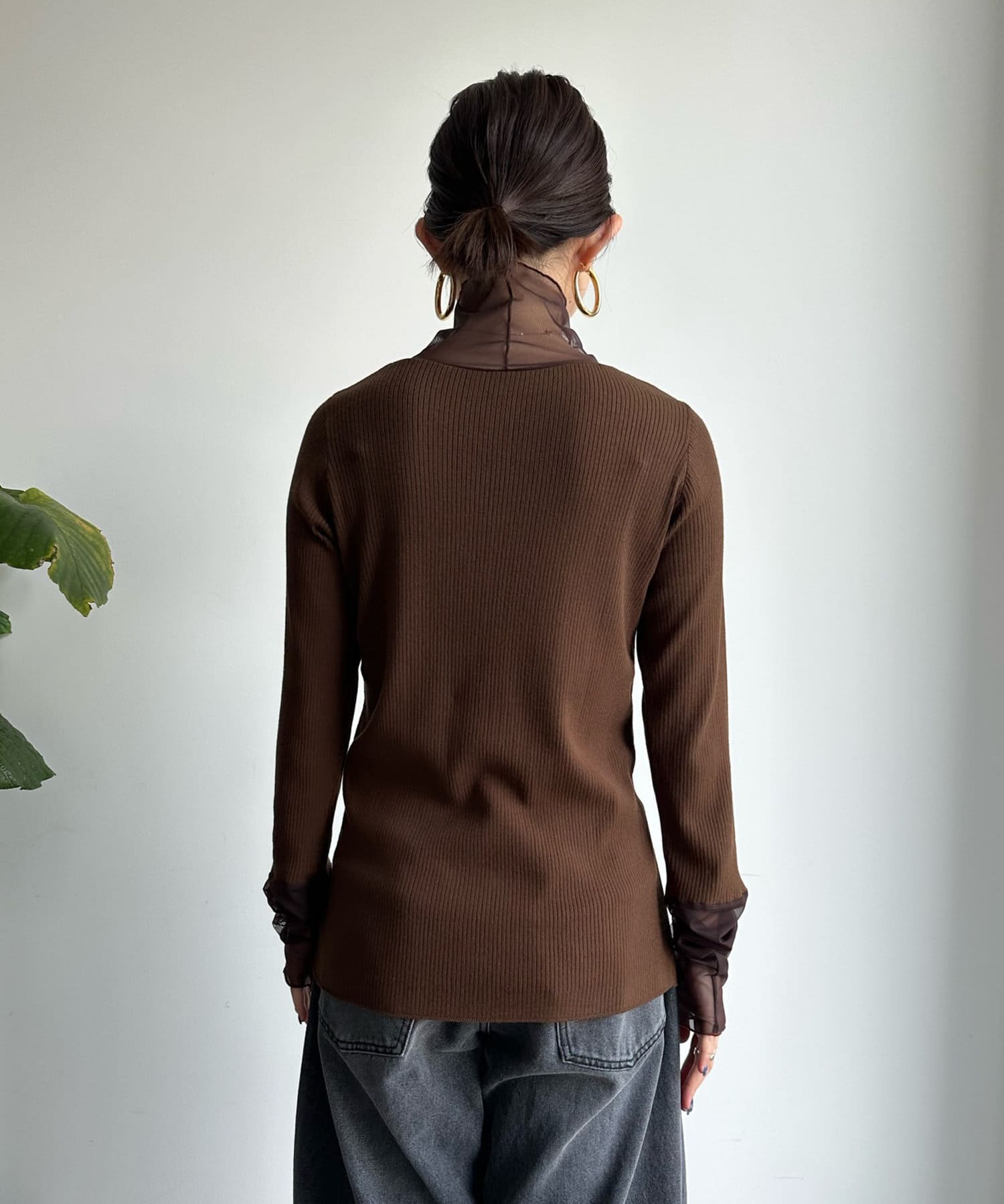 タートル部分と袖を薄手のチュールに切り替えたニットが登場!