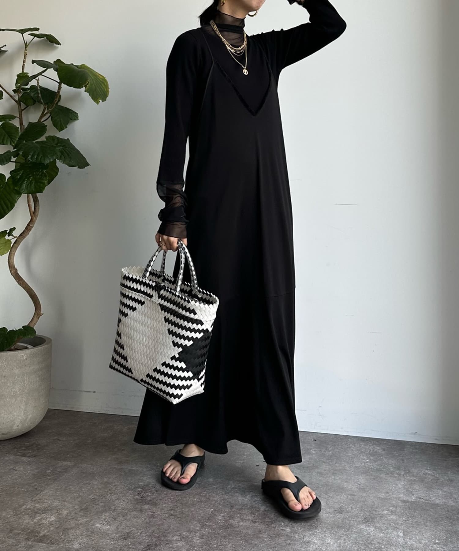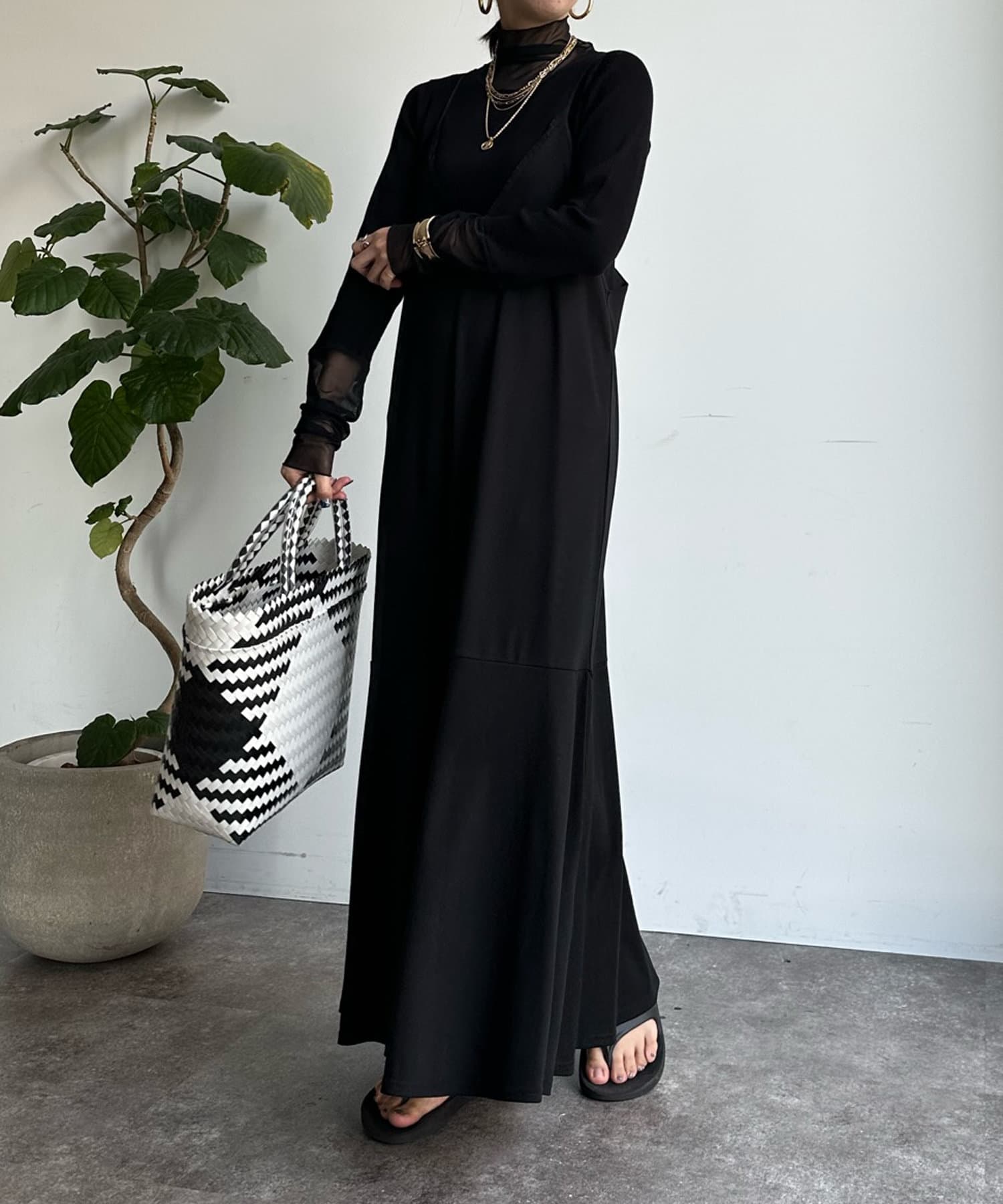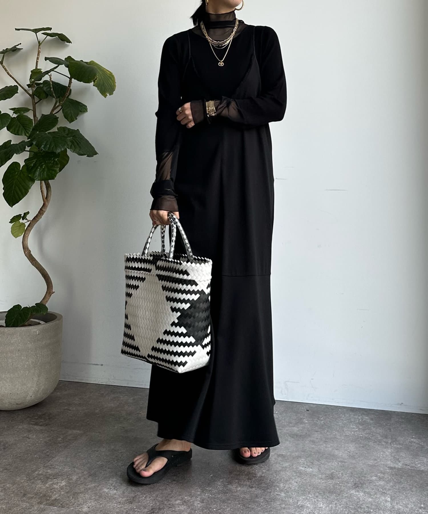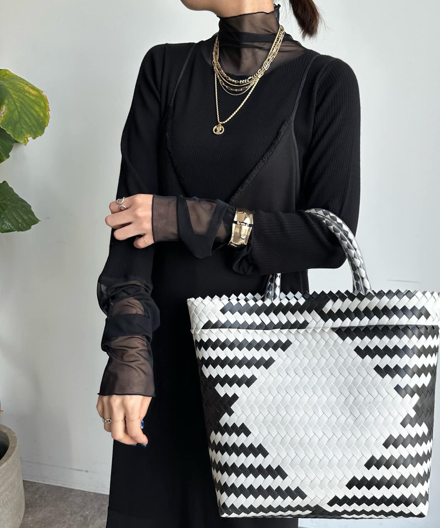 タートル部分と袖を薄手のチュールに切り替えたニットが登場!