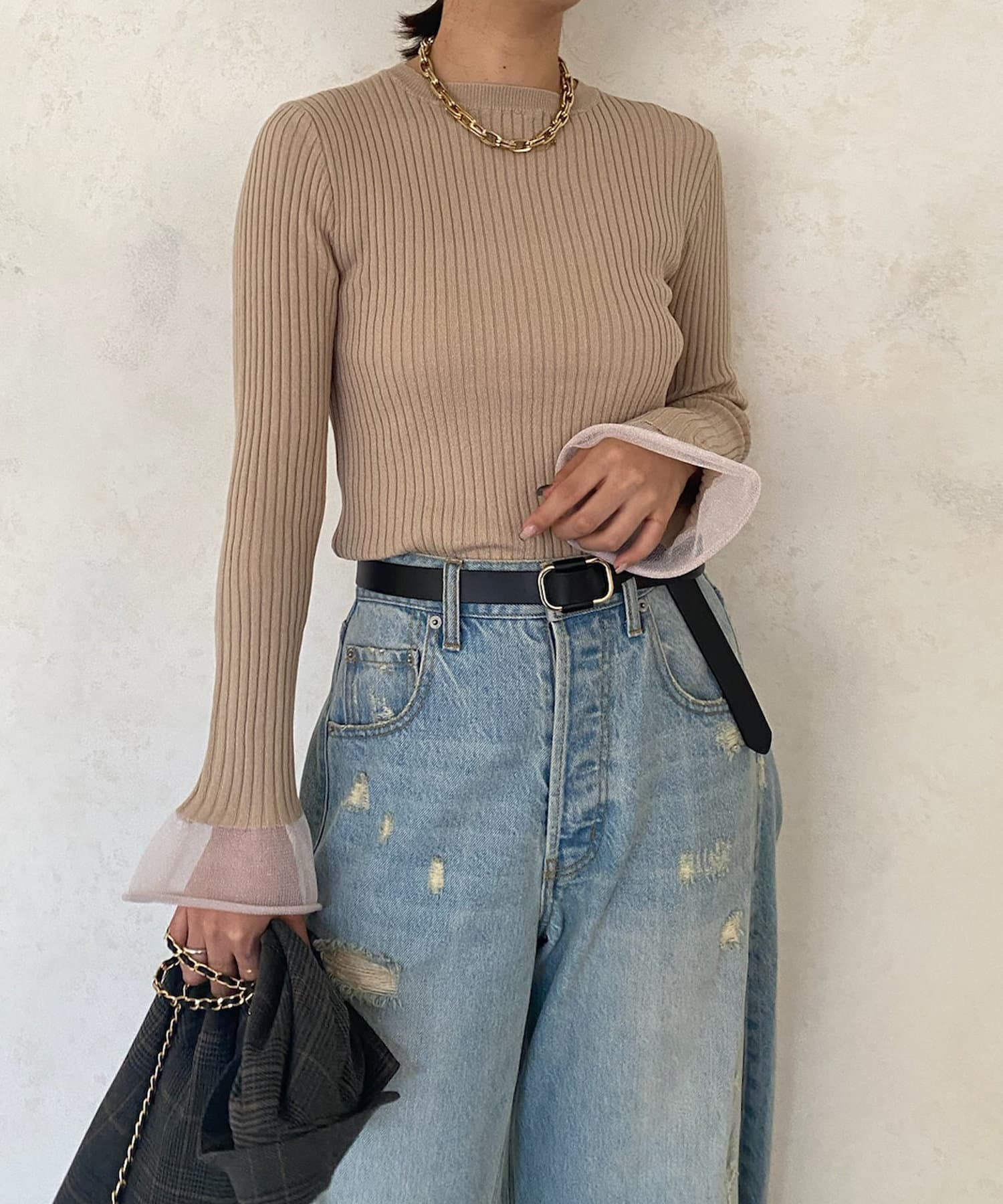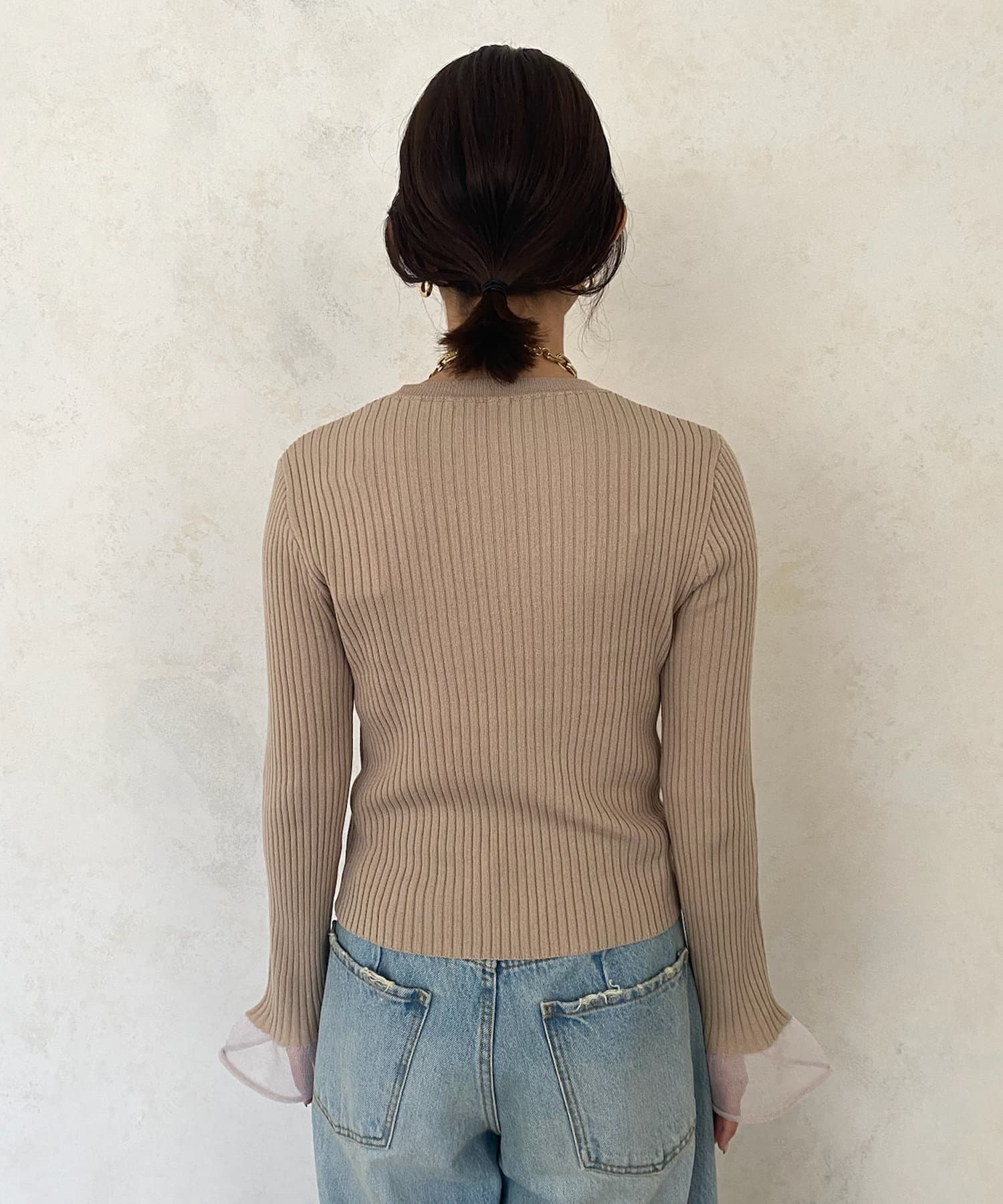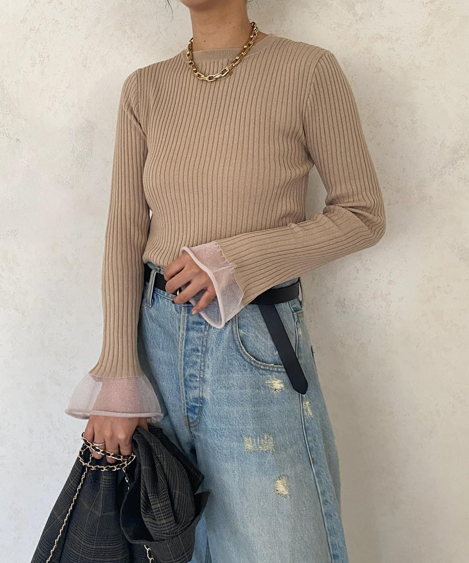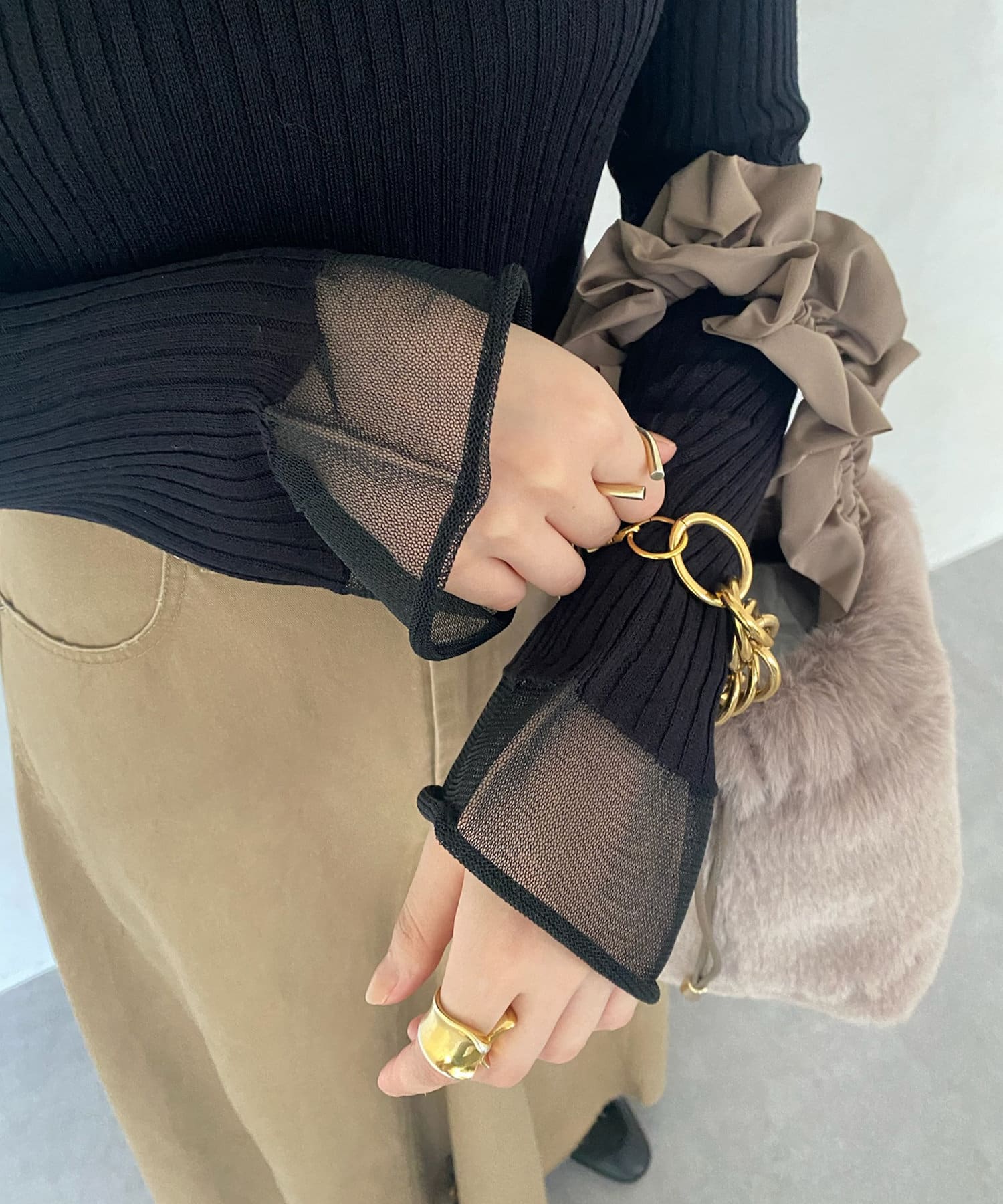 今までの切替袖シアーとは違いラッパ型に広がる袖が他のアイテムと差をつけます。