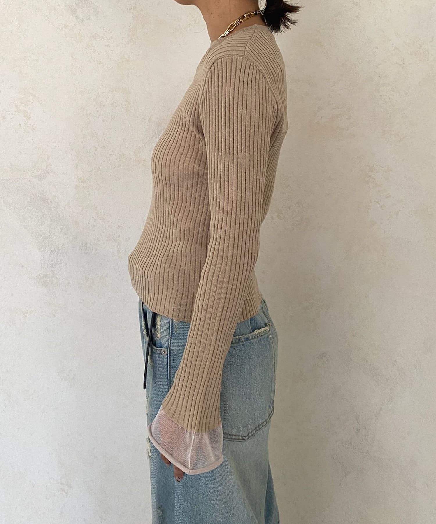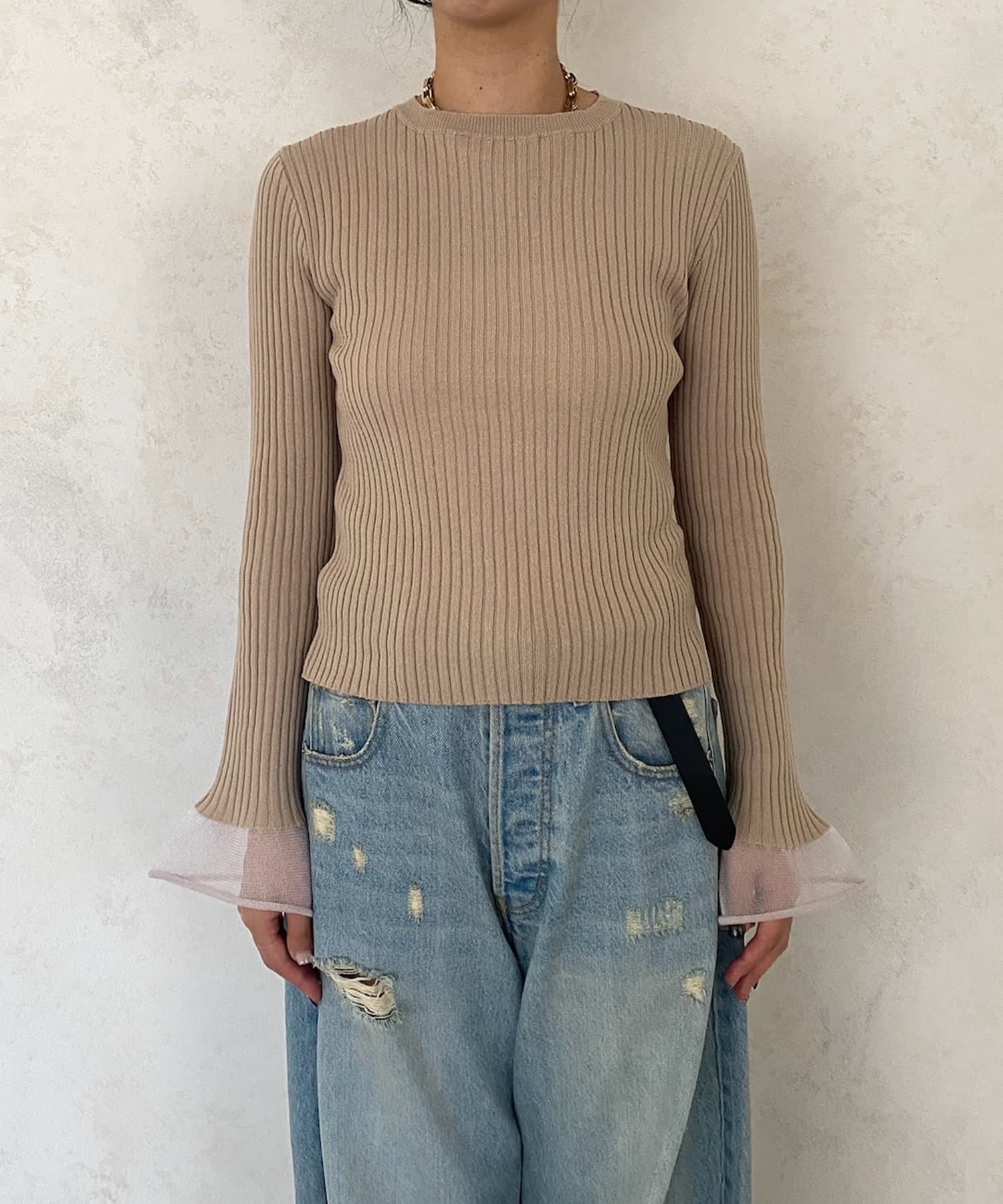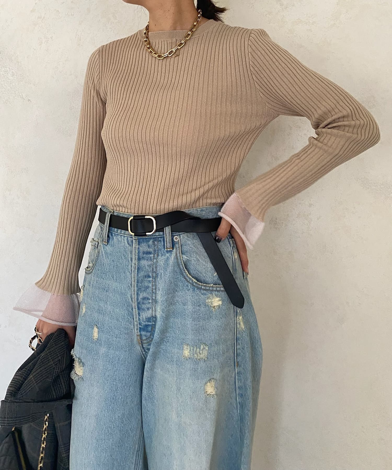 今までの切替袖シアーとは違いラッパ型に広がる袖が他のアイテムと差をつけます。