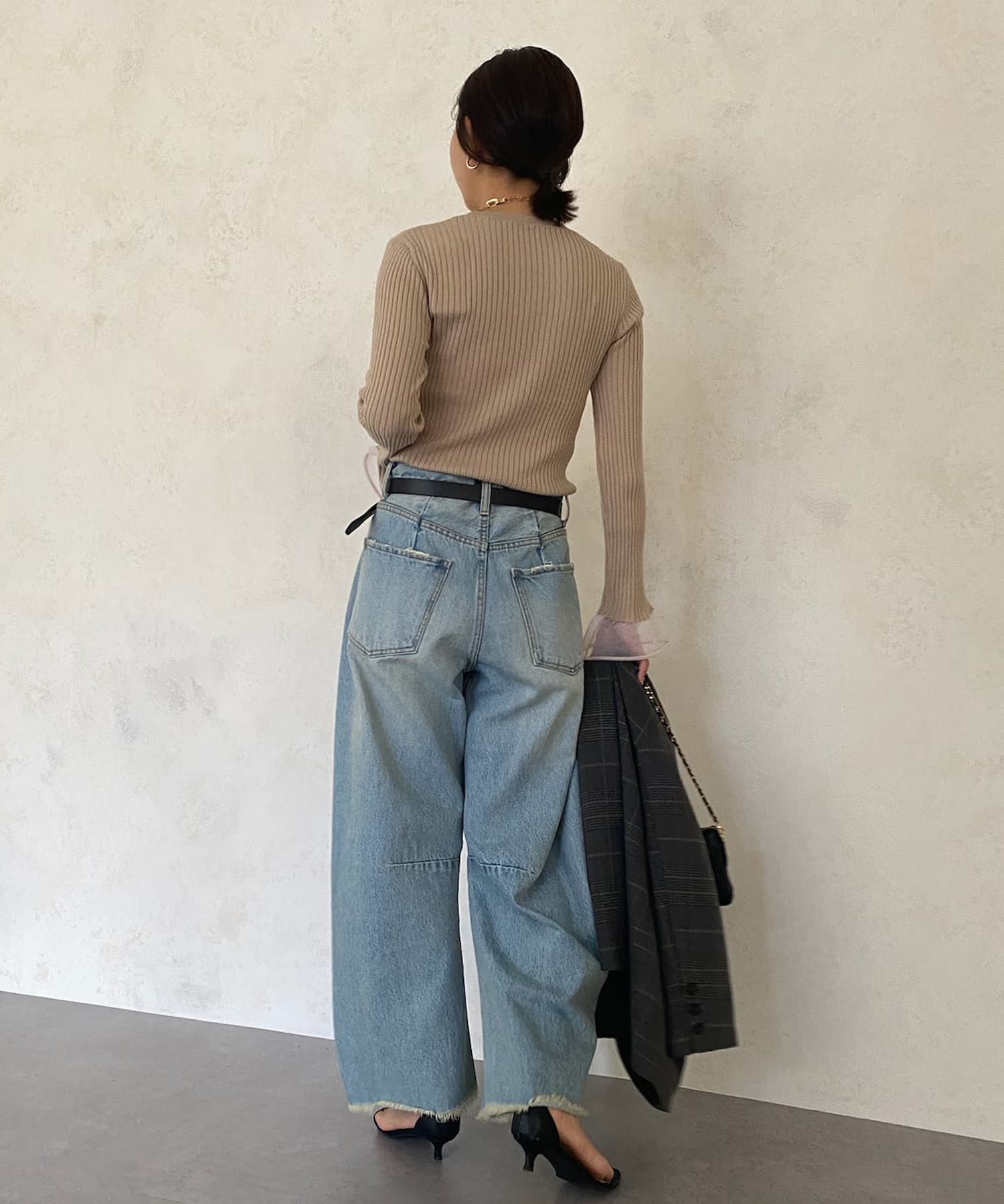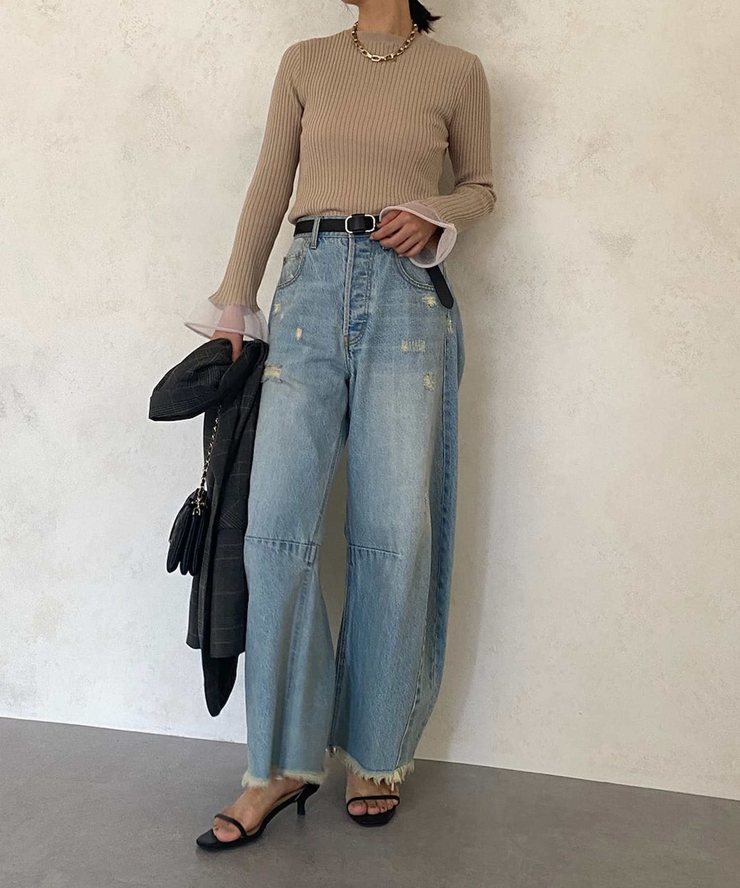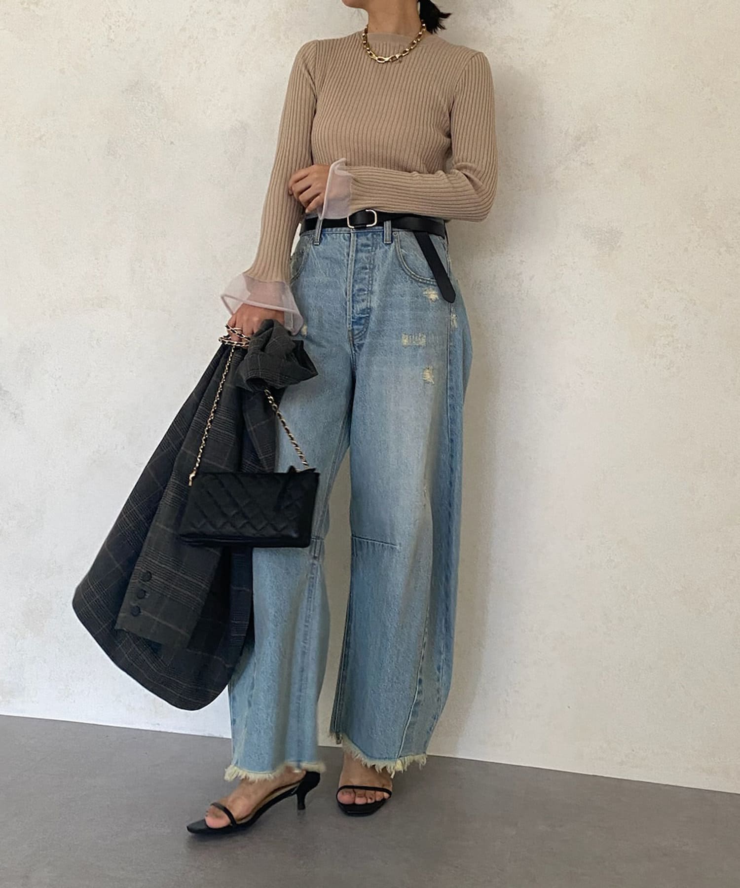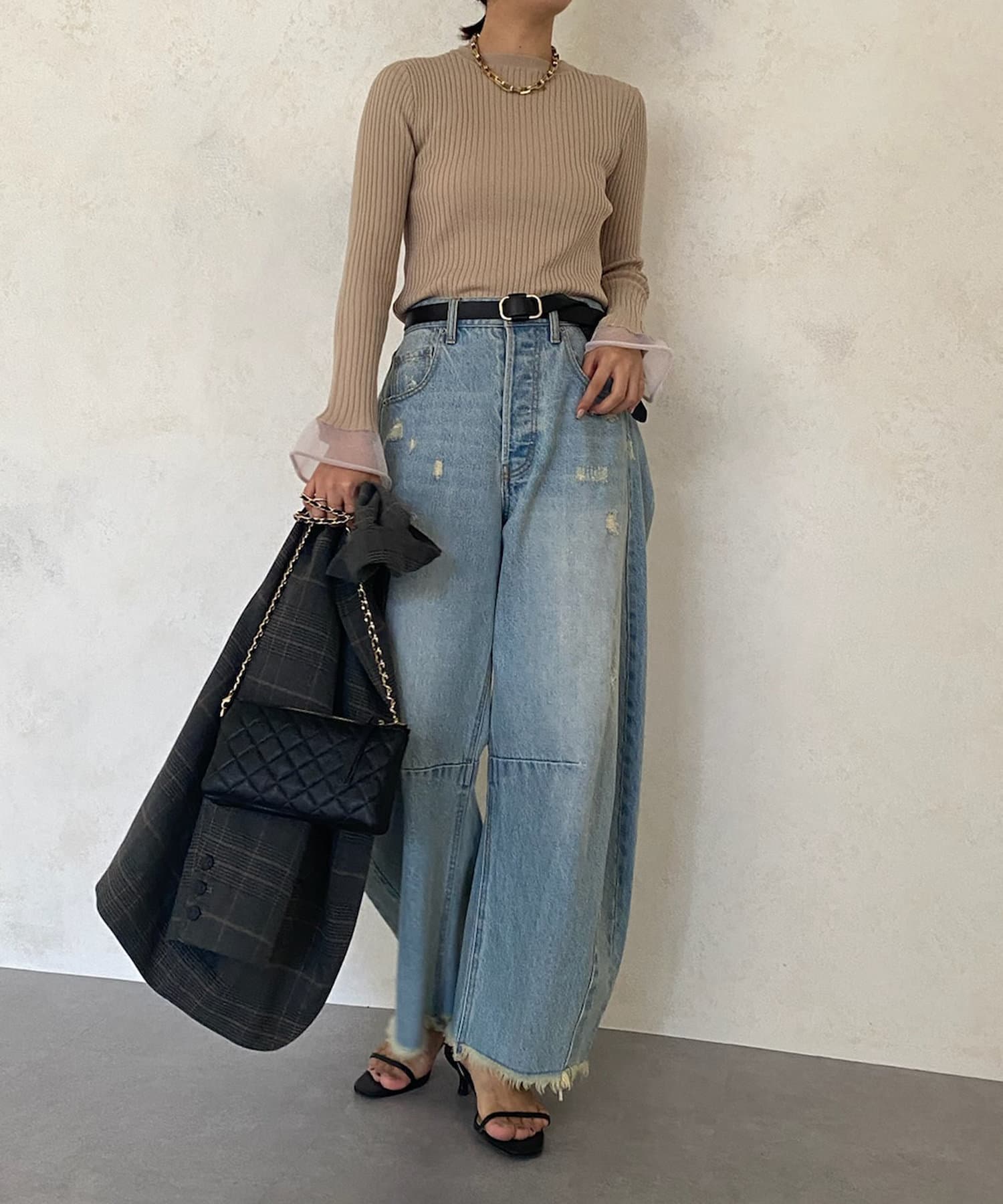 今までの切替袖シアーとは違いラッパ型に広がる袖が他のアイテムと差をつけます。