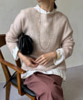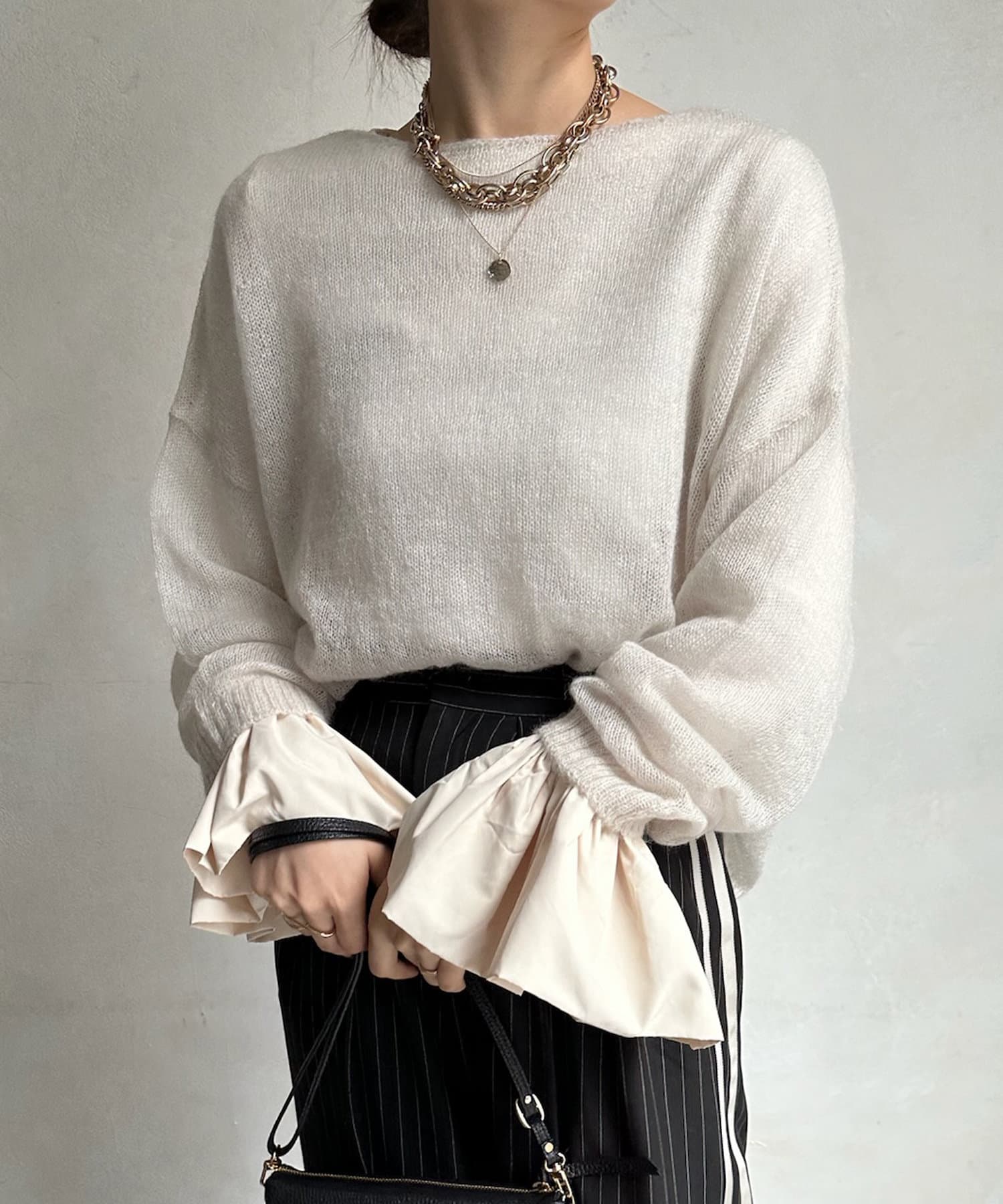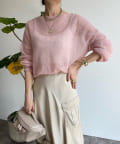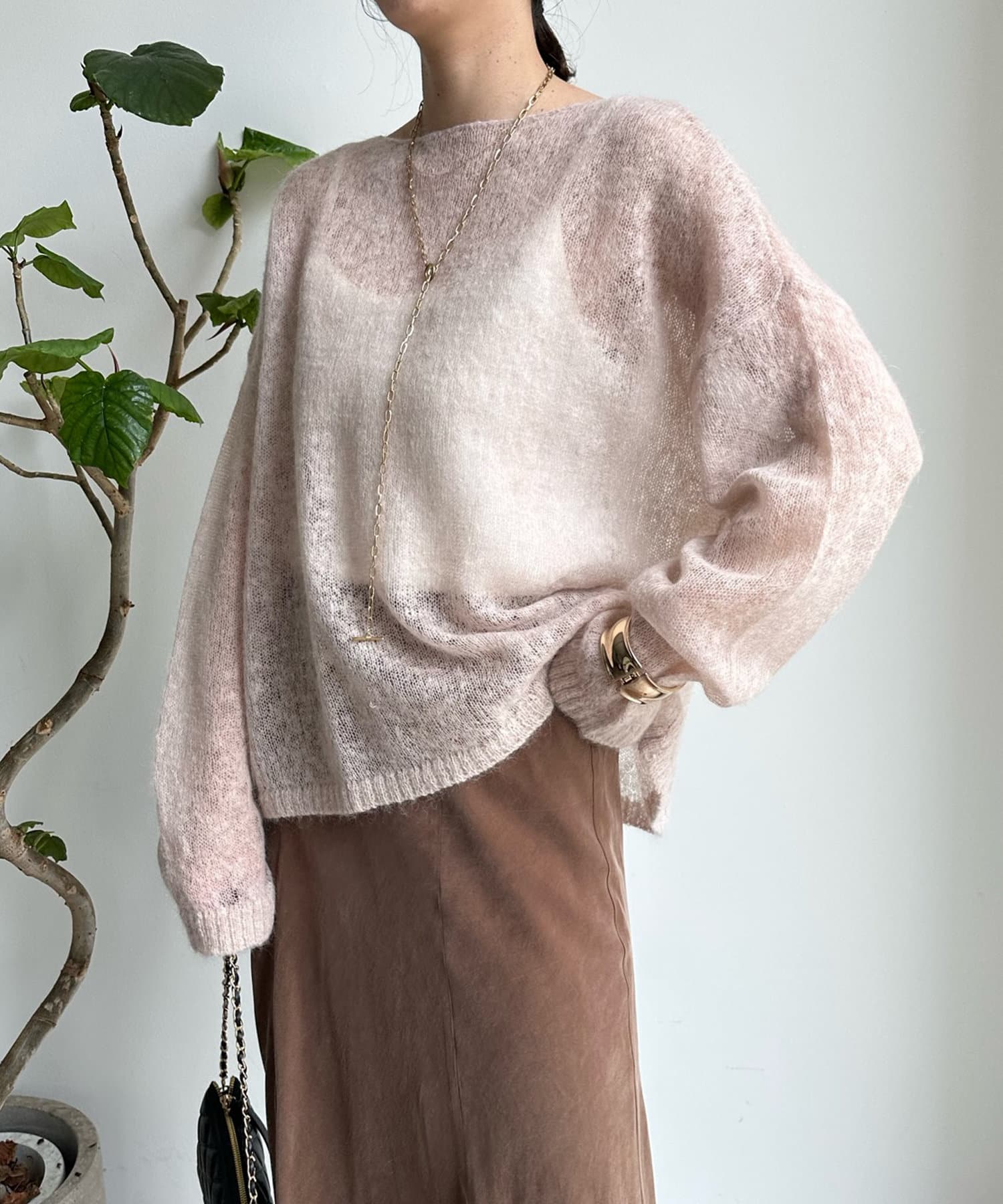 ヘアリーな素材感と透かし編みで今らしい1着。