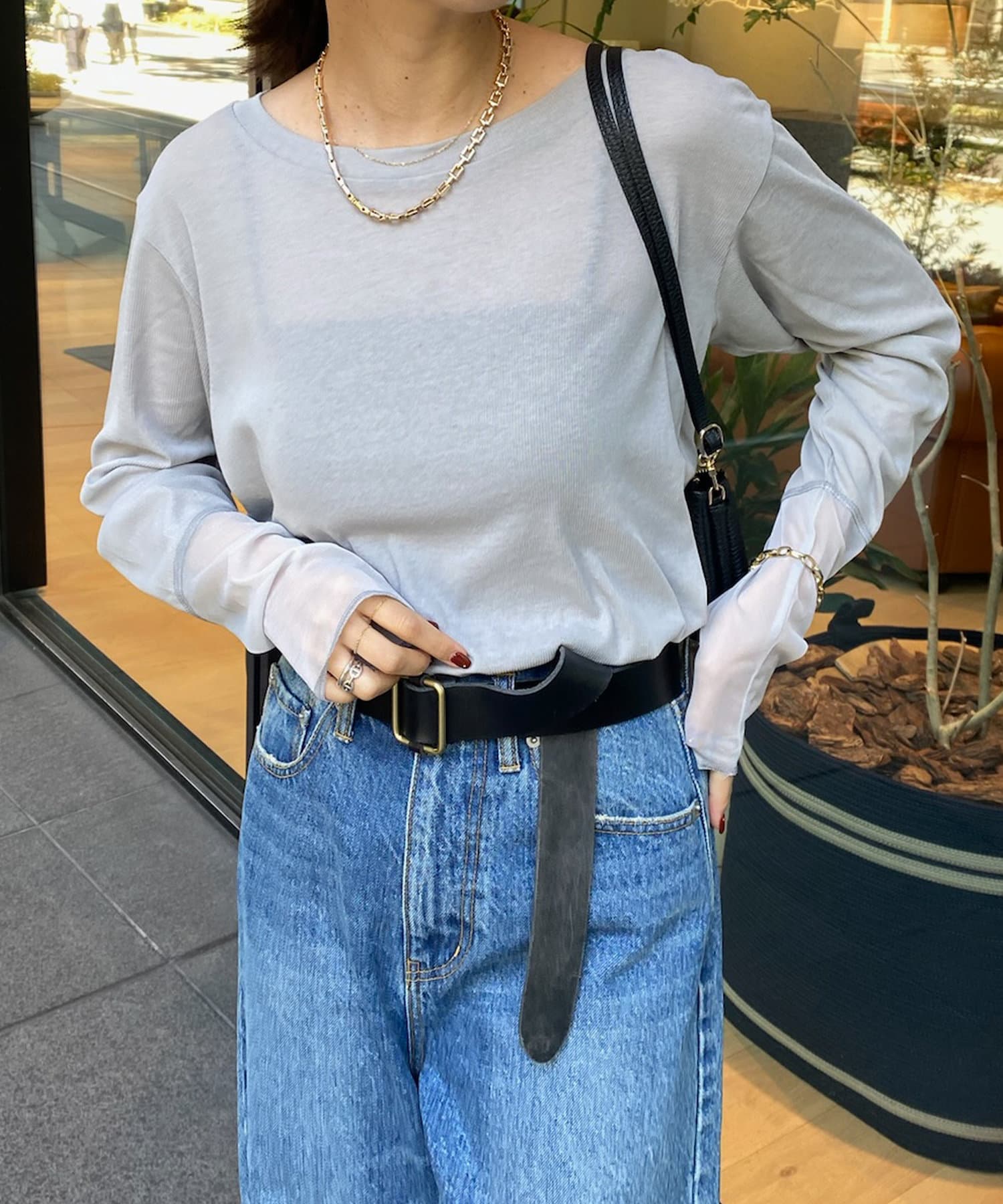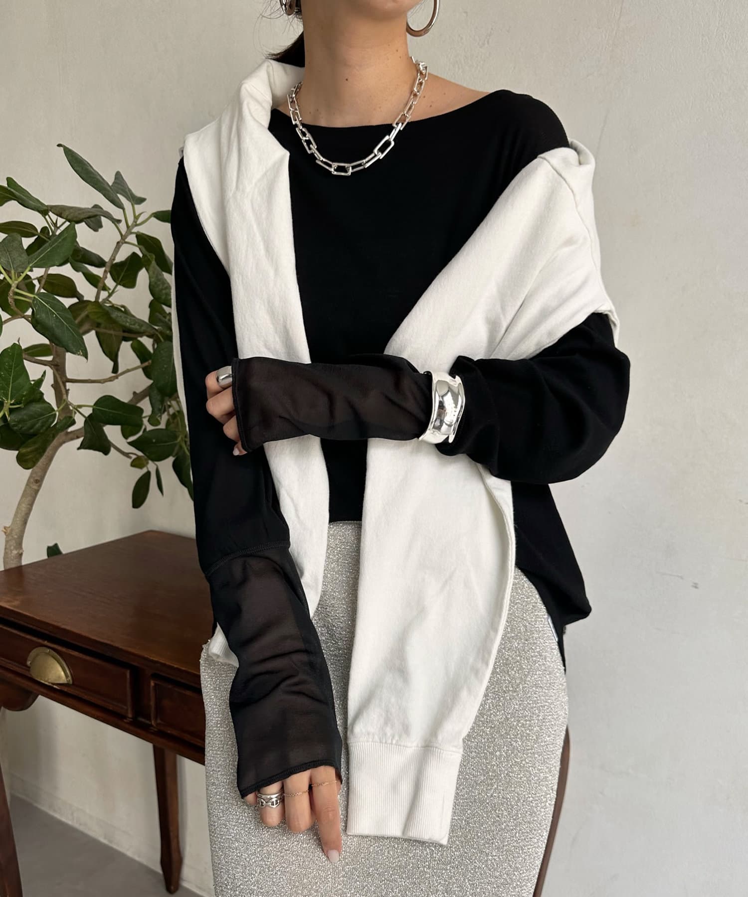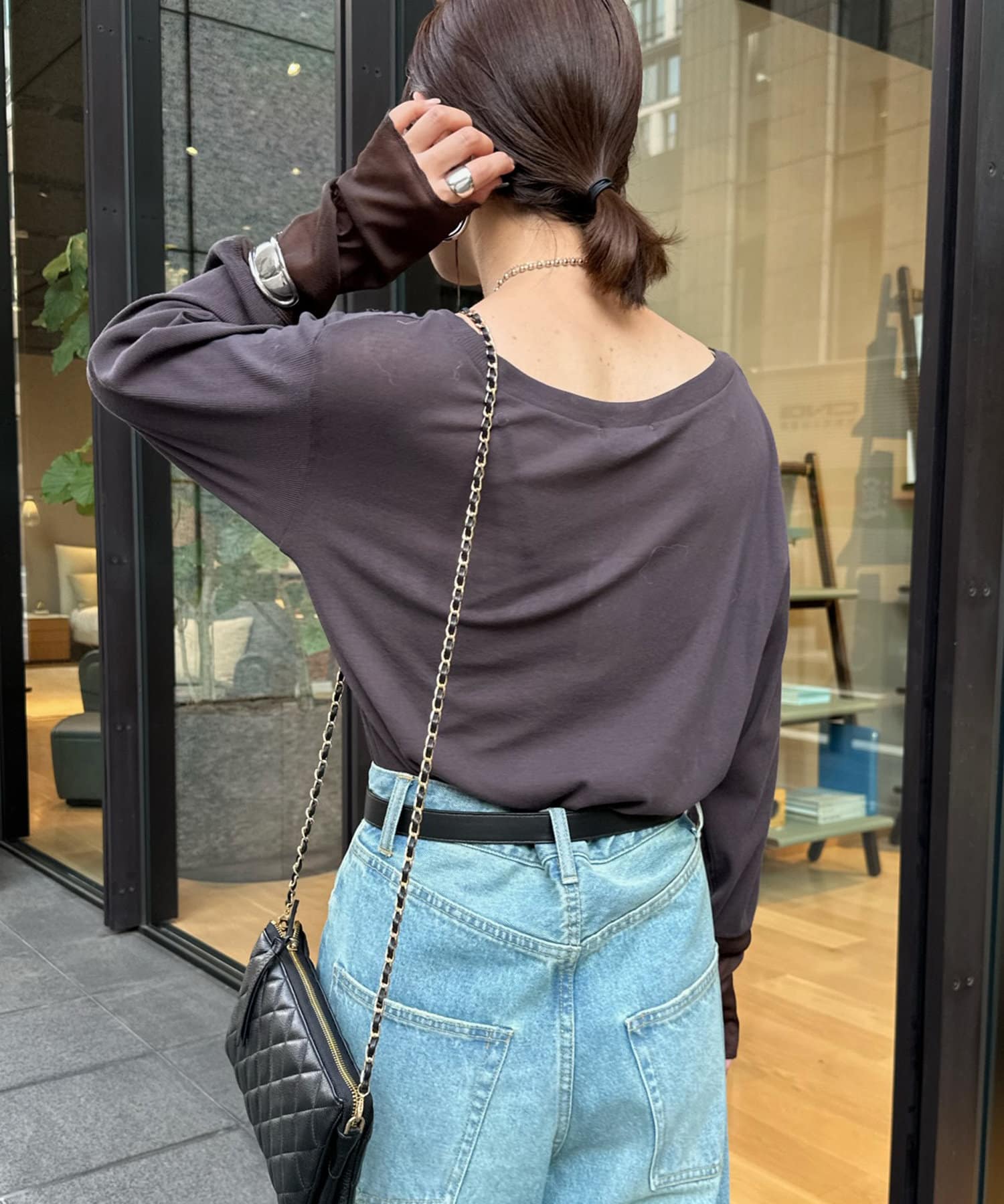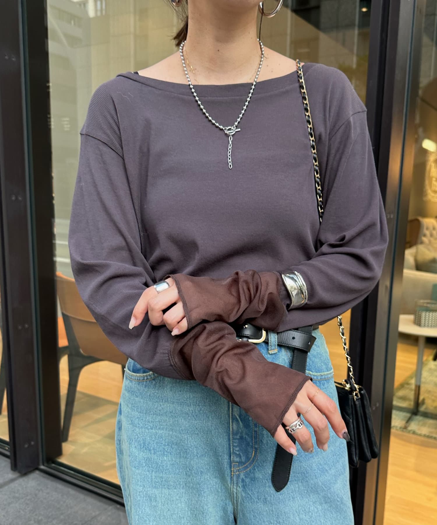お袖部分は長めに切り替えているため、レイヤードした際も着映える印象に!