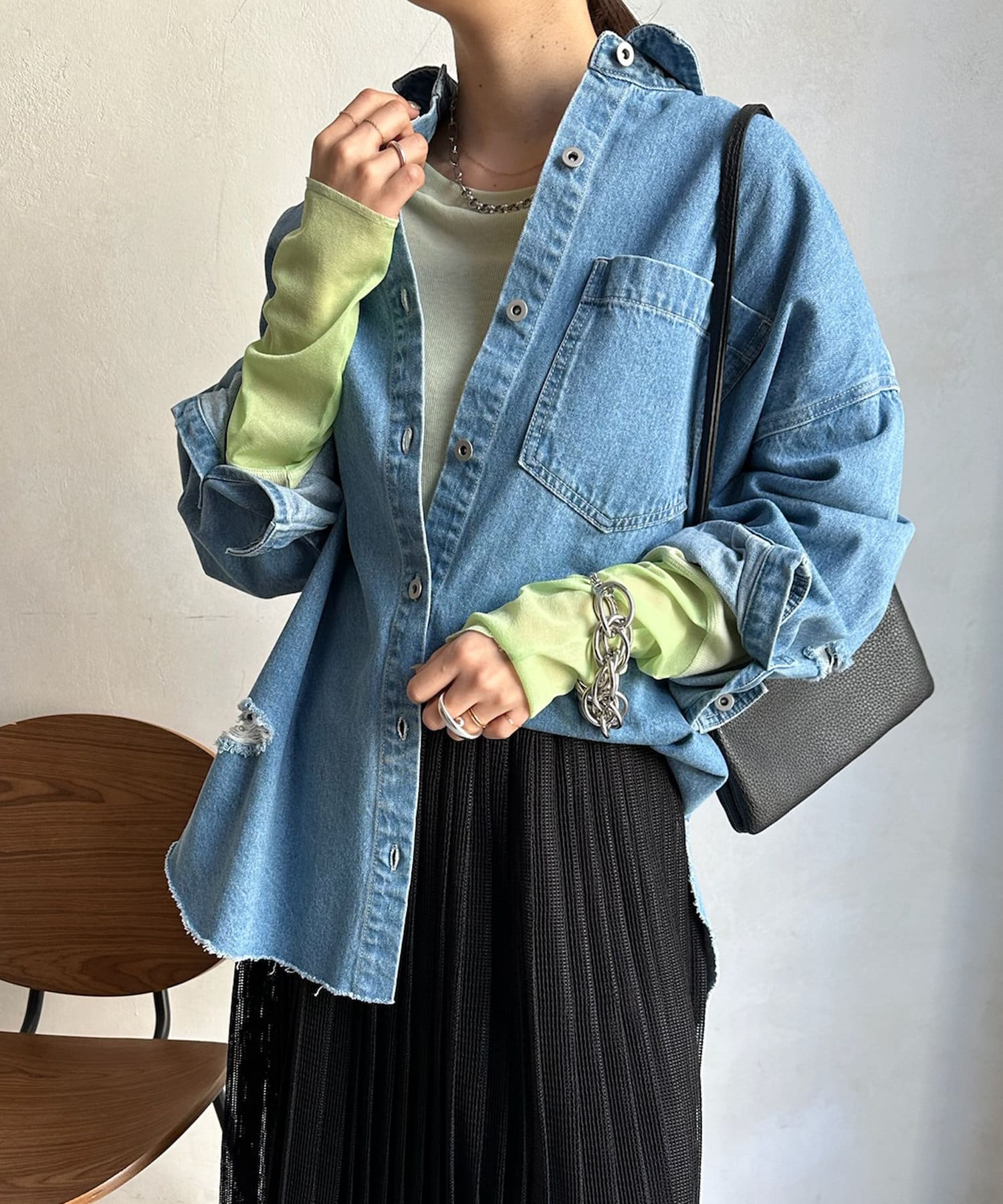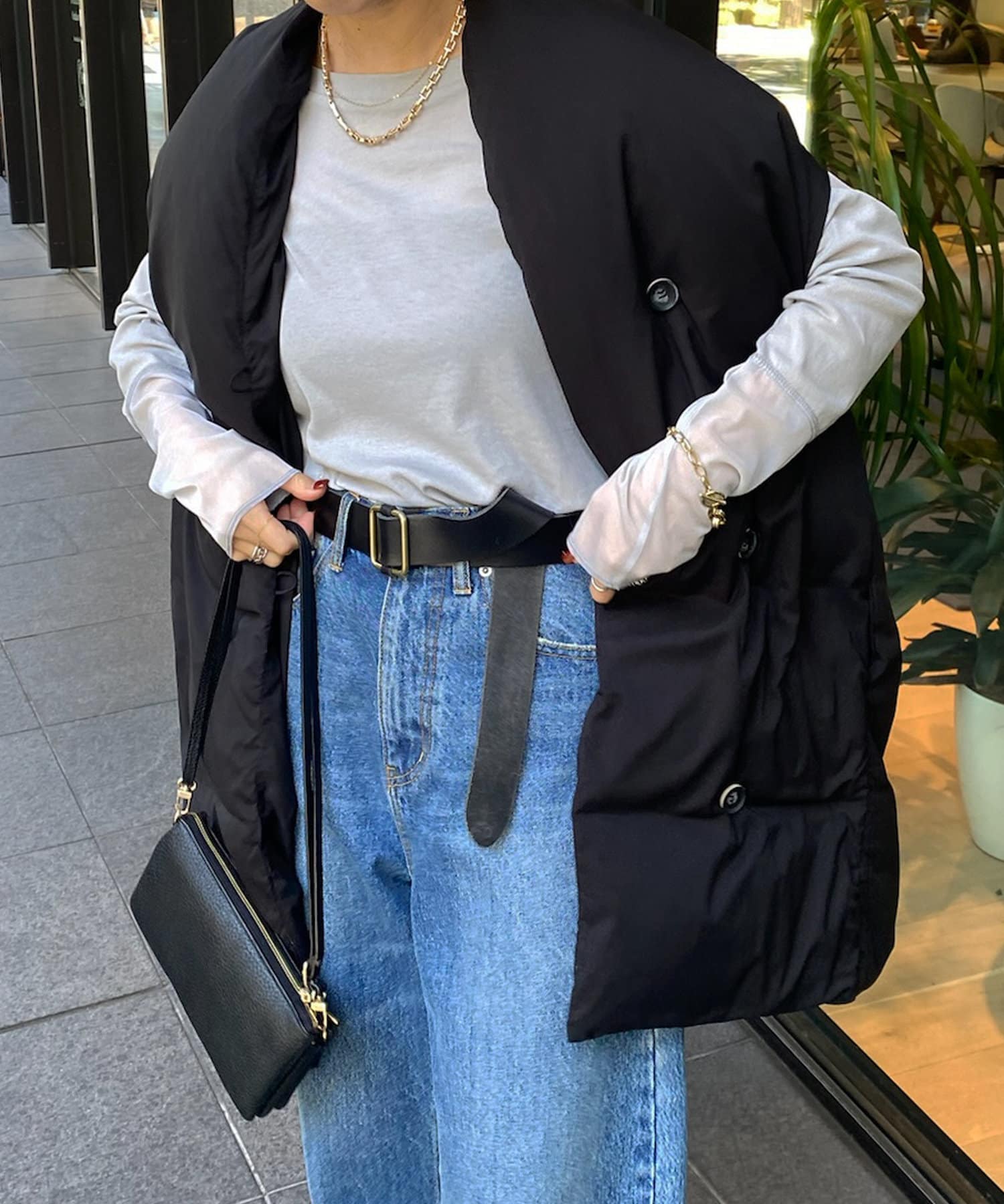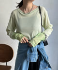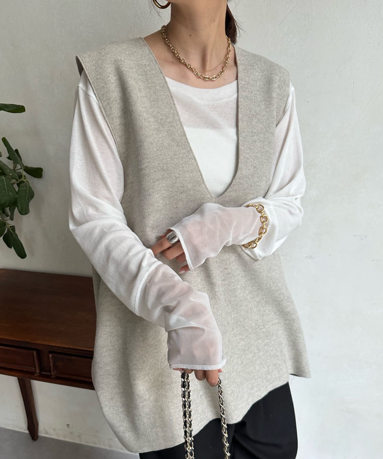お袖部分は長めに切り替えているため、レイヤードした際も着映える印象に!