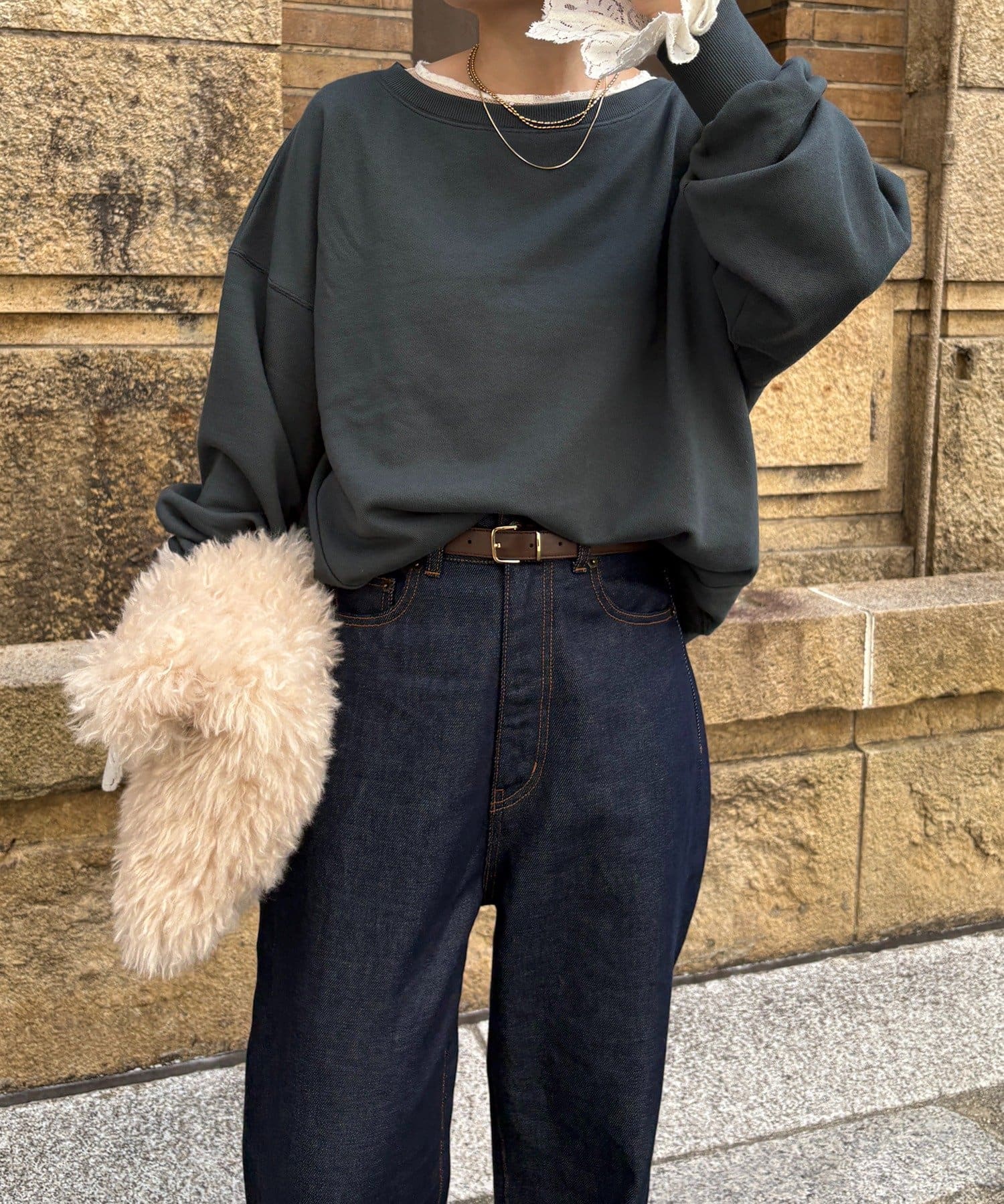 すっきりと綺麗見えする、ネックラインのデザインが大人らしいスウェット。