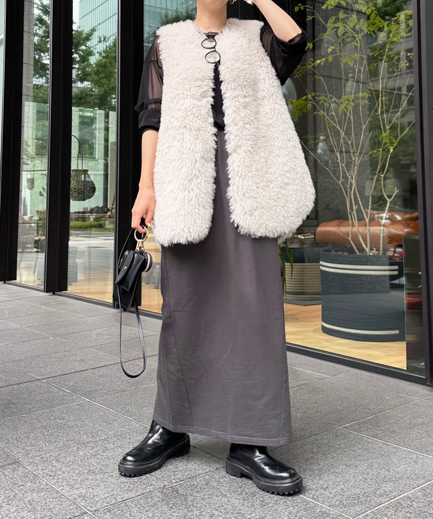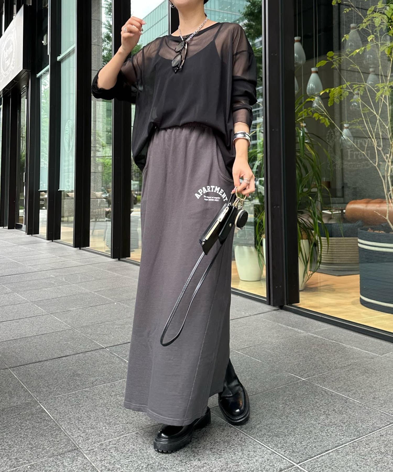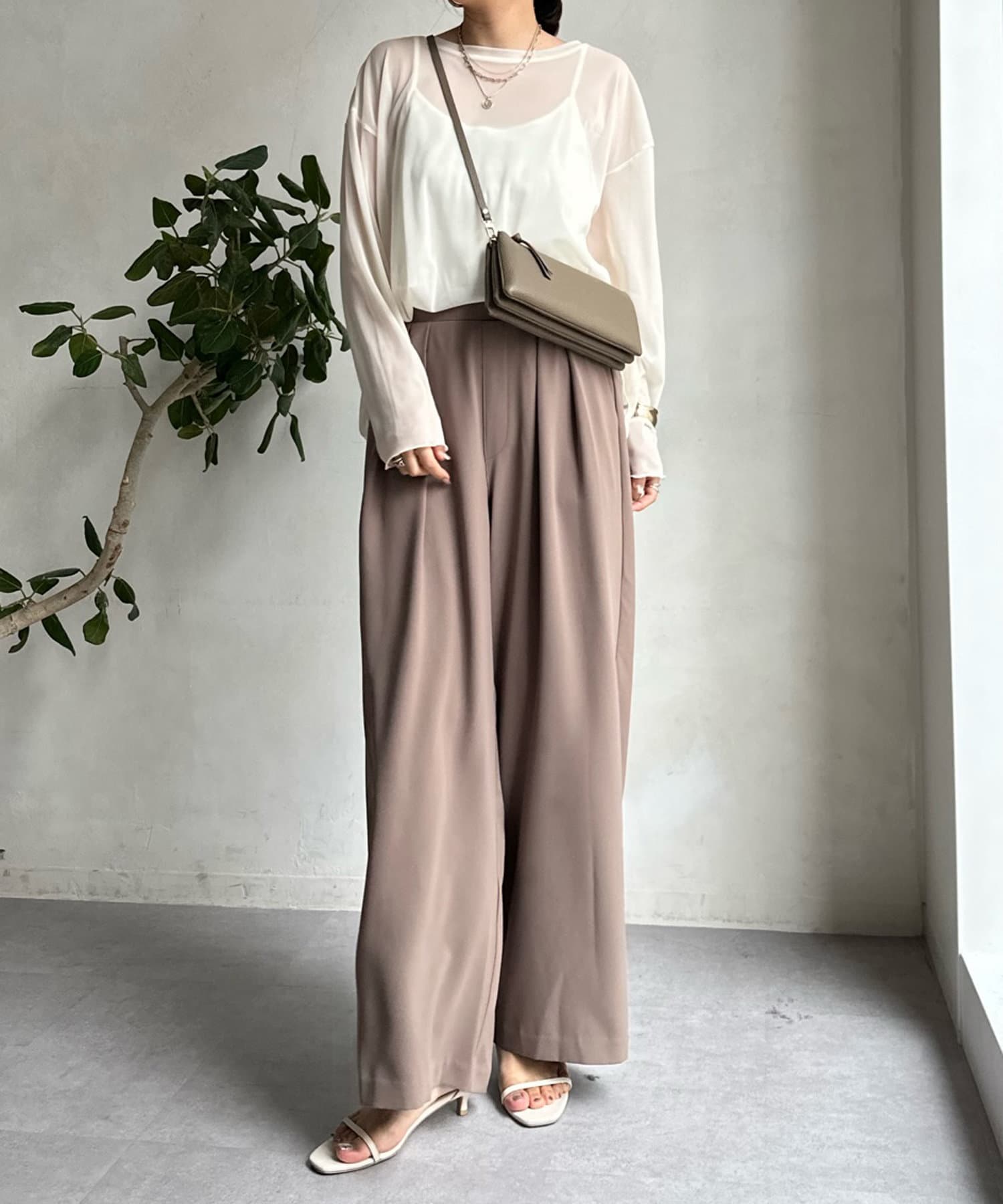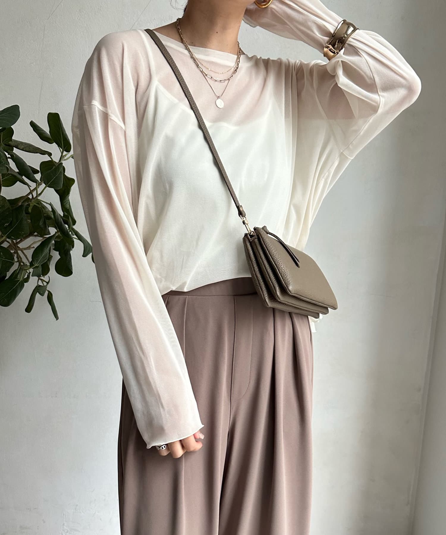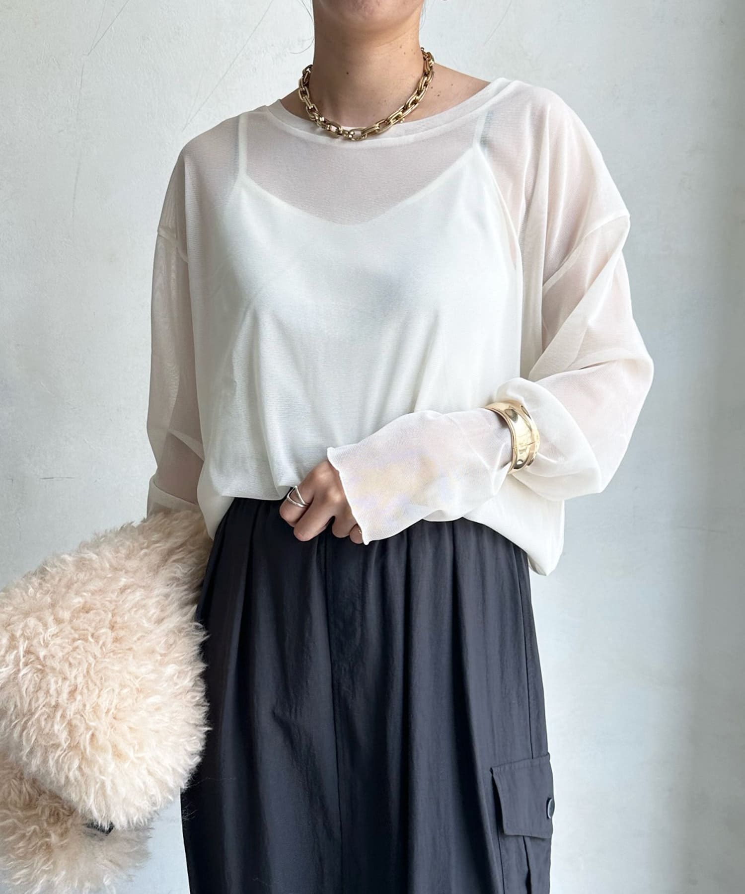 キャミソールがセットになっているため、インナーに困りがちなシアーアイテムも簡単に着こなしていただけます。