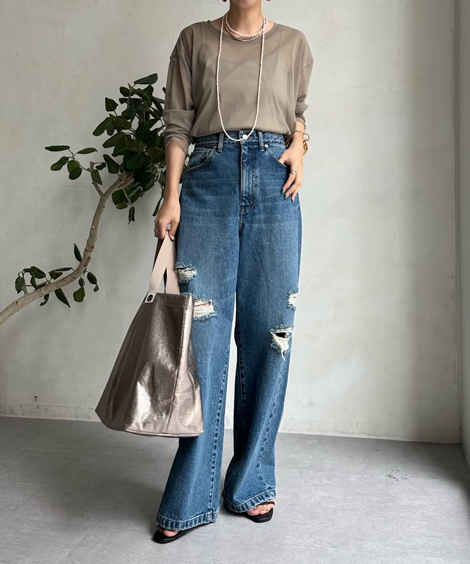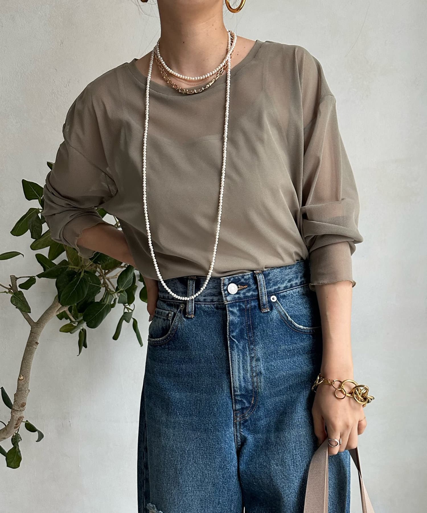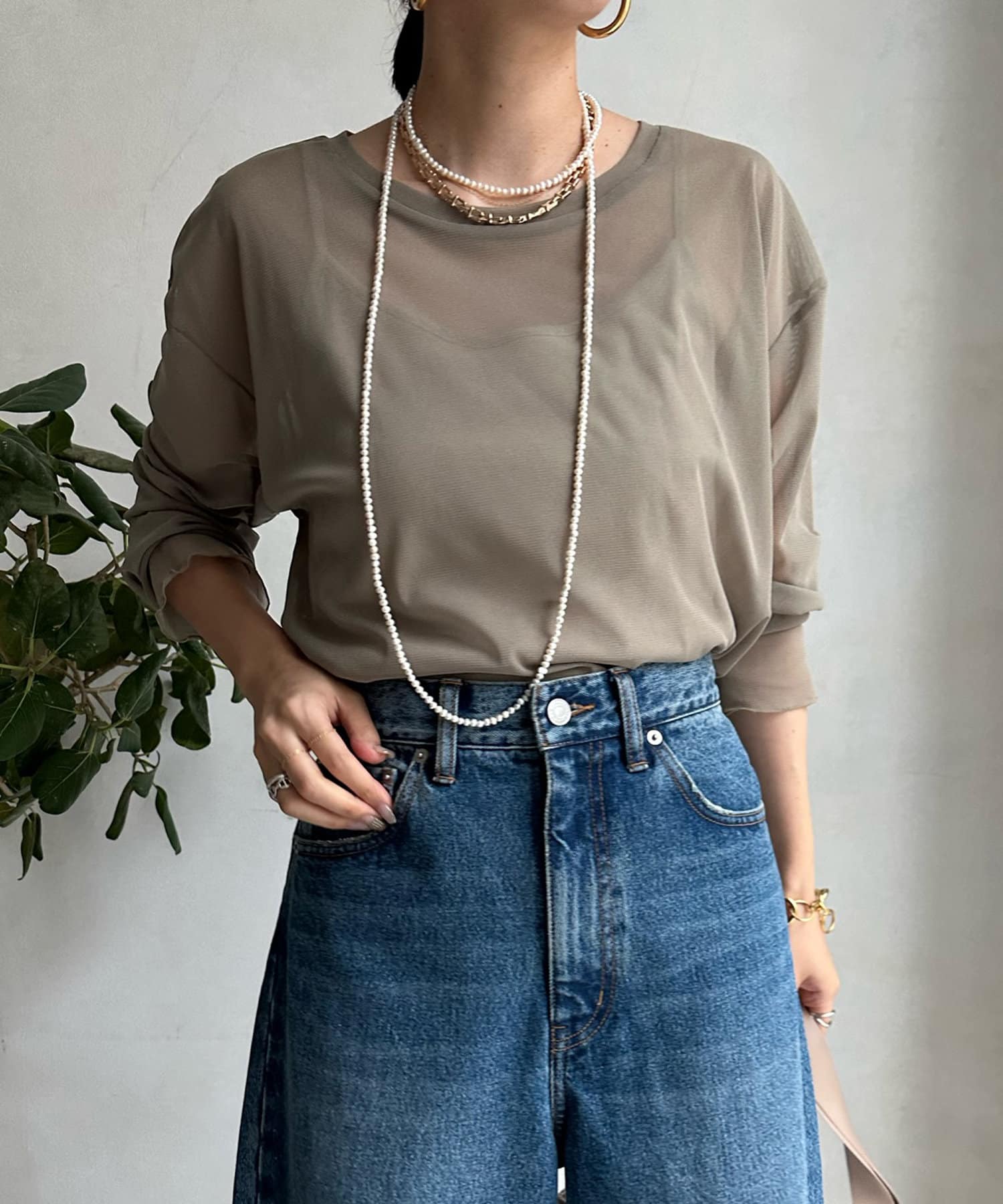 上品な透け感が大人らしく、程よい抜け感をプラス。