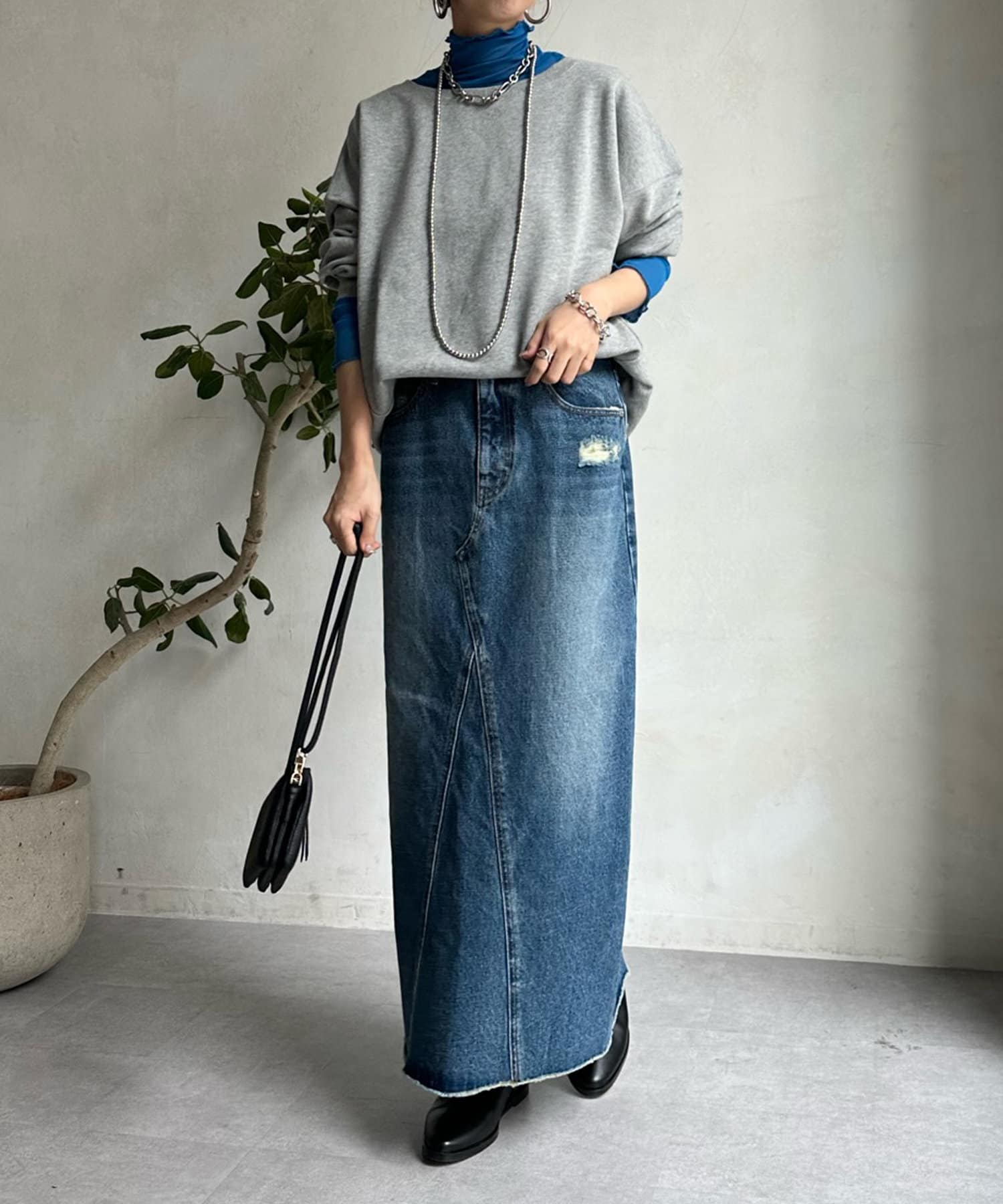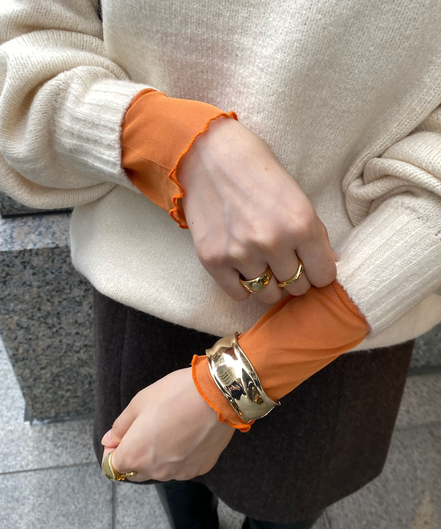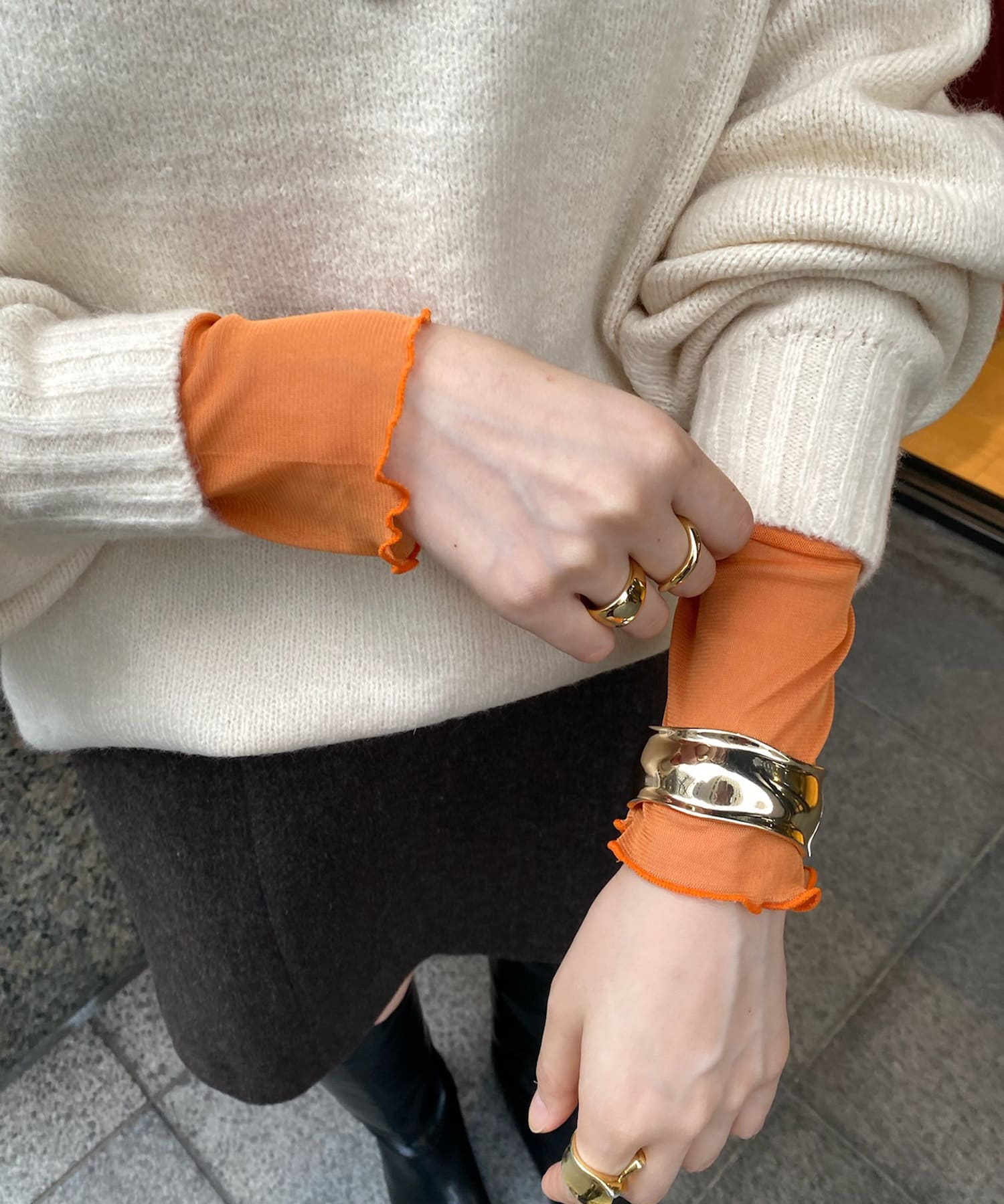 冬にはスウェットやニットと合わせて、首元とお袖からチラッと出すとコーディネートのワンポイントになってくれますよ。