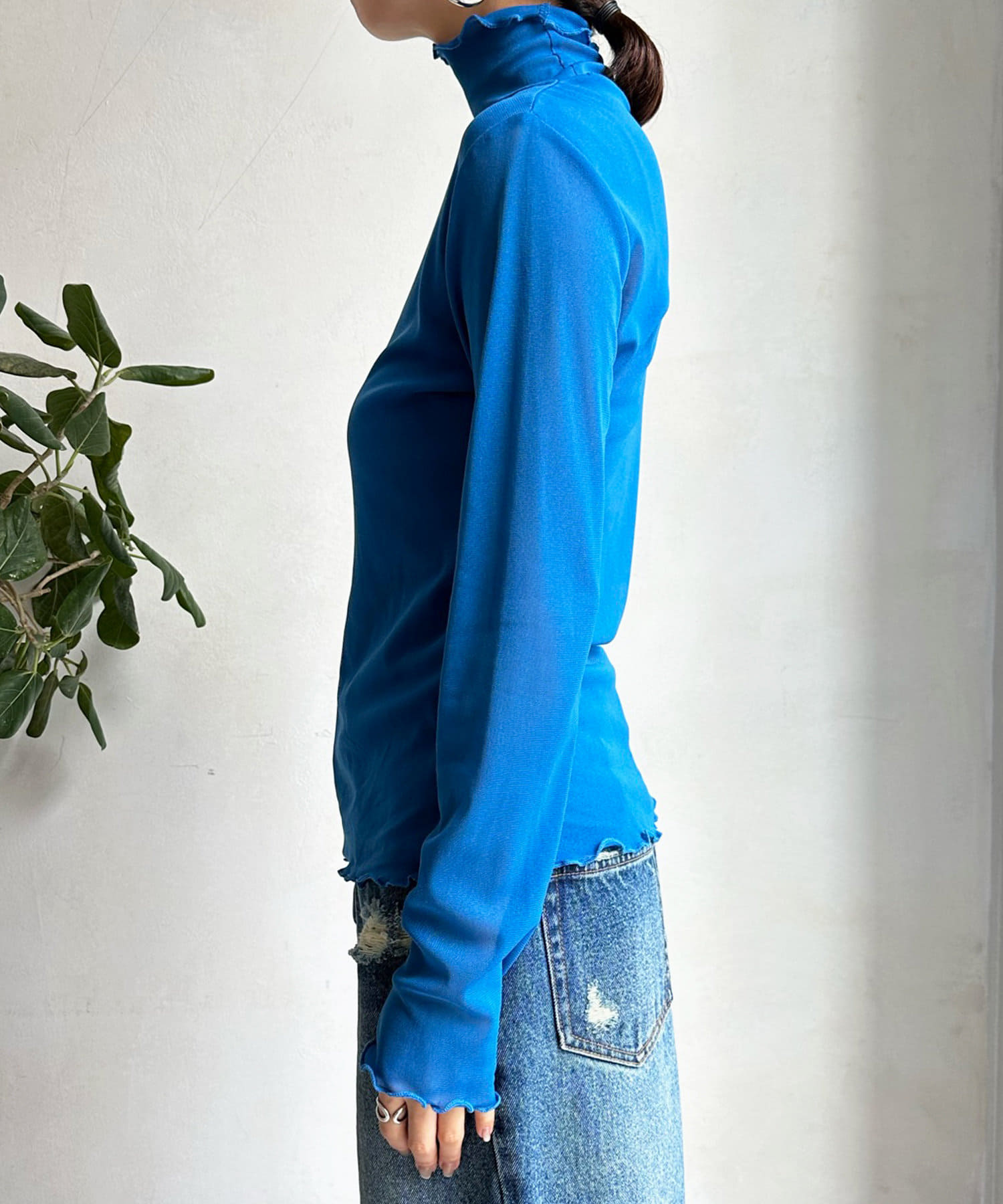 袖口と襟ぐりをメロー仕立てにすることで、程よい甘さと軽やかさをプラスします。