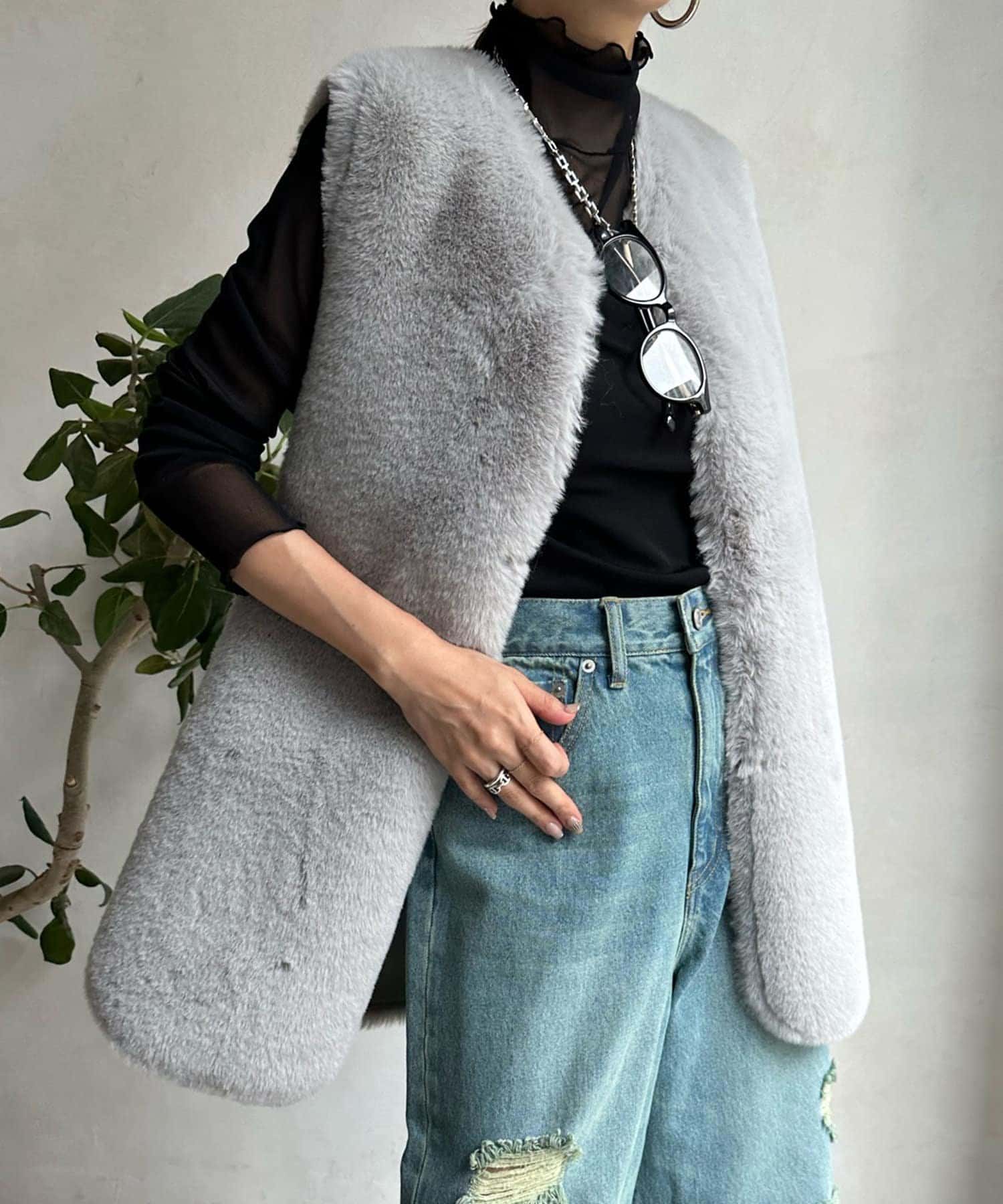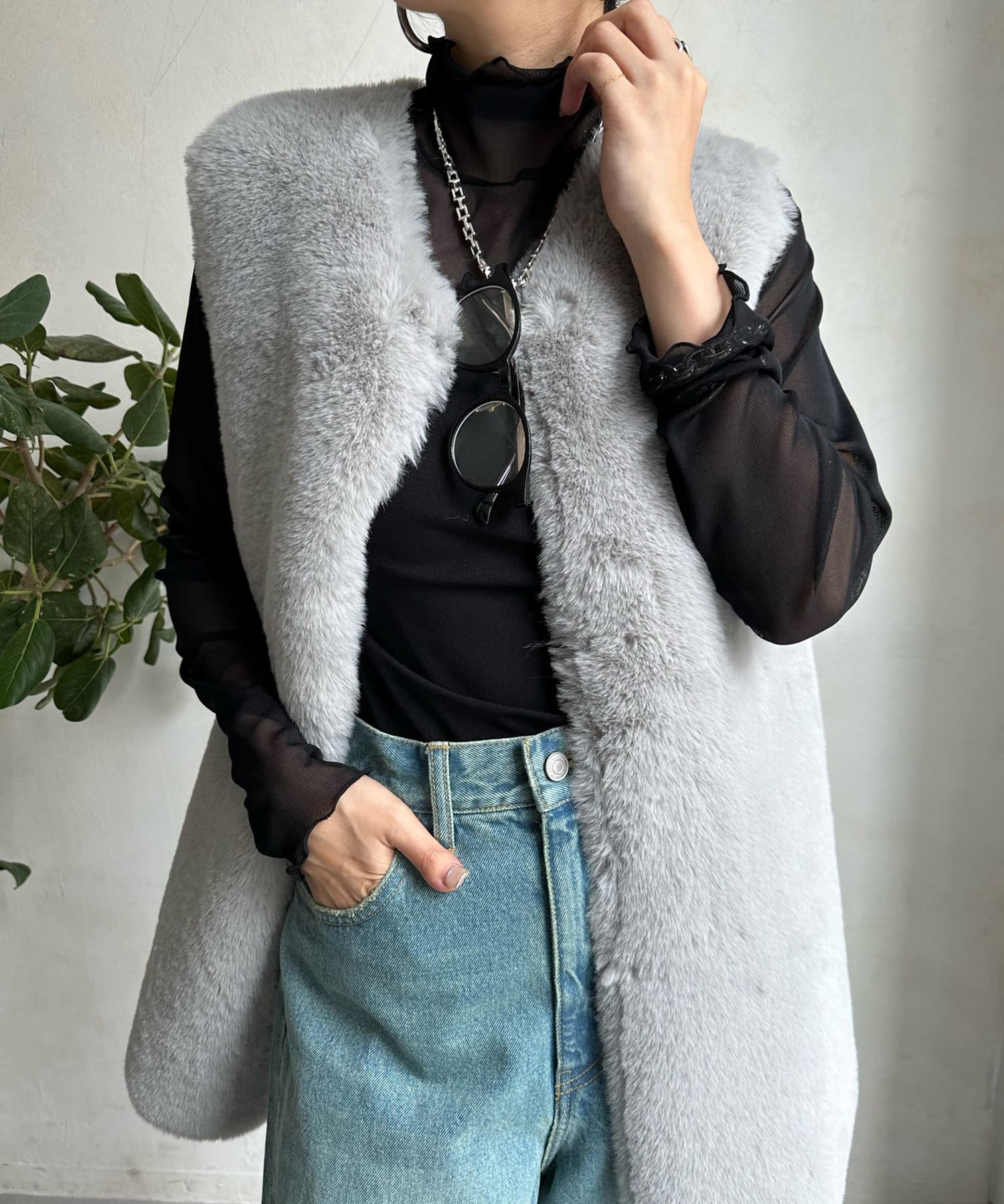 透け過ぎない素材感がポイントとなってくれるアイテム。