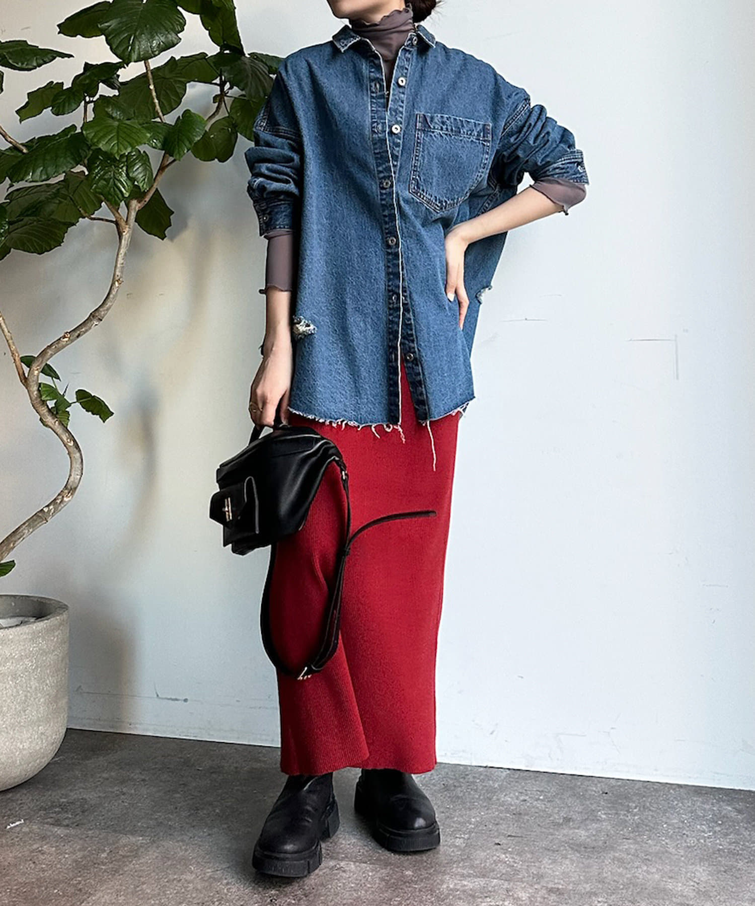シャツやベストなどのインナーや、オーバーオールとのレイヤードなど着こなしは様々。
