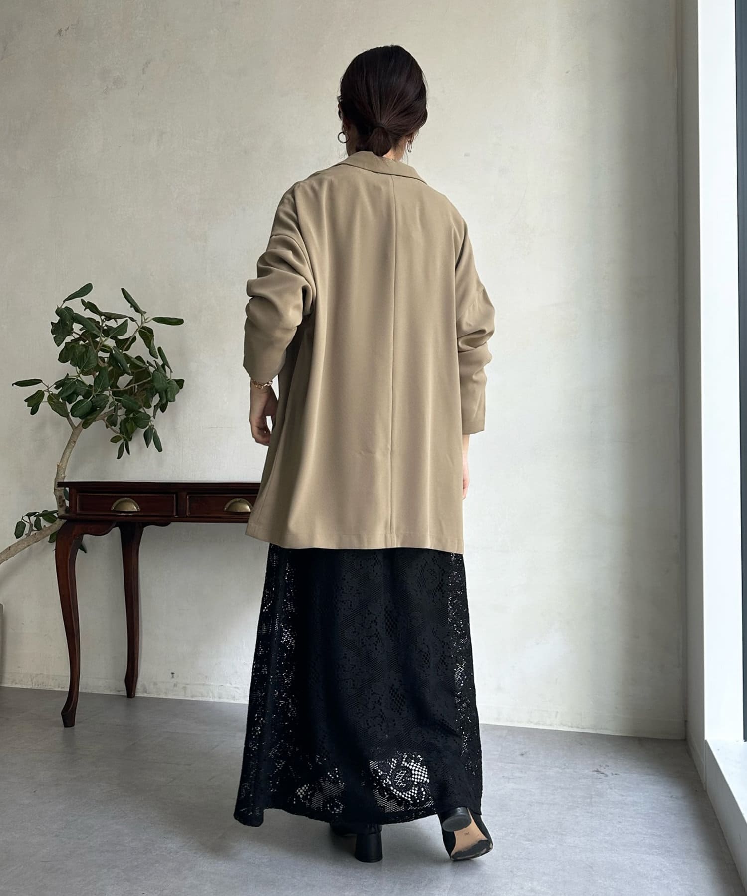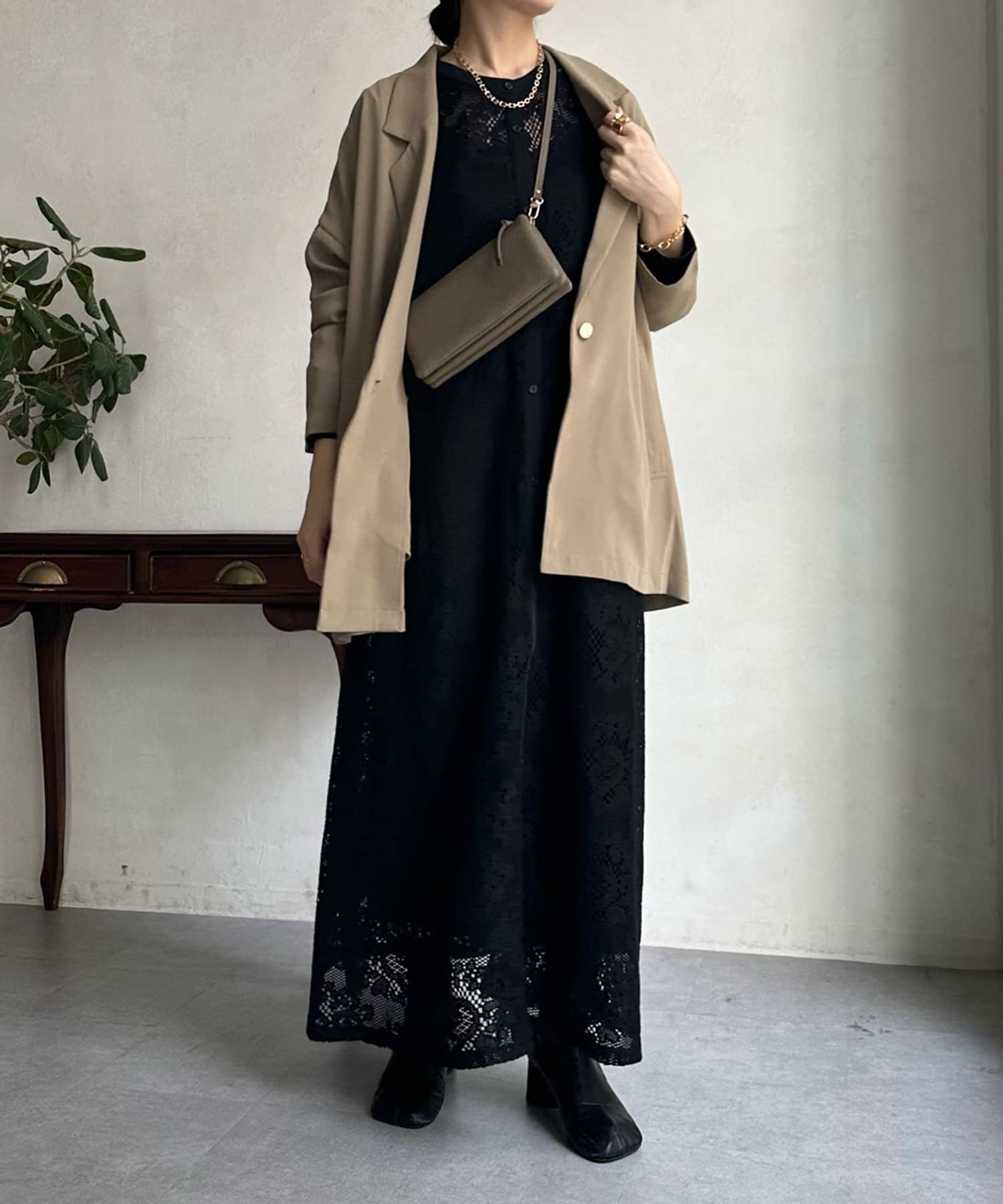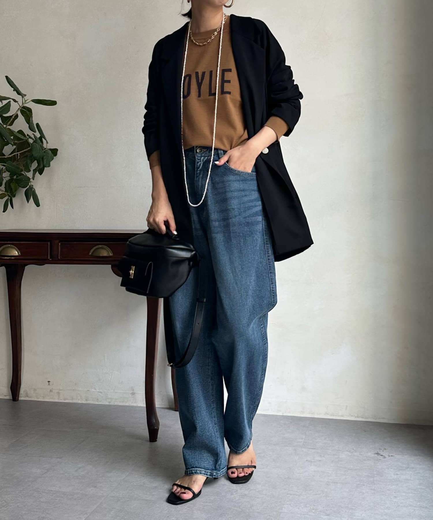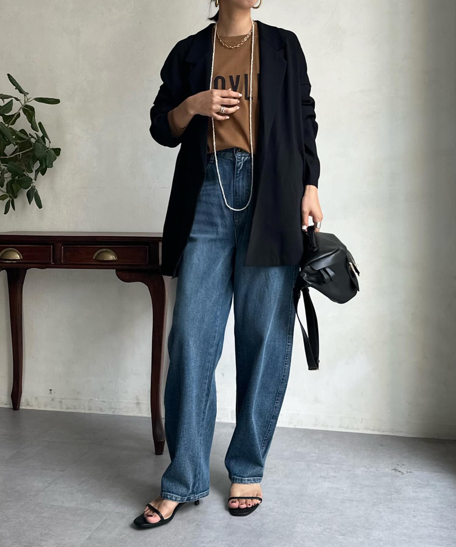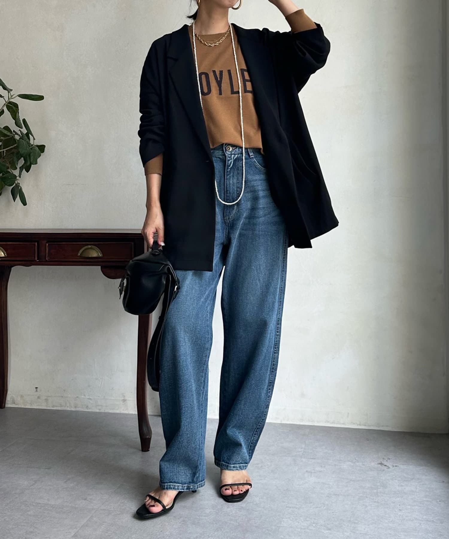 身幅に余裕感があるため、堅い印象になりすぎず、適度な抜け感を演出してくれる1着です。