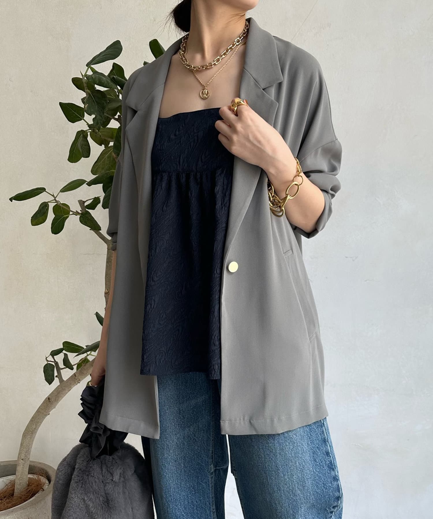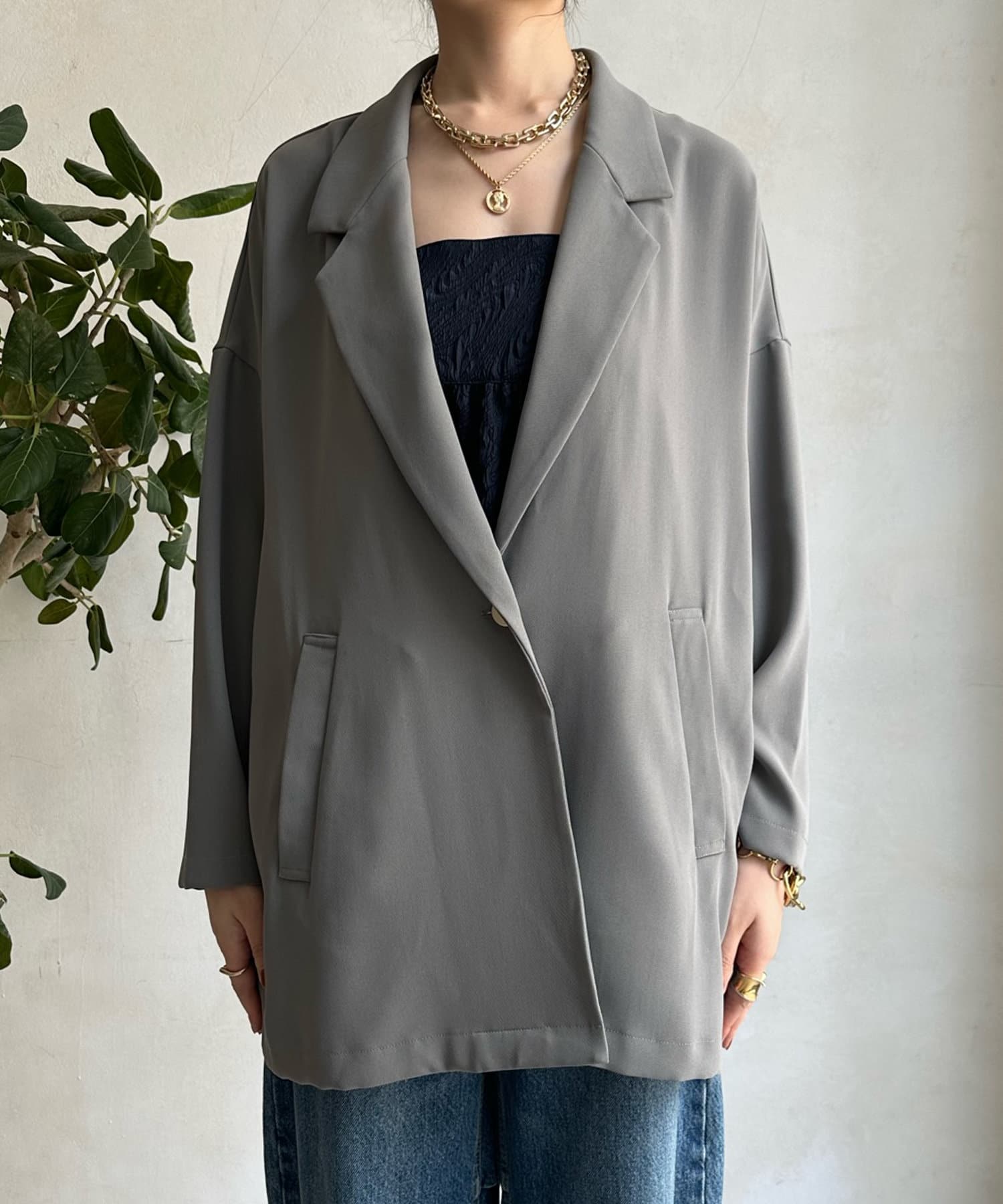 1つボタンのデザインで気軽に羽織れるジャケット。