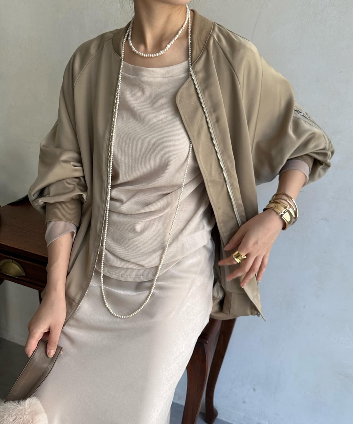 さらっと落ち感のあるサテンブルゾン!