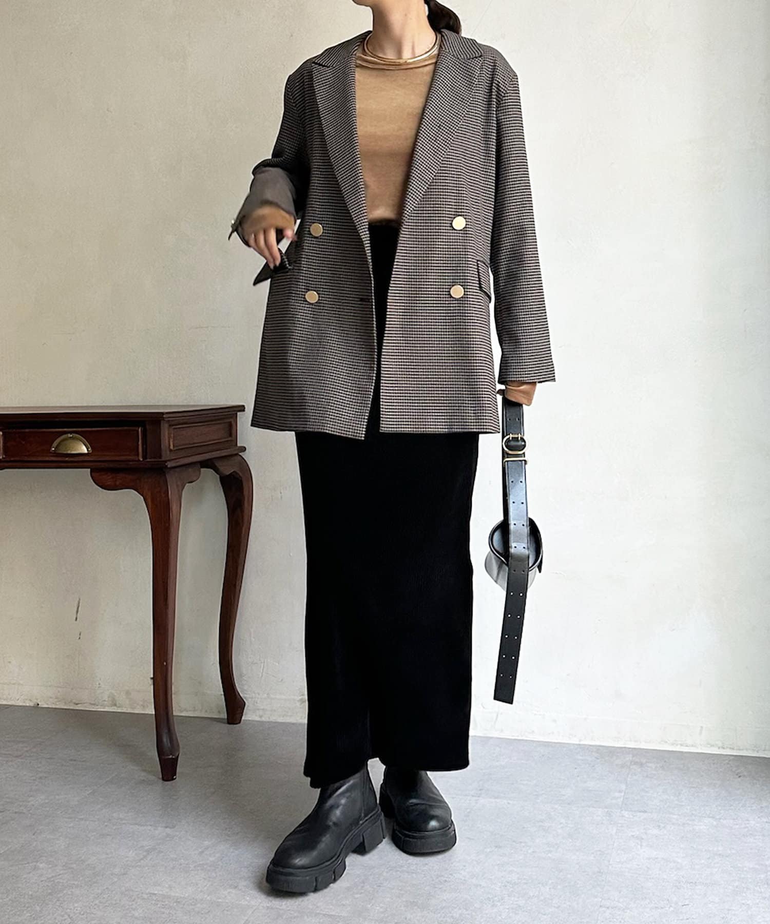 スタイリングを大人に仕上げるダブルジャケットは、インナー次第で季節の変わり目からずっと長く着て頂けるアイテム。