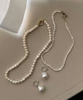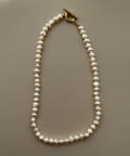 マンテルタイプの留め具がほどよいカジュアル感を演出する淡水パールのネックレス。