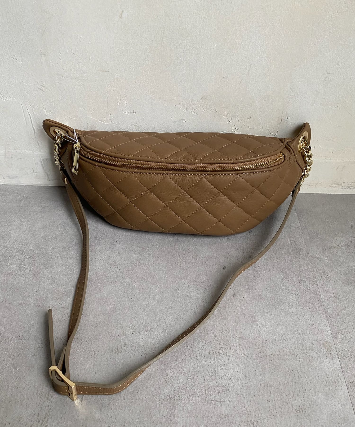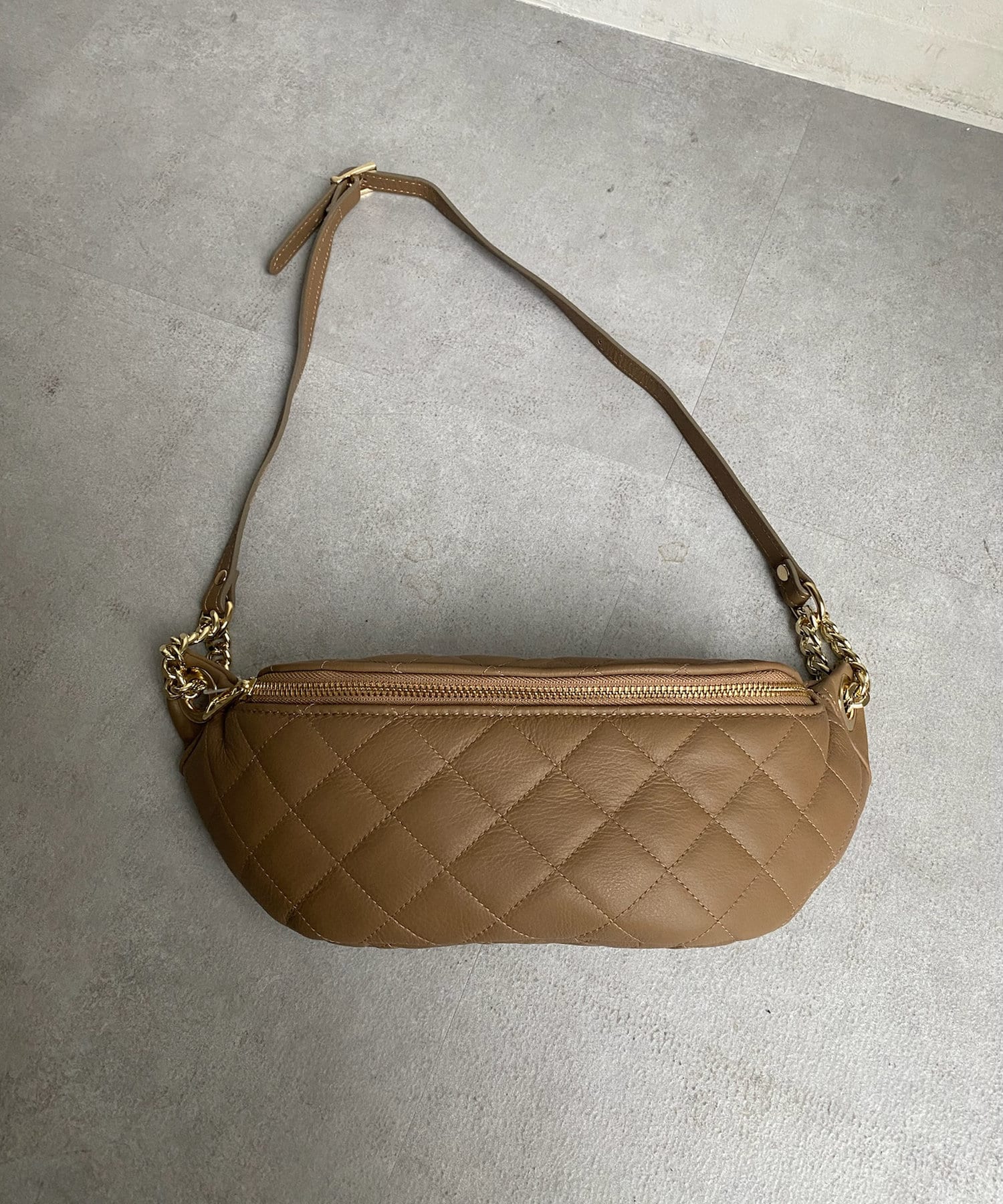アクティブな印象のボディーバッグをトレンドのレディライクなキルティングを施し新鮮なデザインに仕上げています。