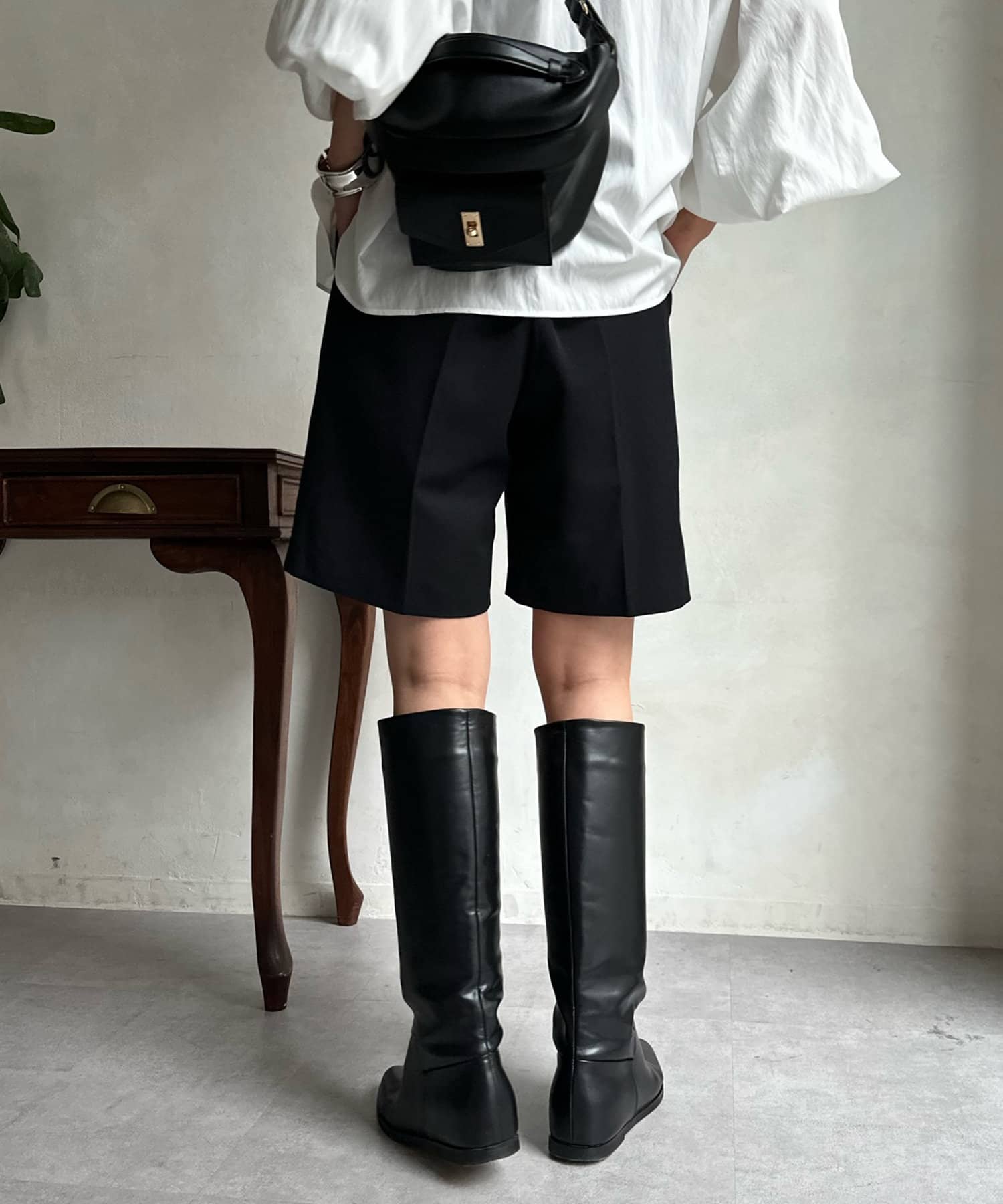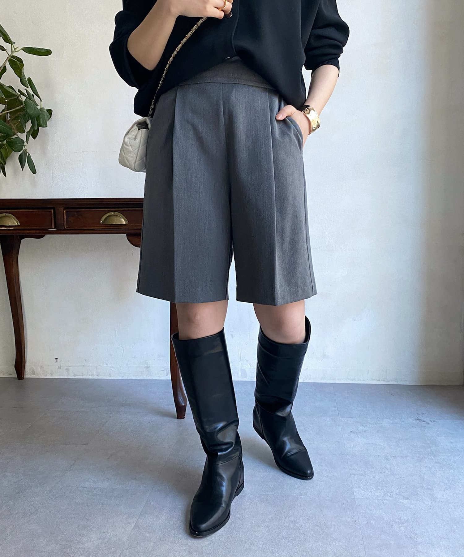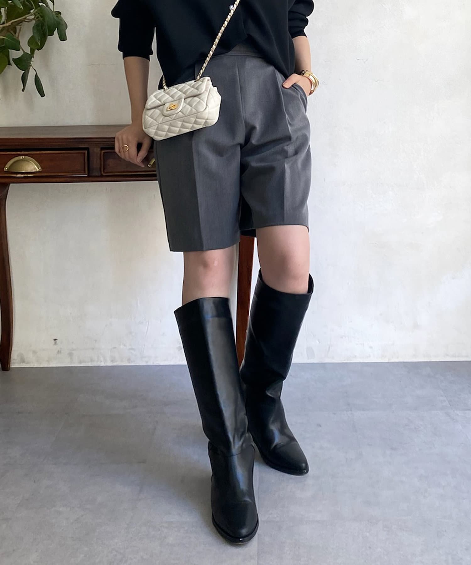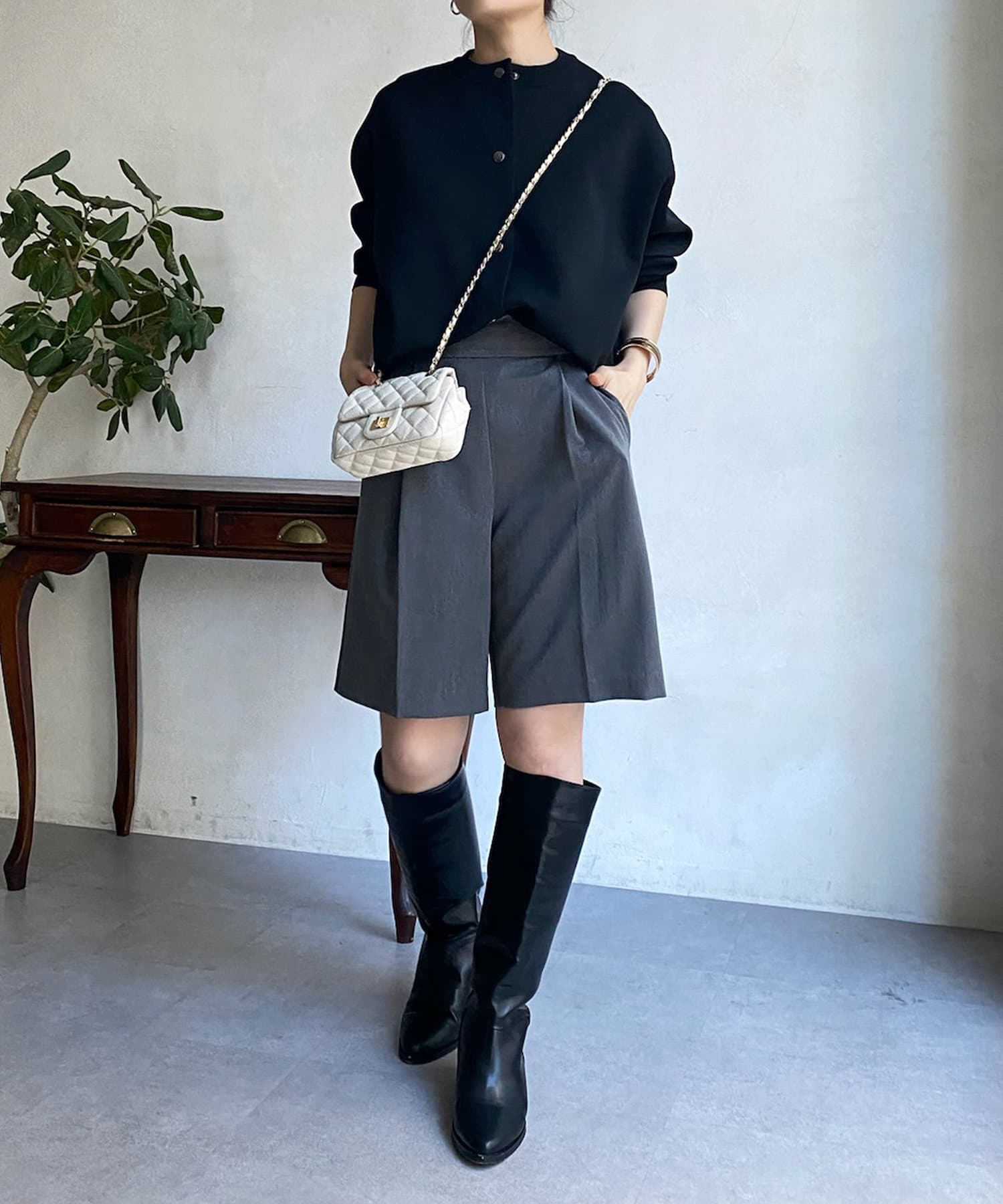 トレンドのショートパンツは、秋冬仕様のしっかりとした素材感と、ベーシックなカラーで大人な雰囲気に仕上げました。