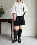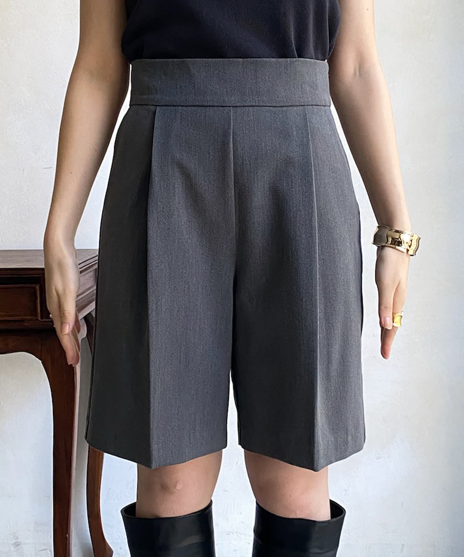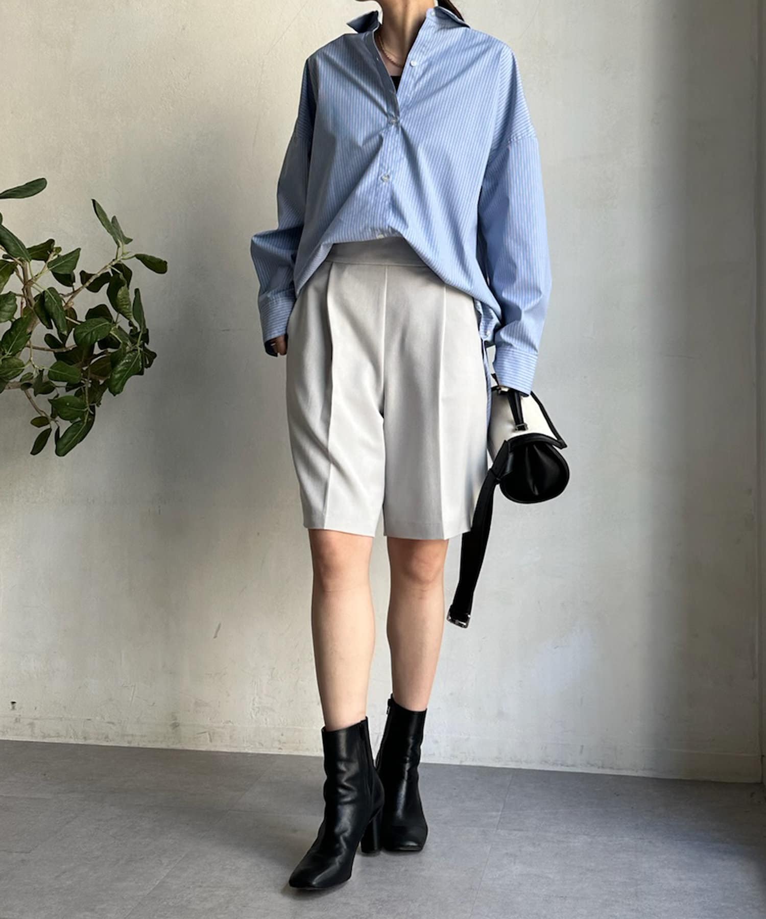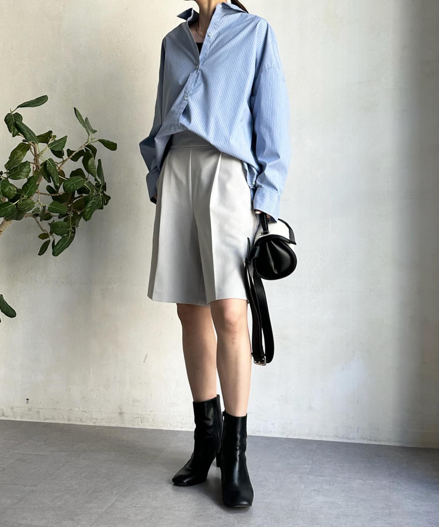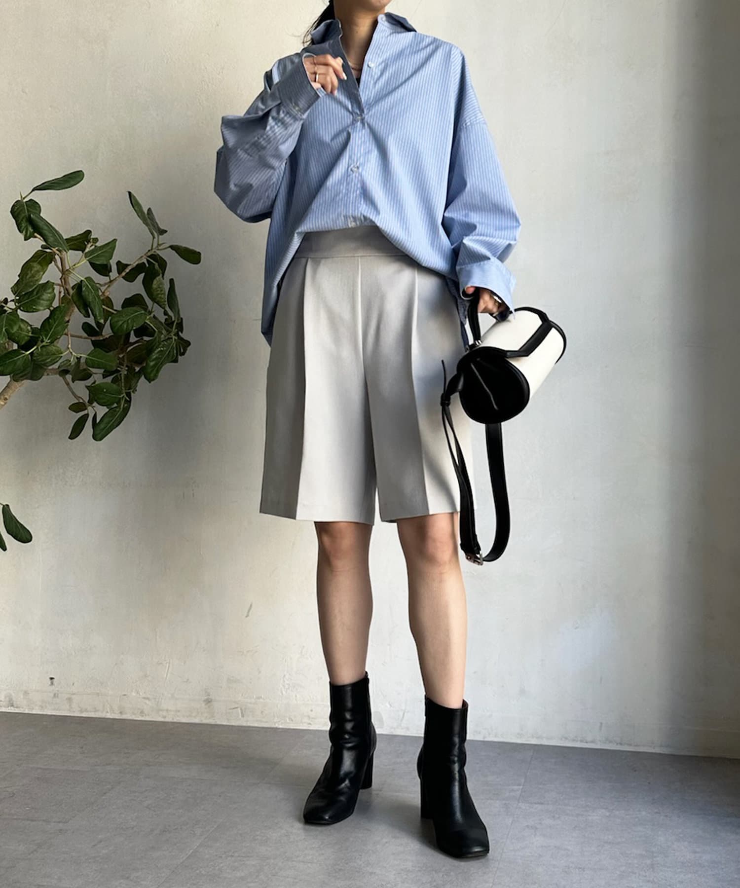 トレンドのショートパンツは、秋冬仕様のしっかりとした素材感と、ベーシックなカラーで大人な雰囲気に仕上げました。