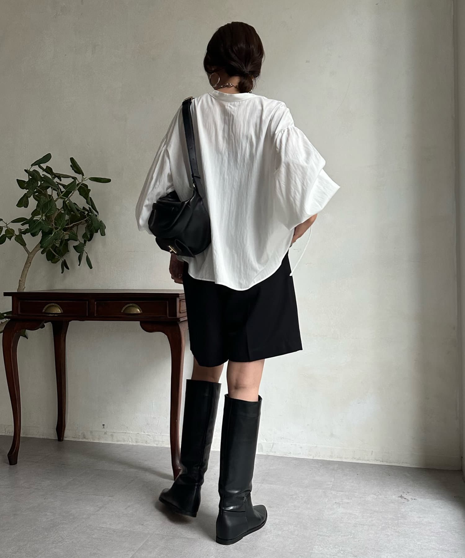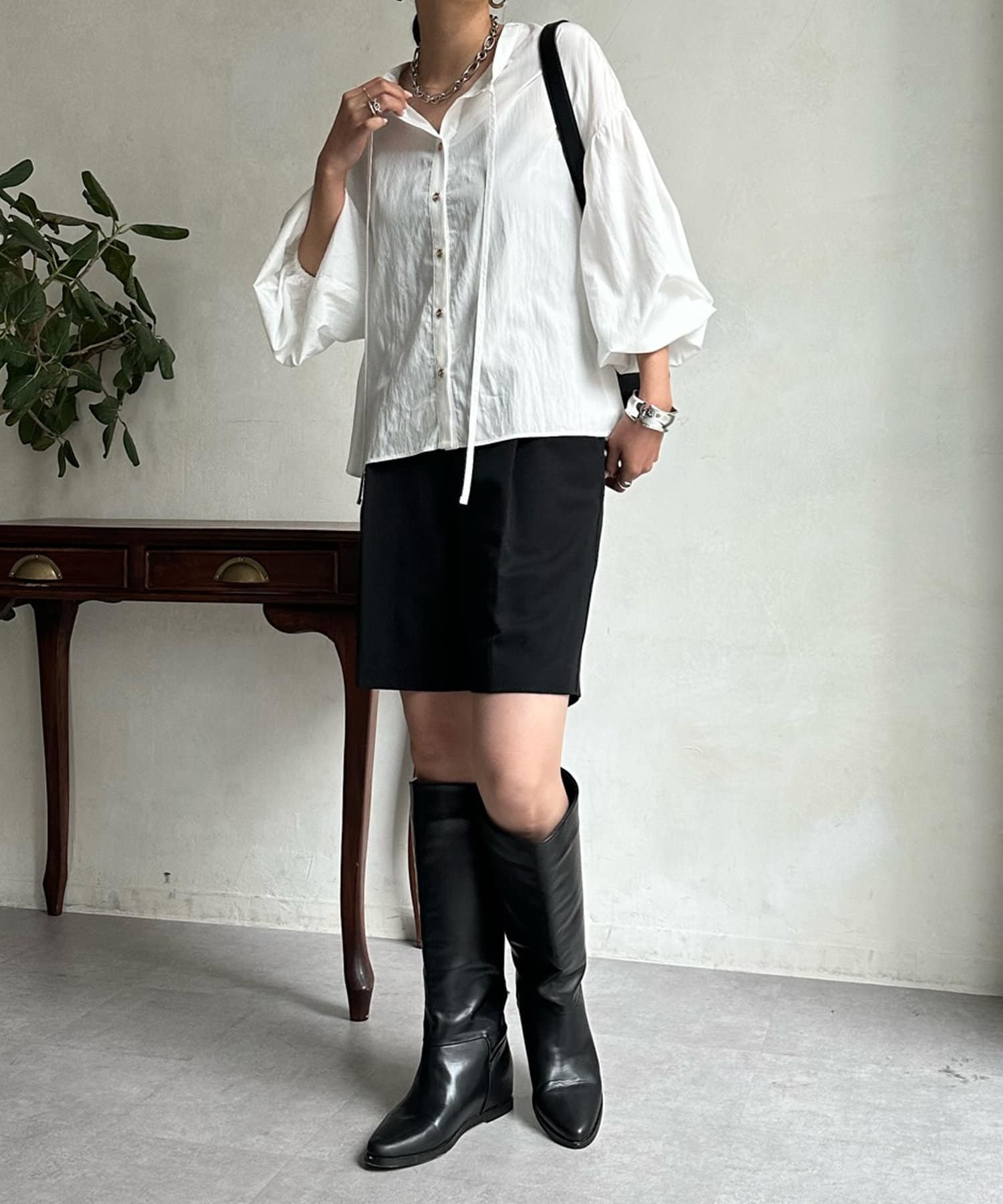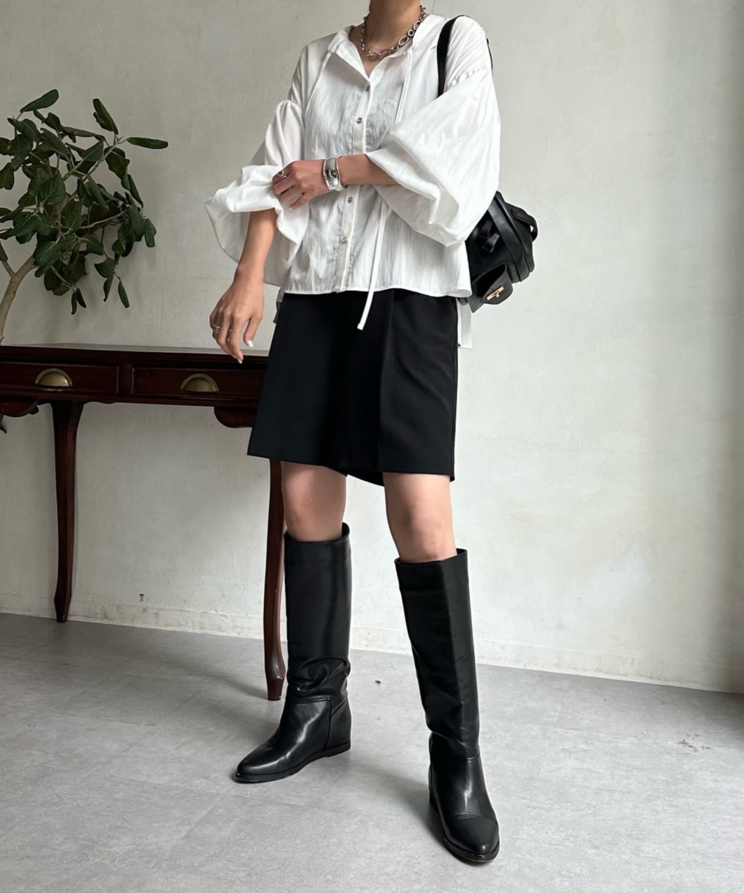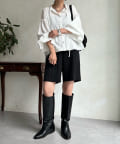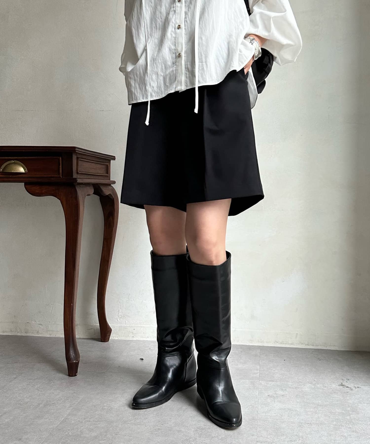トレンドのショートパンツは、秋冬仕様のしっかりとした素材感と、ベーシックなカラーで大人な雰囲気に仕上げました。