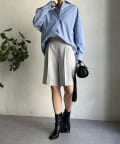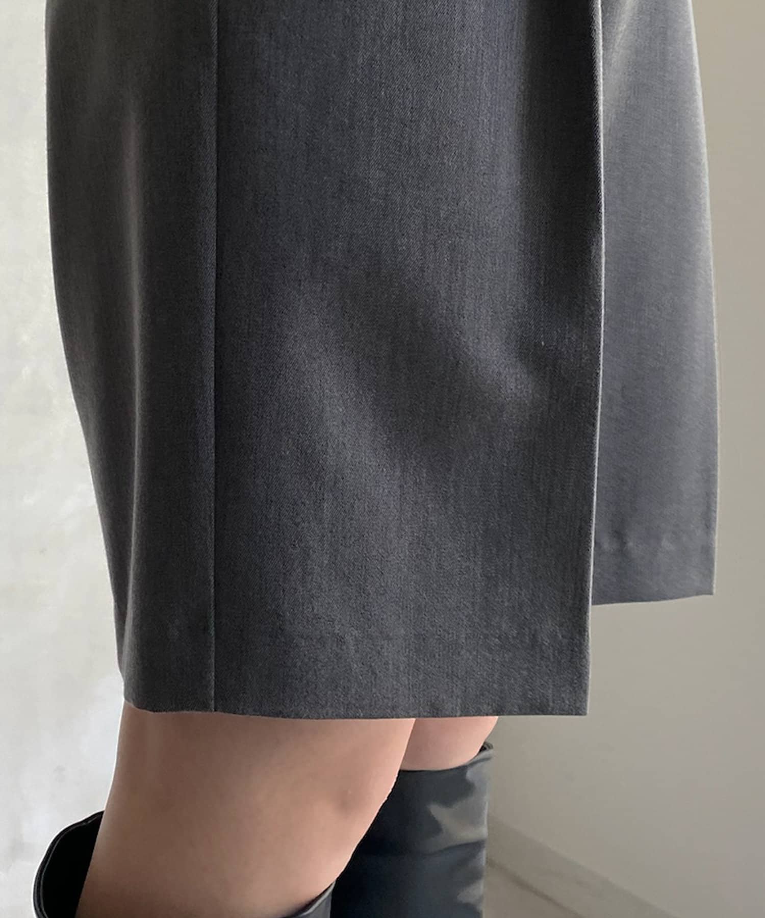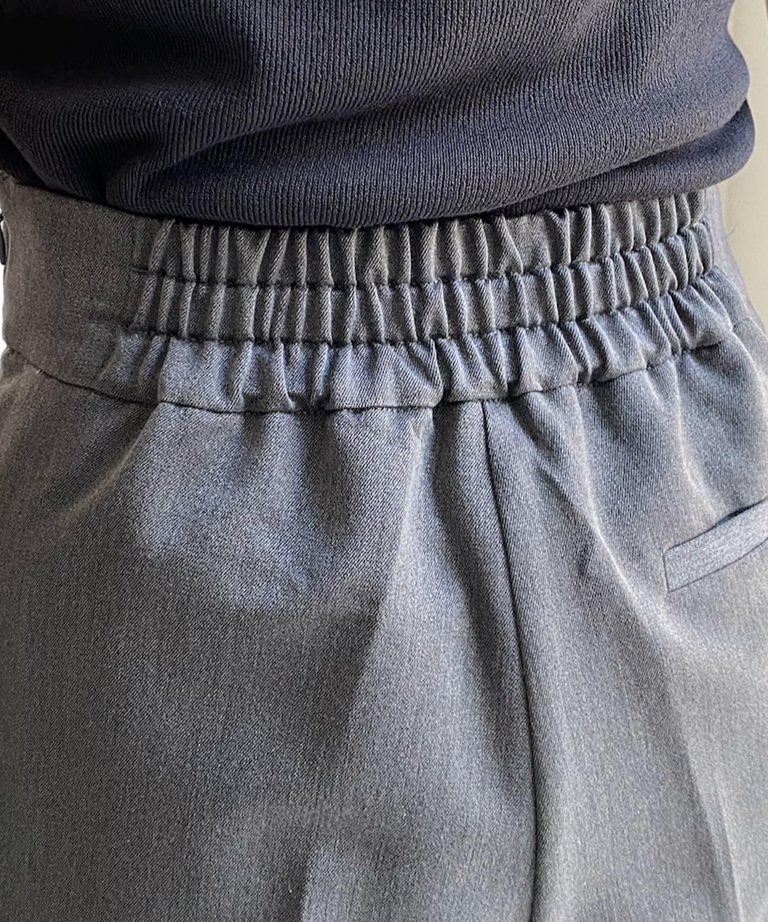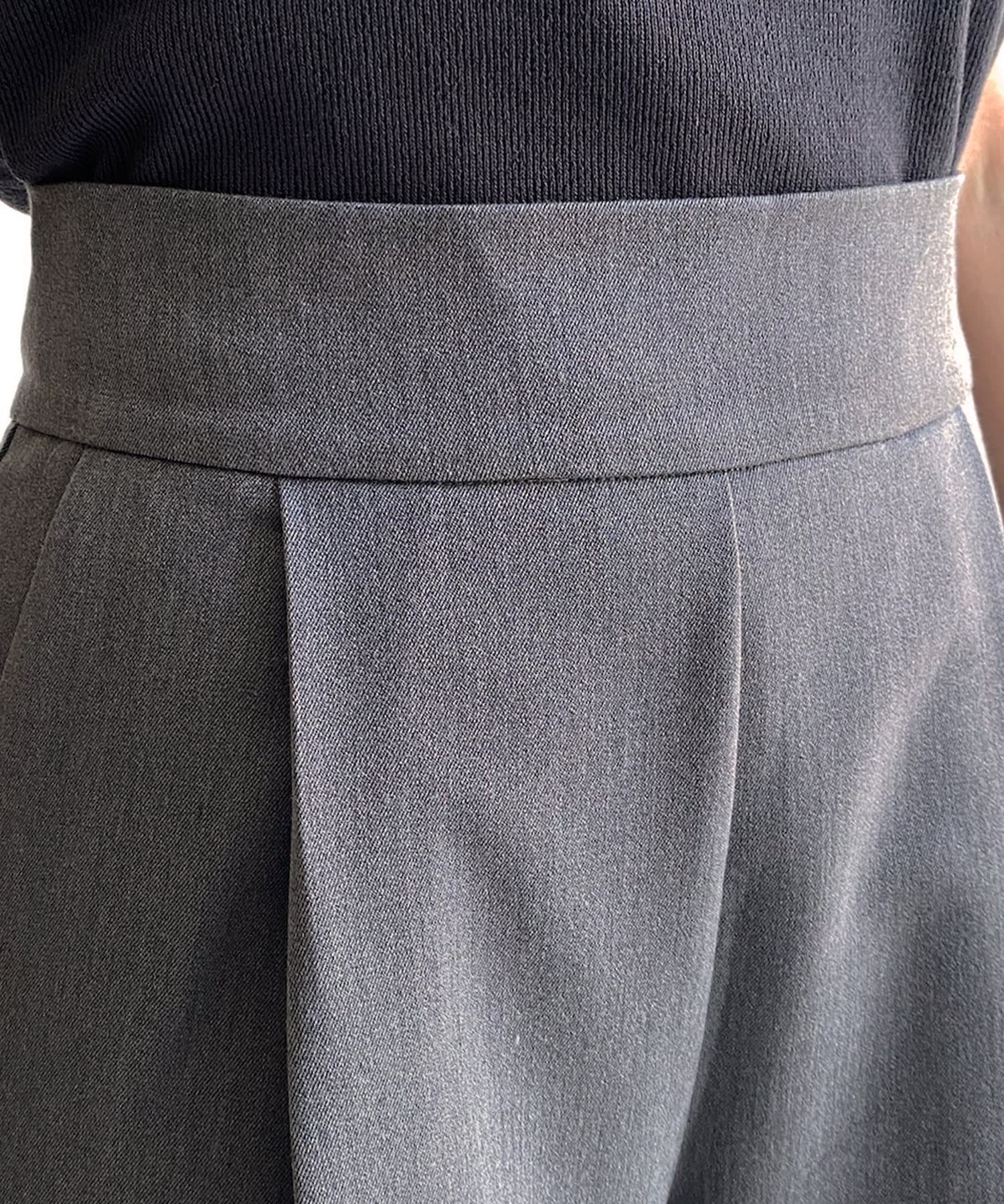 ハイウエストデザインの為、トップスインした時もすっきりとキレイに履いていただけ、フロントに入ったワンタックが女性らしいシルエットに。