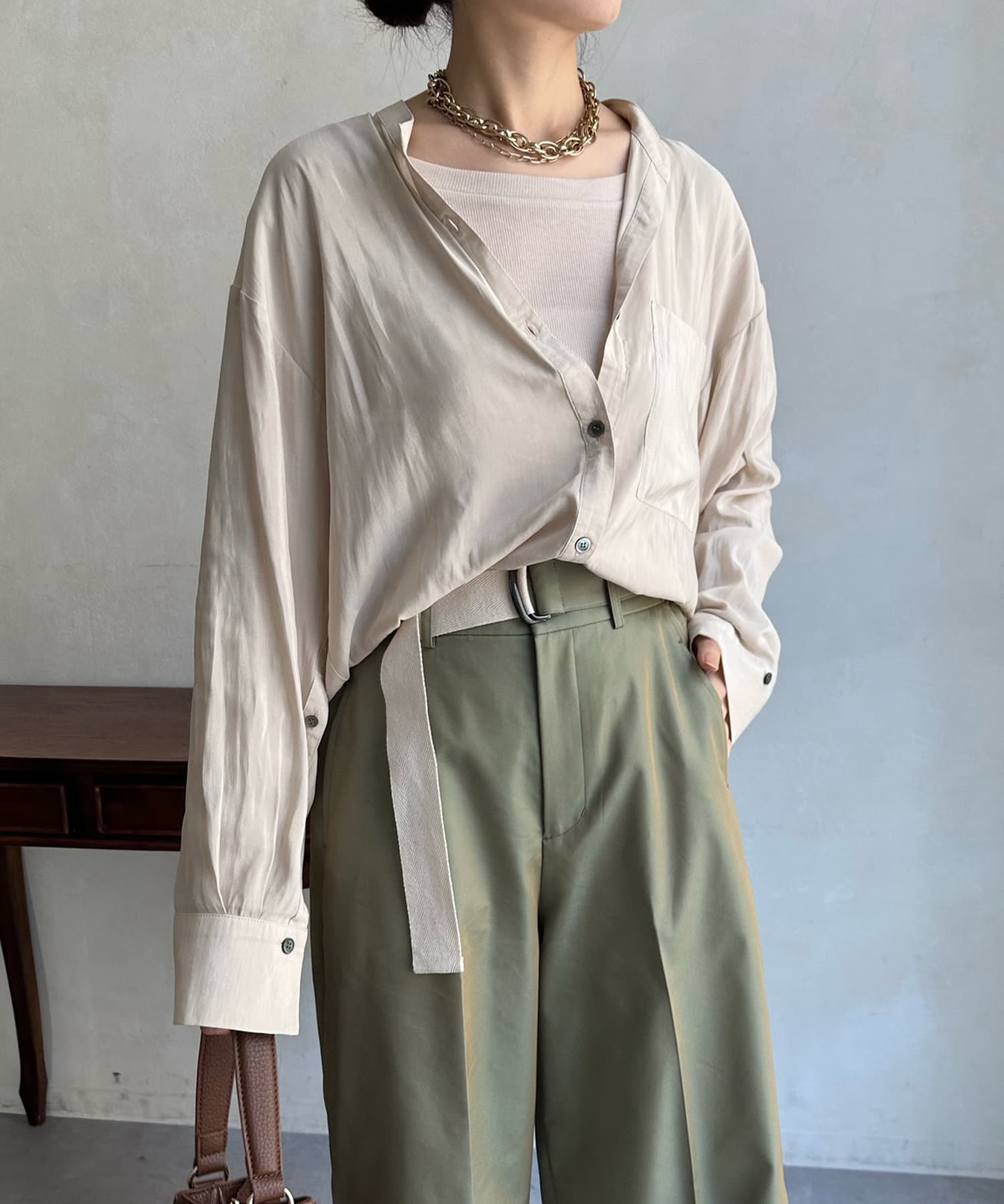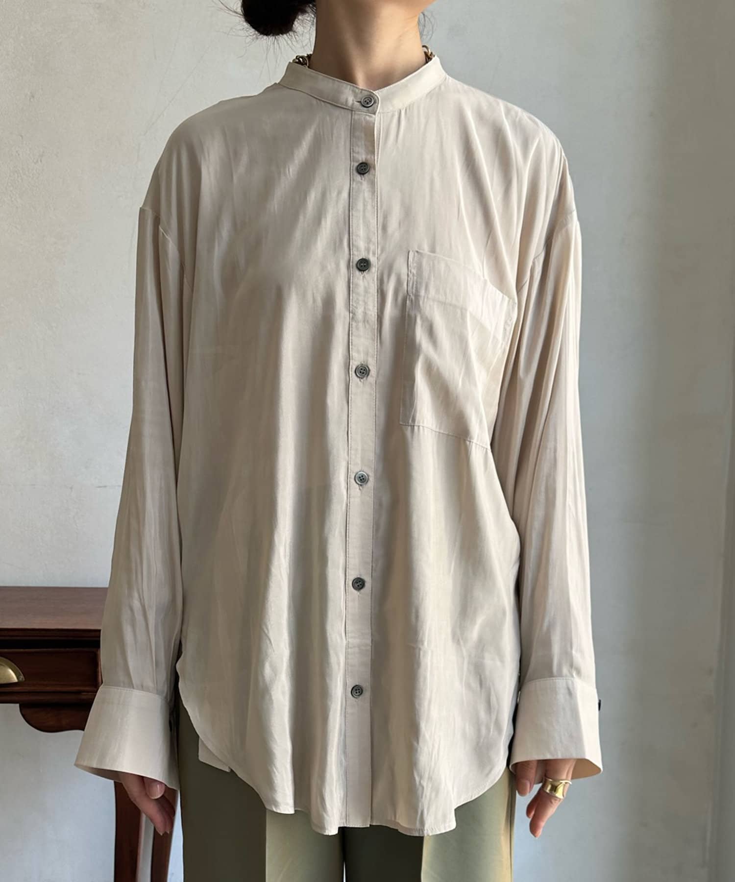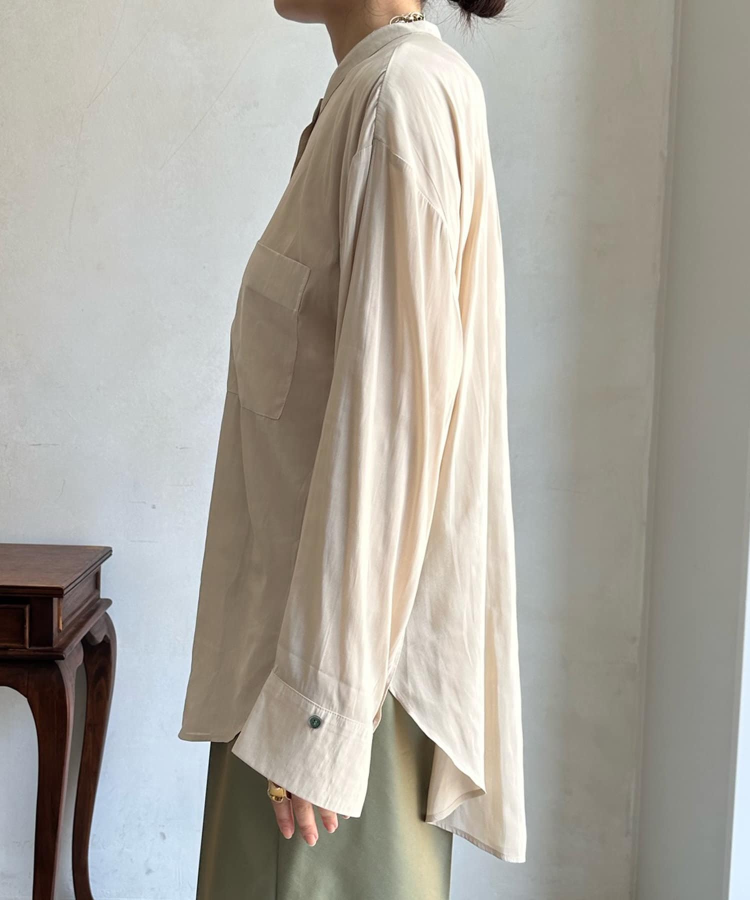 オーバー過ぎないサイズ感とシルエットでハンサムな中にも女性らしい印象の大人シャツに仕上げました。