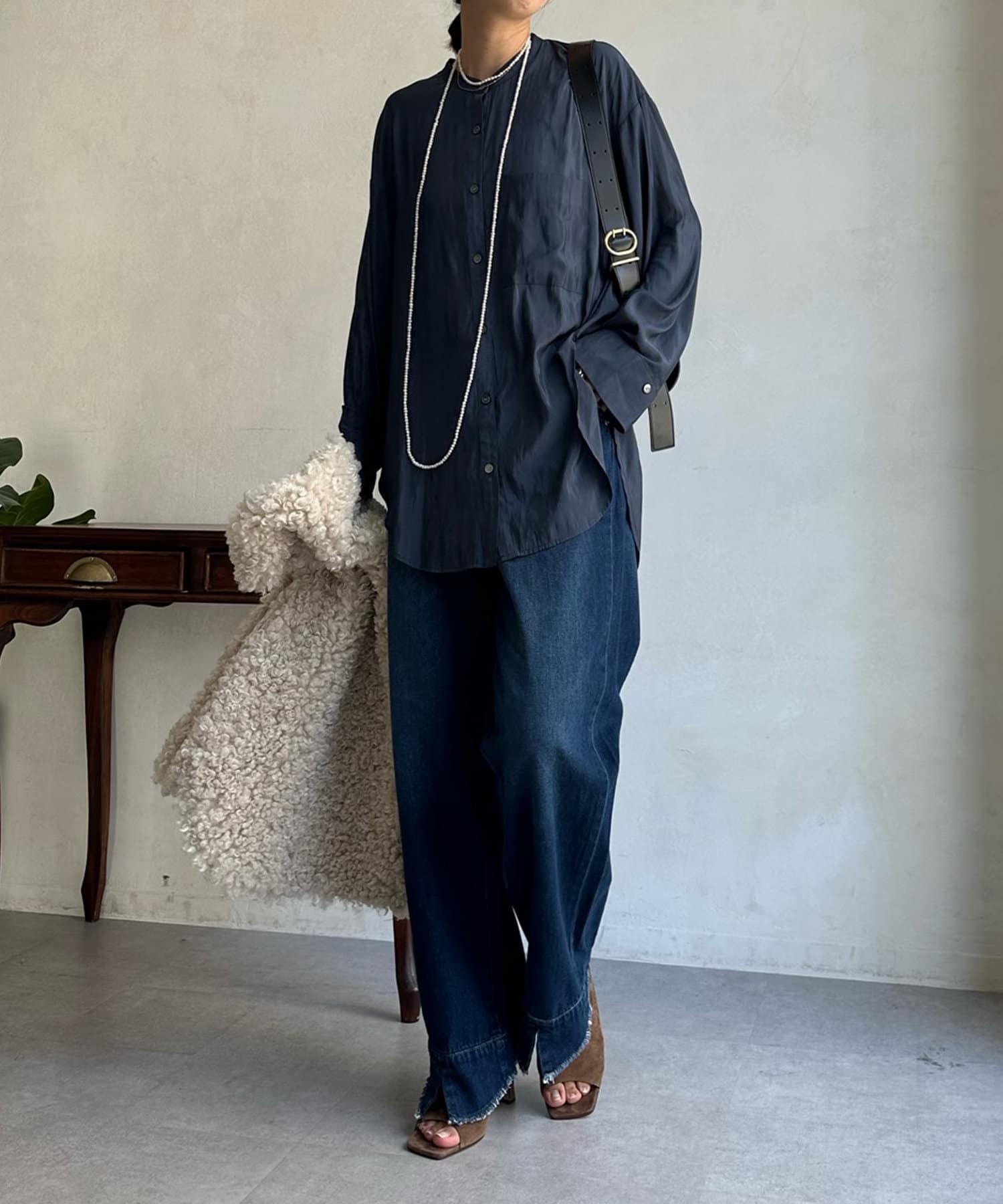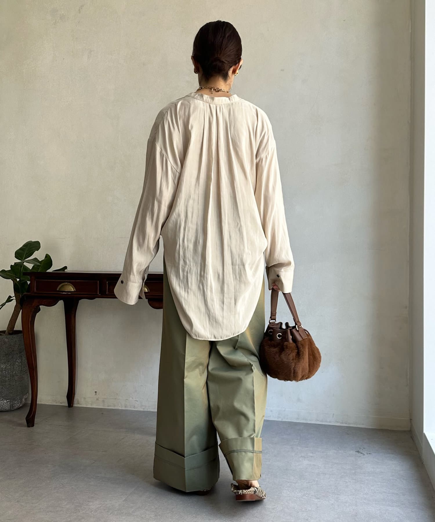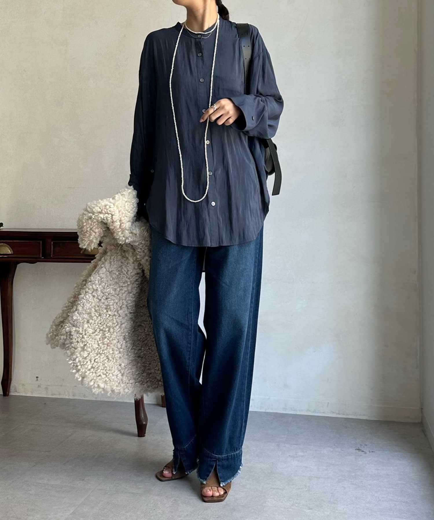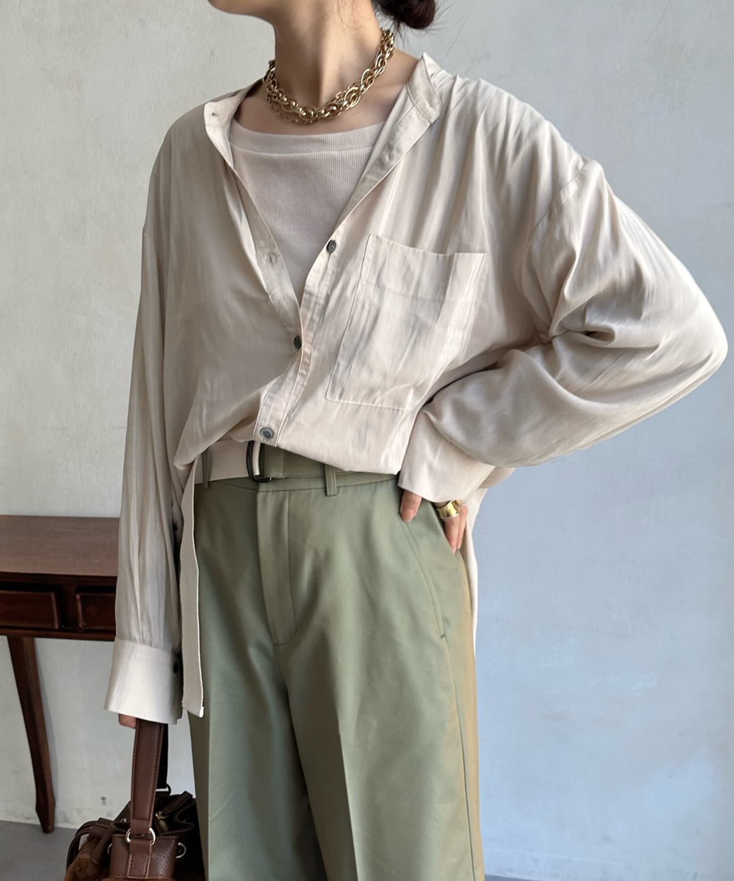 オーバー過ぎないサイズ感とシルエットでハンサムな中にも女性らしい印象の大人シャツに仕上げました。