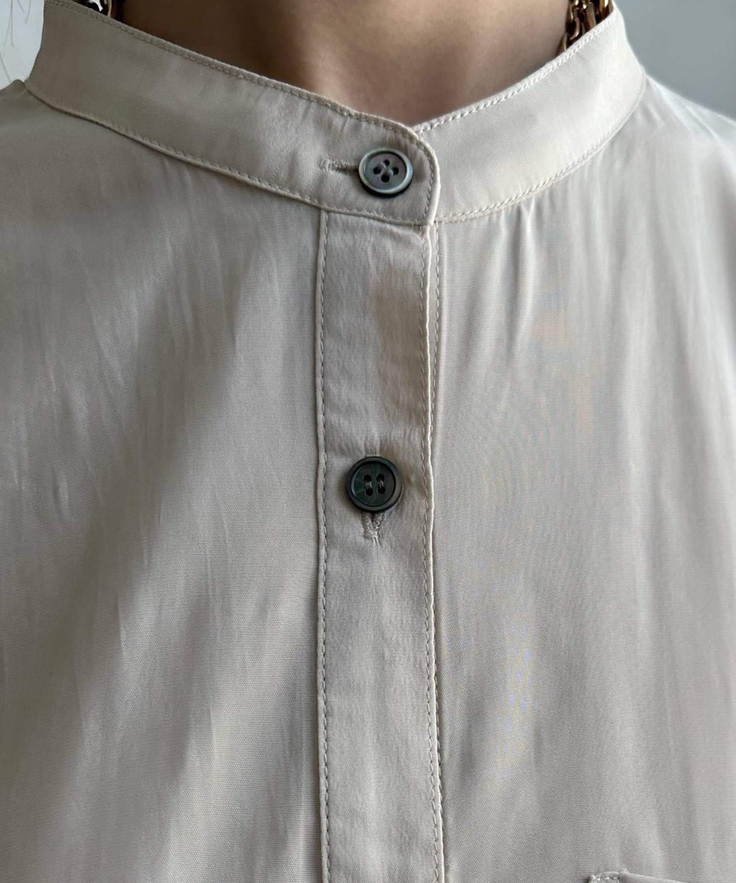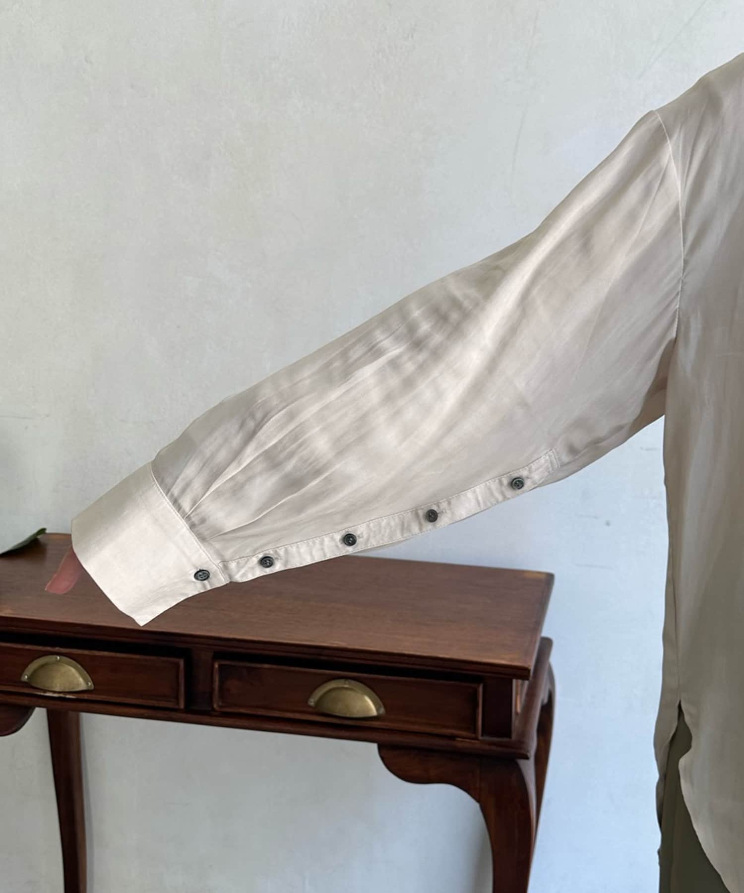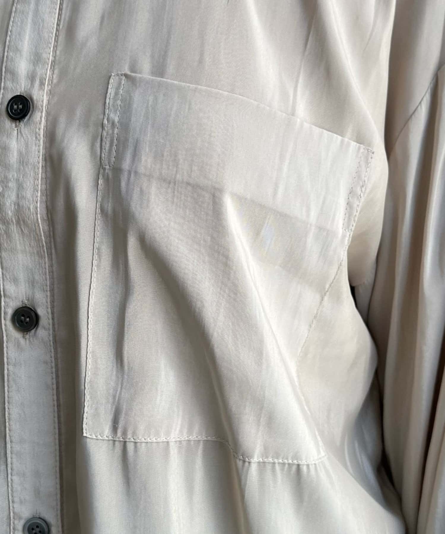 上品な光沢と透けすぎないシアーな素材感、ナチュラルな落ち感と風合いが特徴の生地を使用。