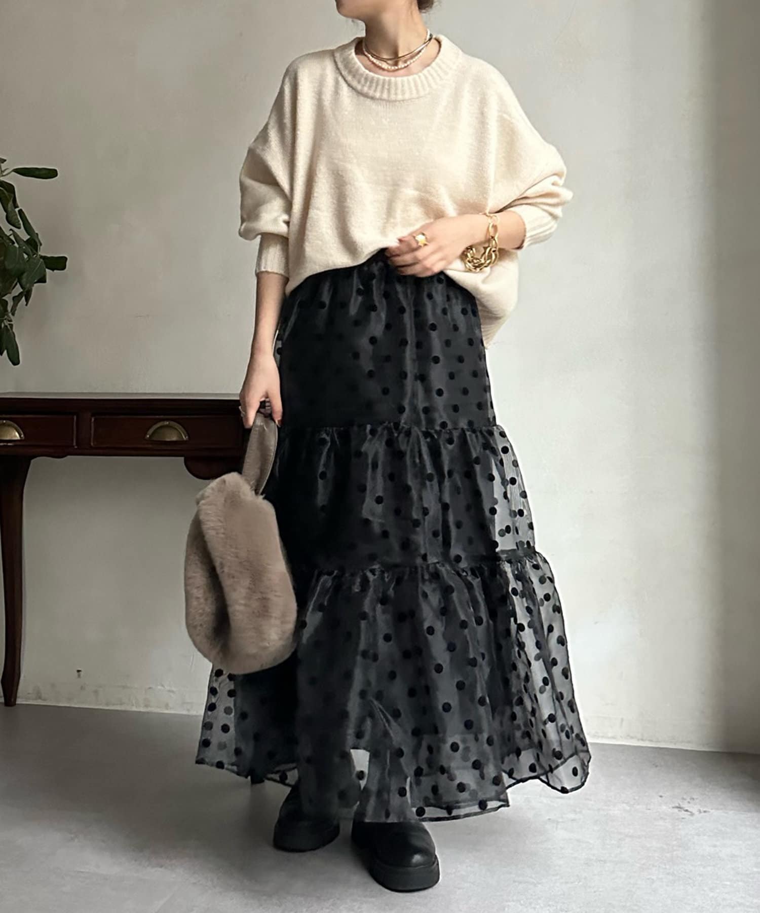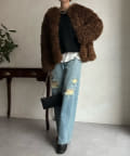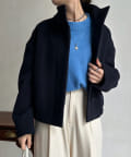 単色でシンプルながら、コンパクトな丈感と少し長めの袖のバランスが絶妙で女性らしい愛らしさが◎