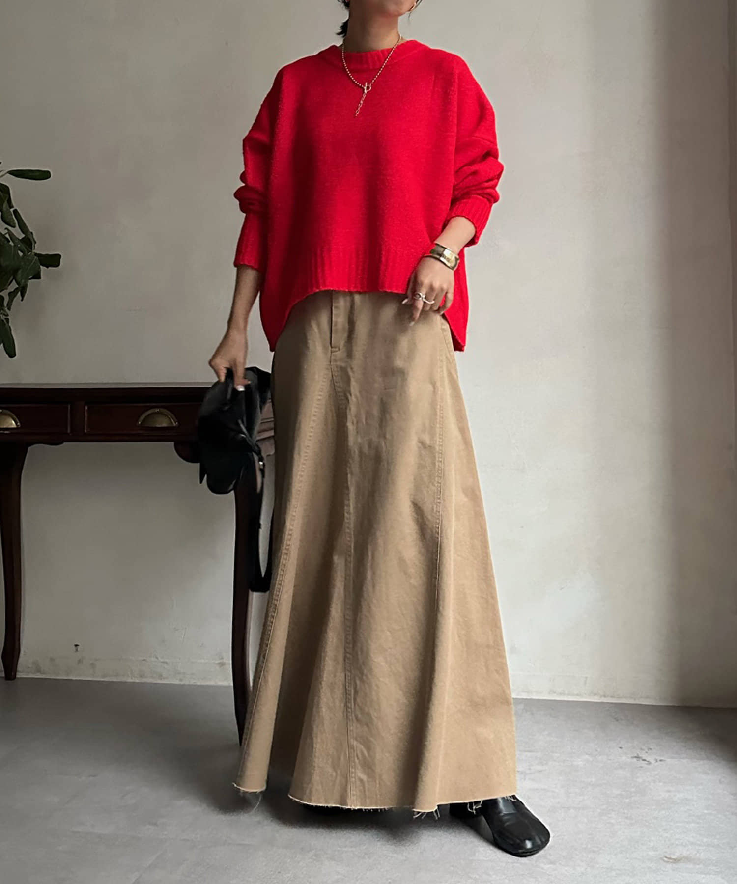 ややお尻にかかる丈感とゆったりした身幅で腰回りの体系カバーもでき、背中に縦にステッチがあることで幅広ながら背中スッキリ見えします!