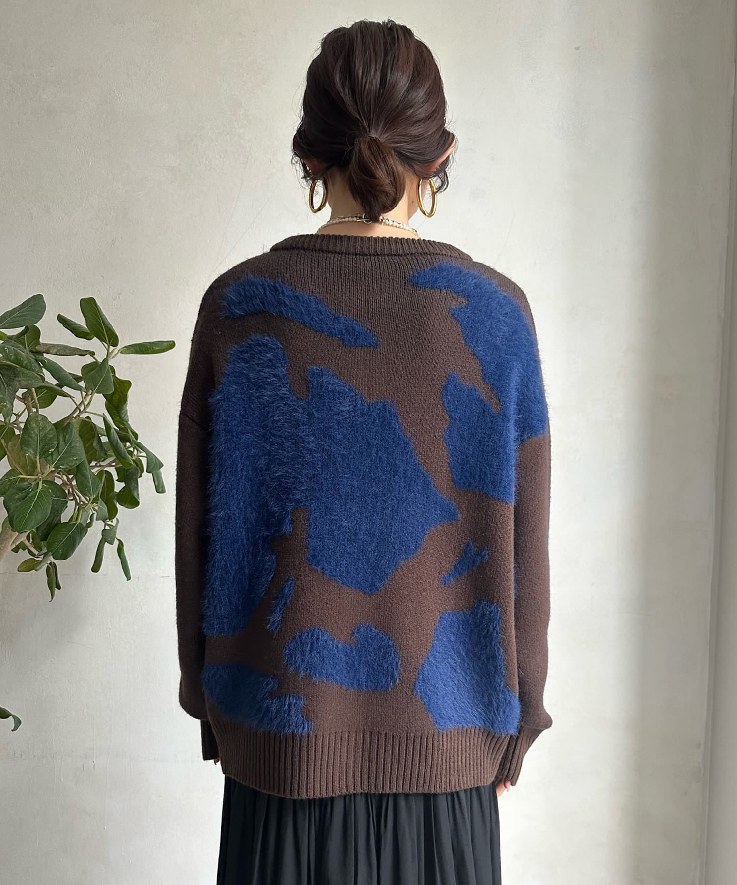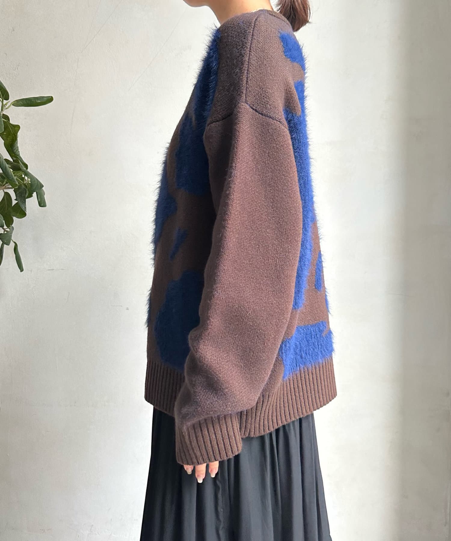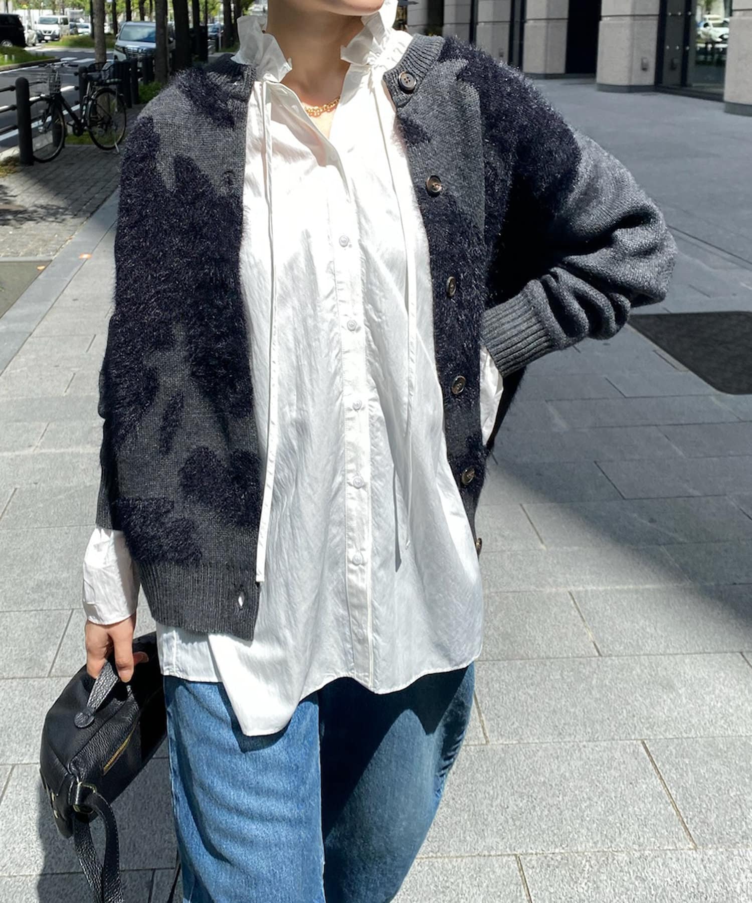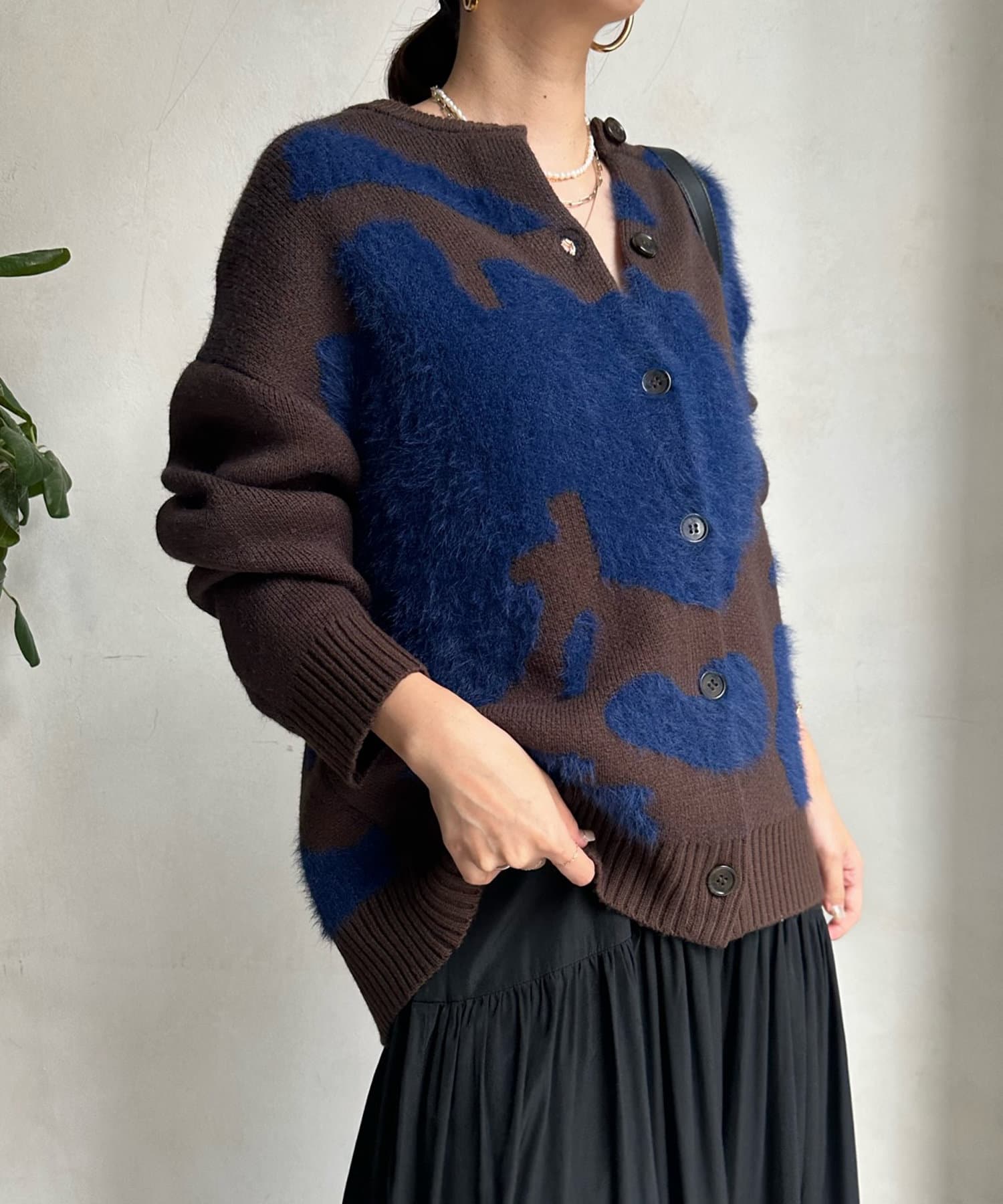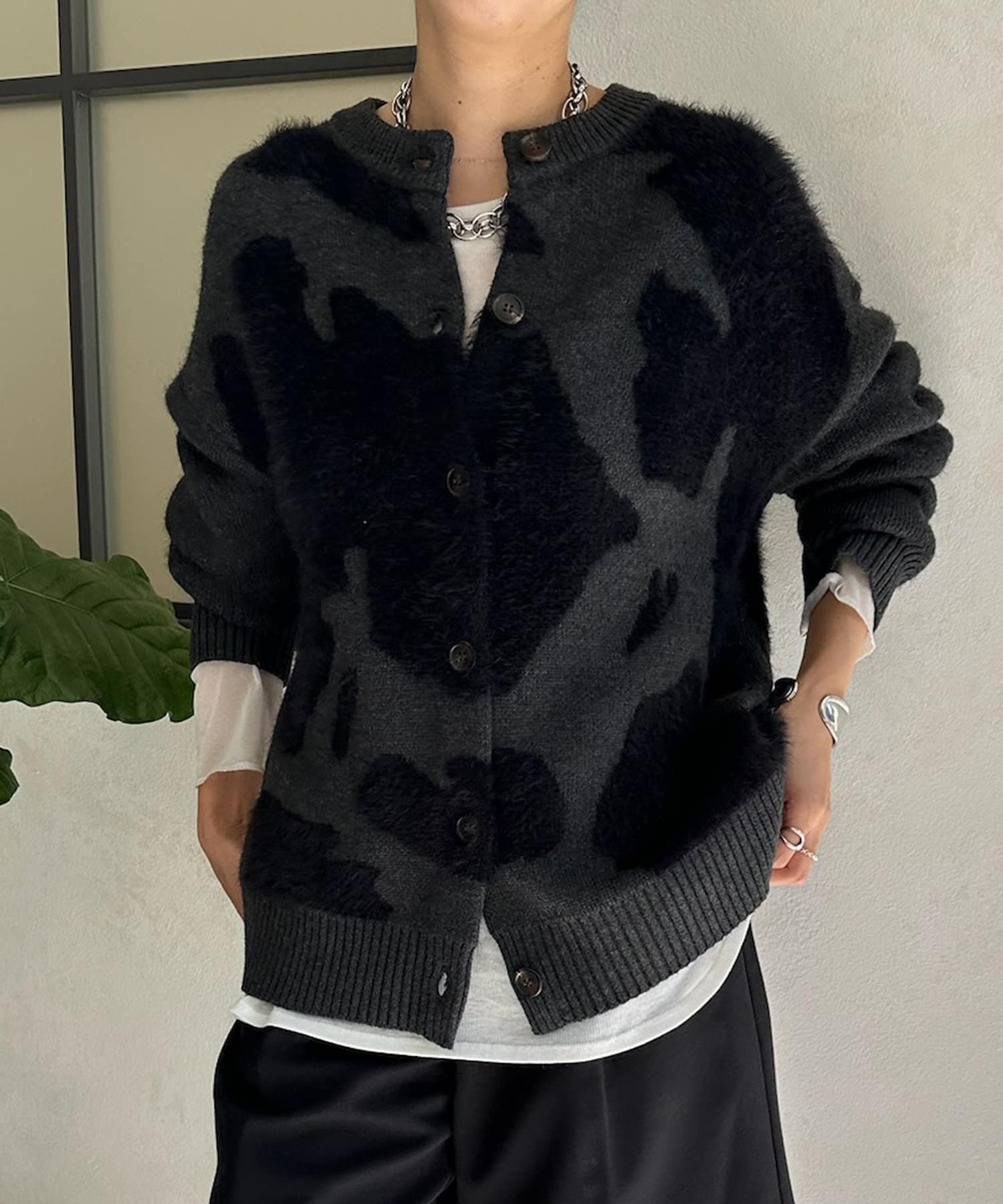 柄を引き立てる雰囲気ある起毛感がポイントのカーディガン。