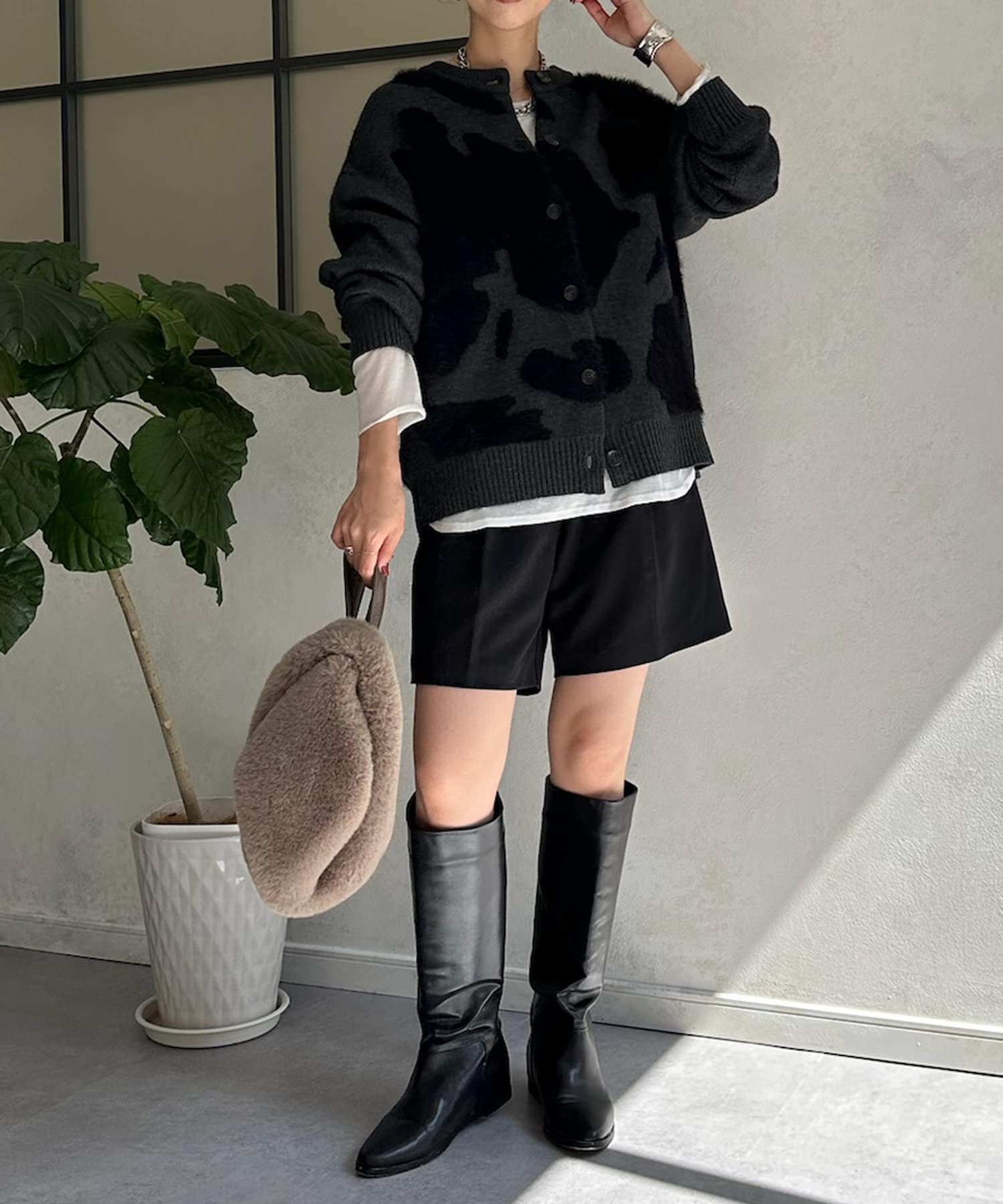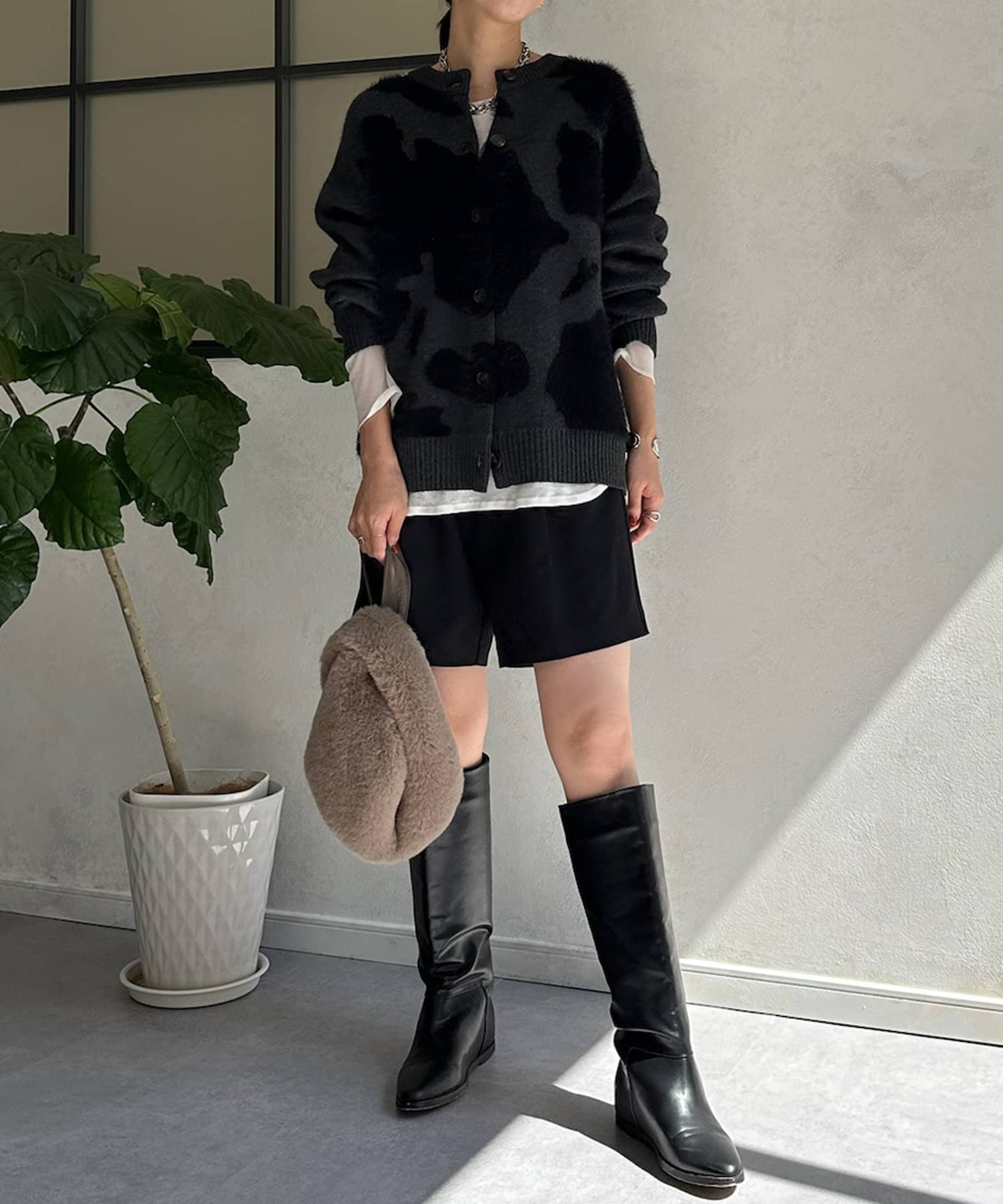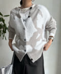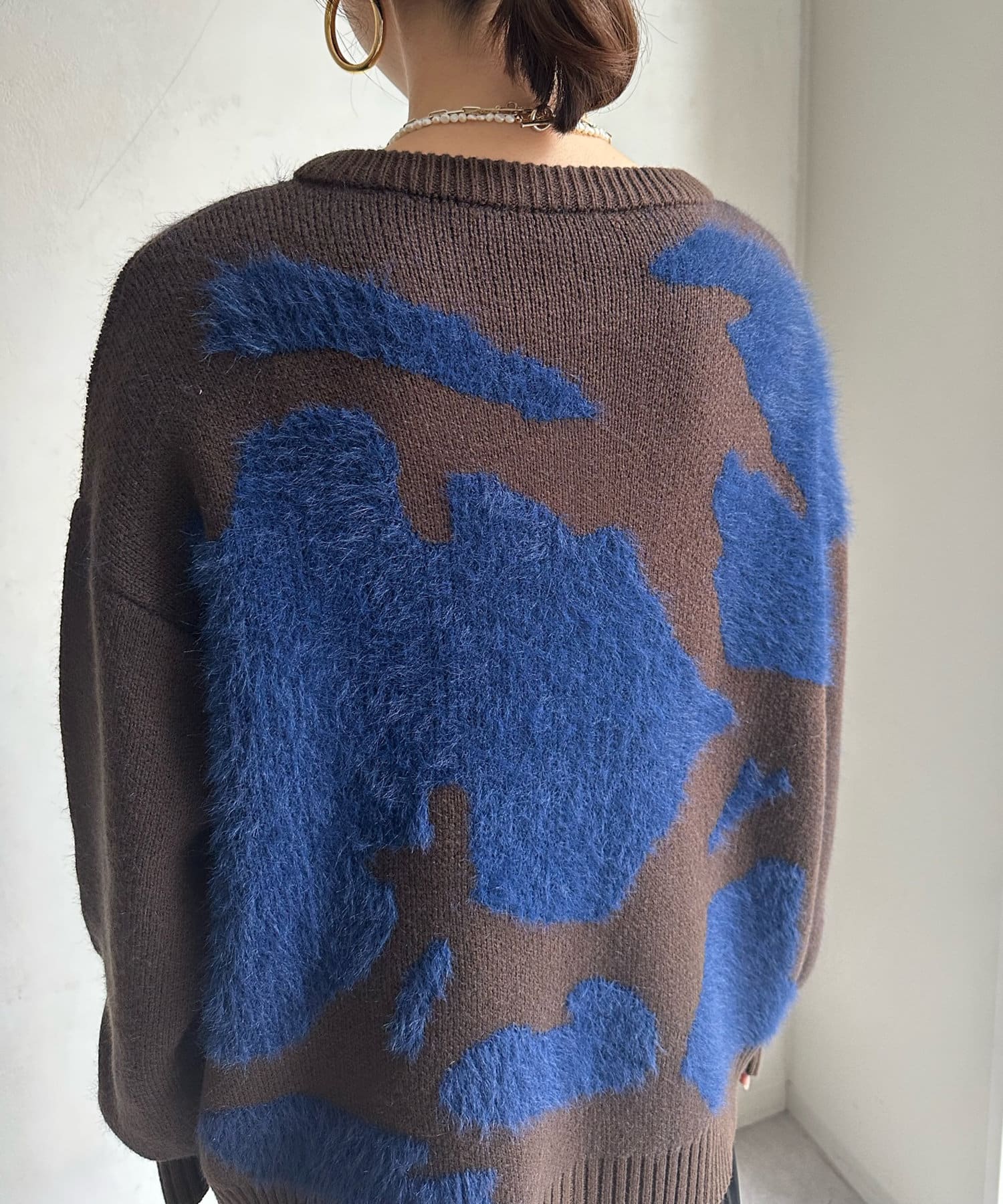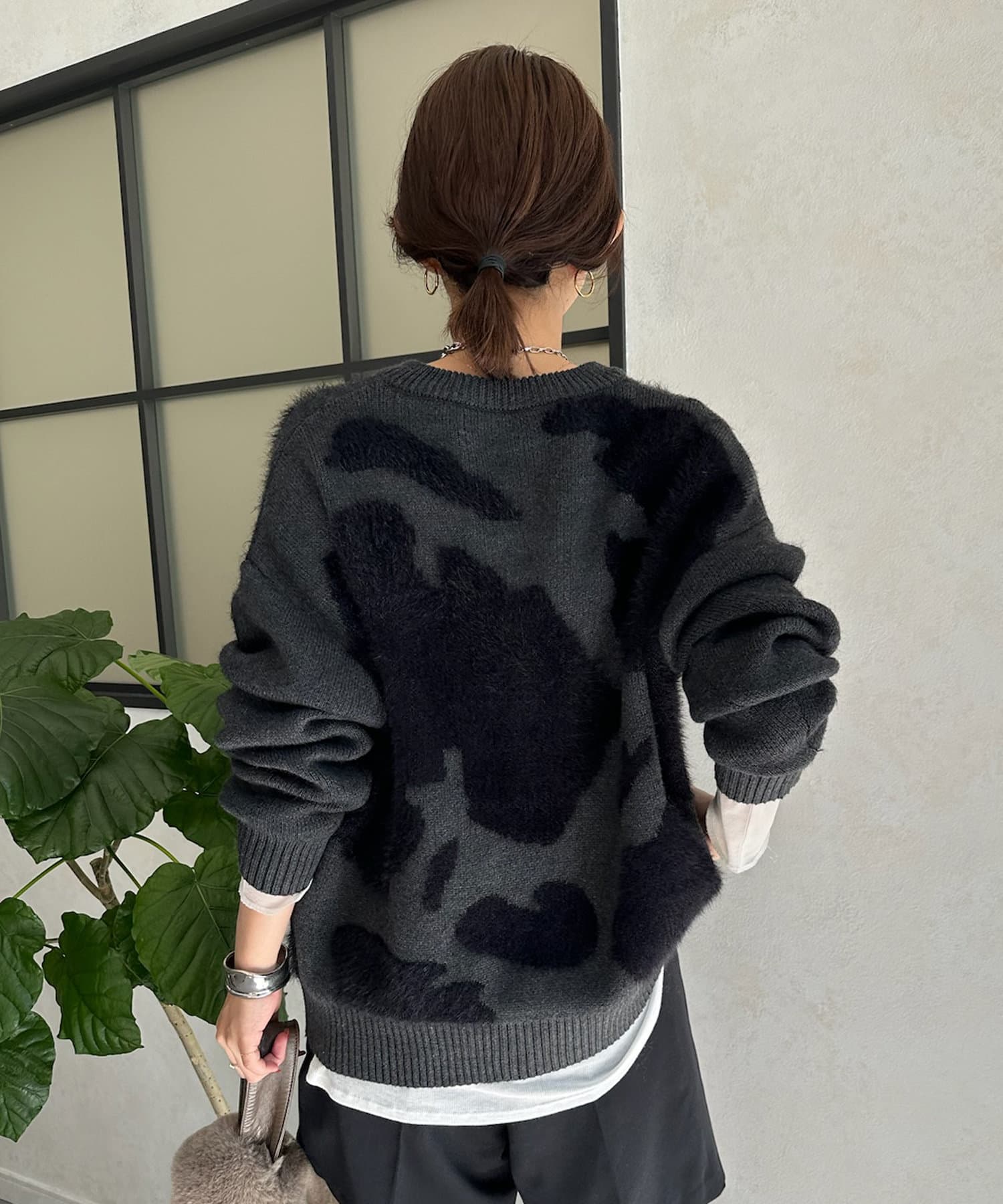 柄を引き立てる雰囲気ある起毛感がポイントのカーディガン。