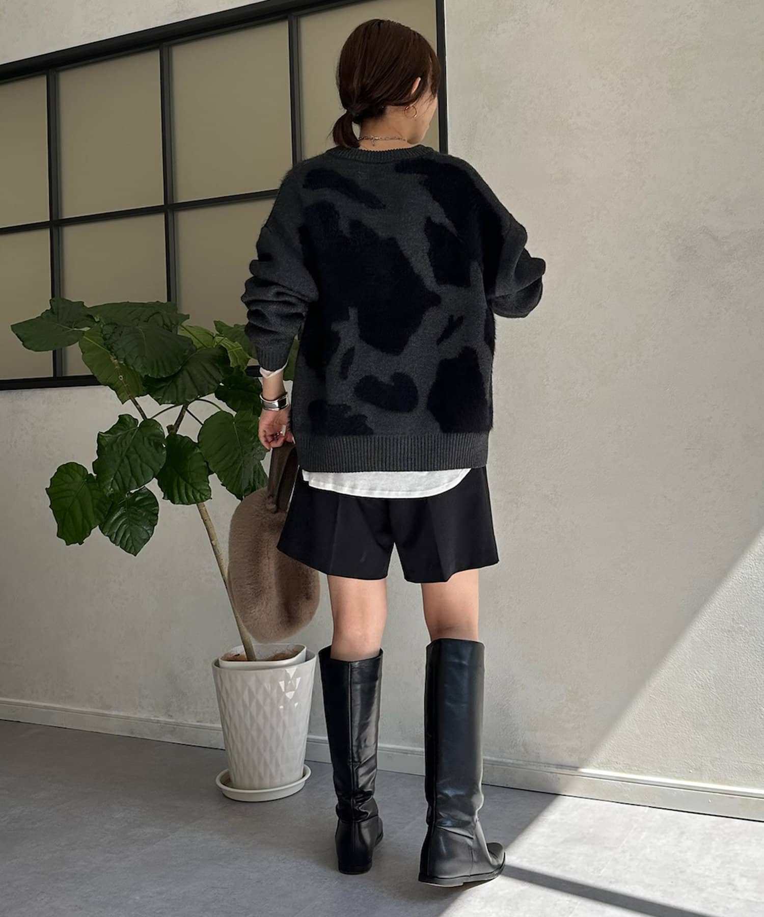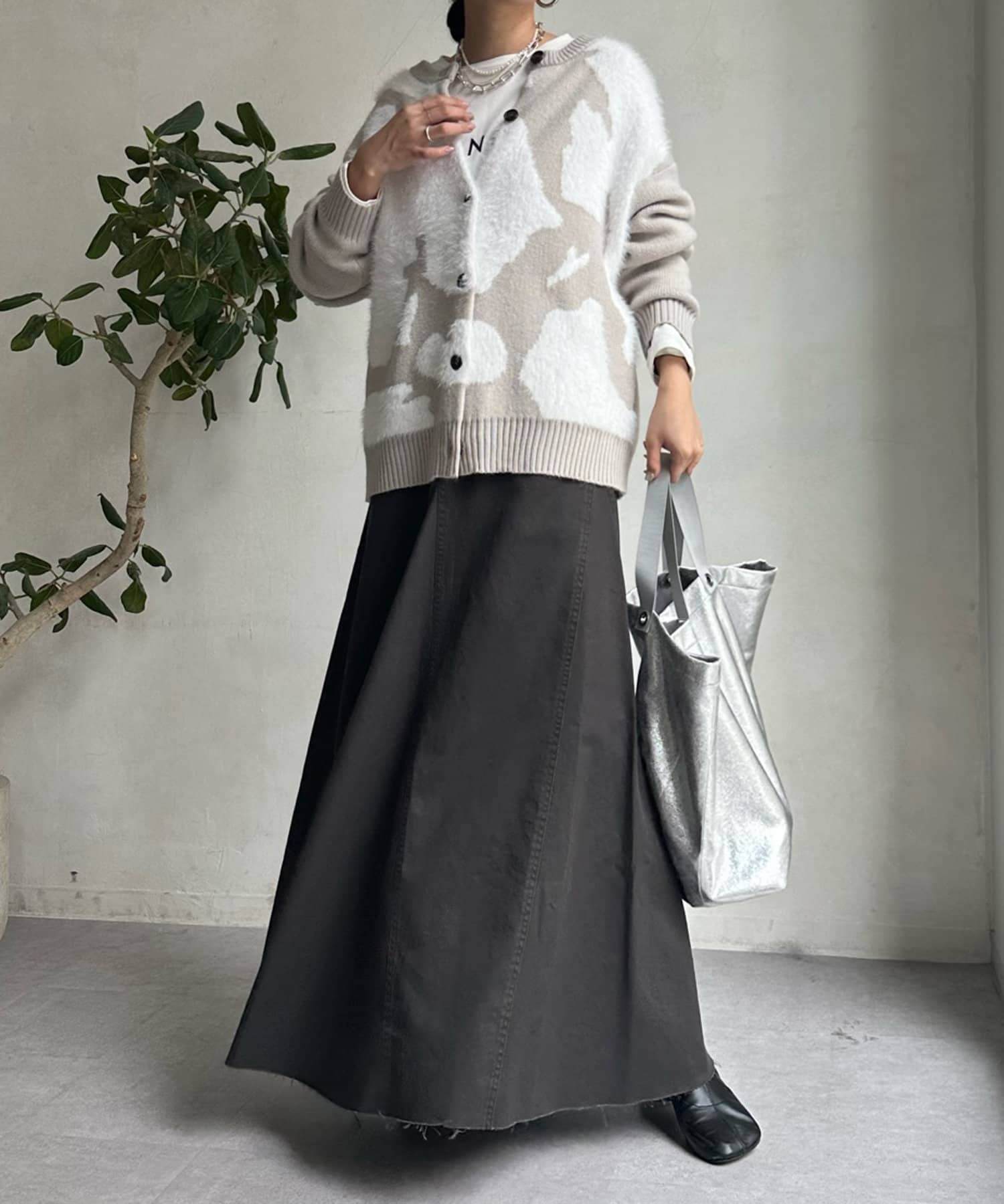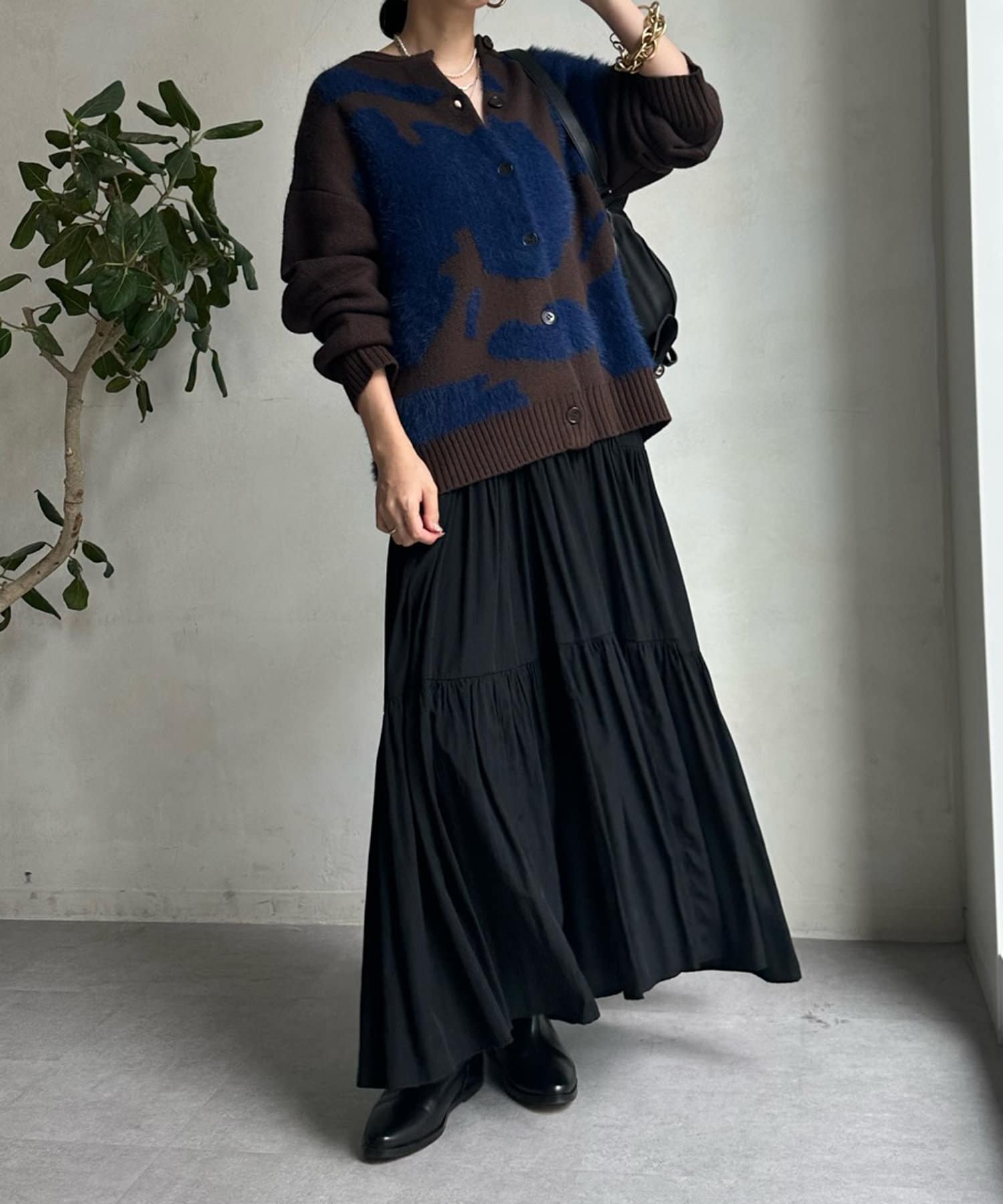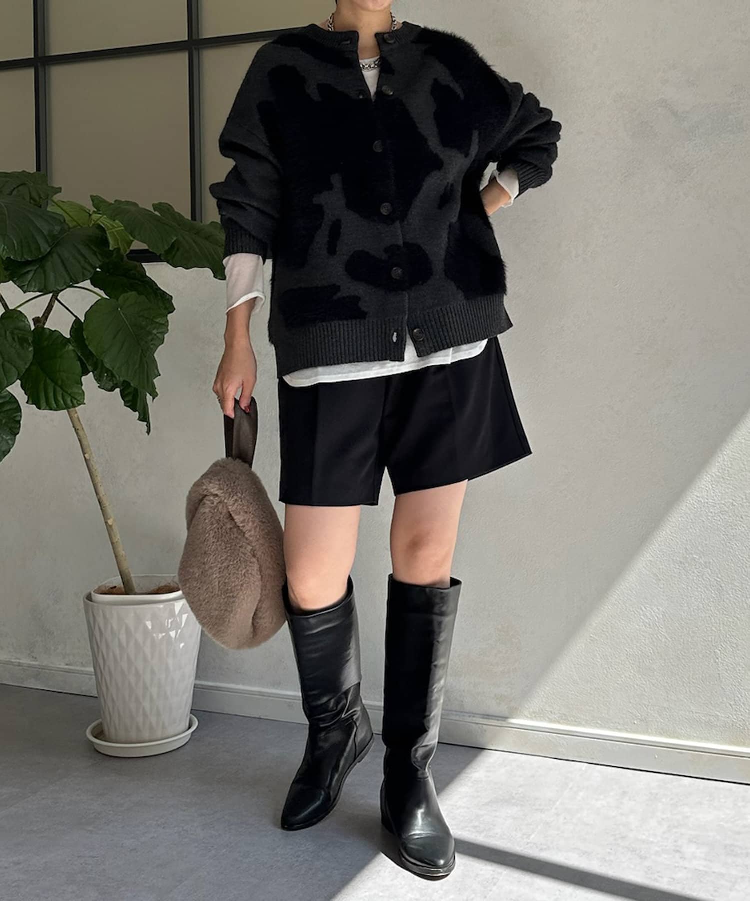 柄を引き立てる雰囲気ある起毛感がポイントのカーディガン。