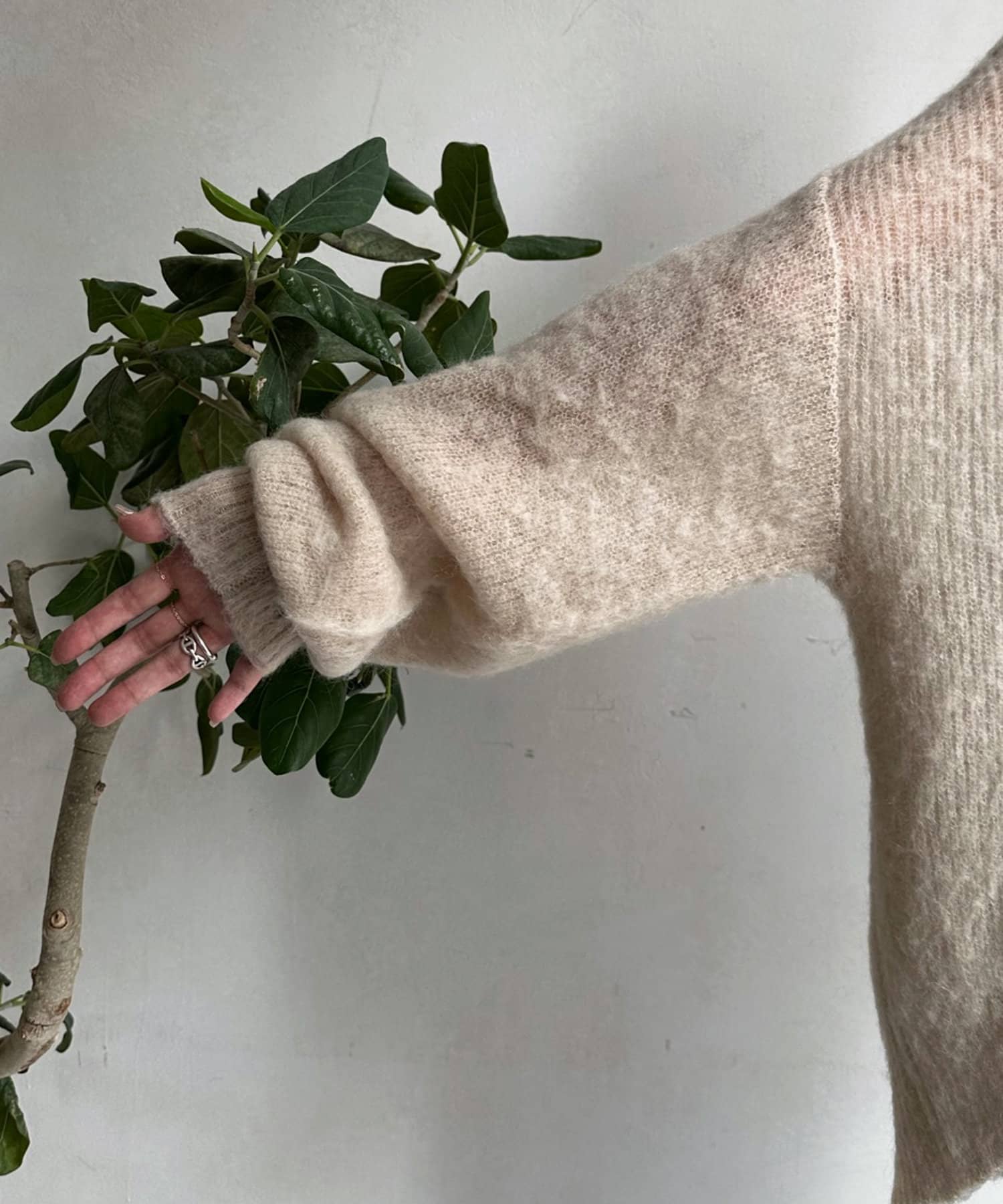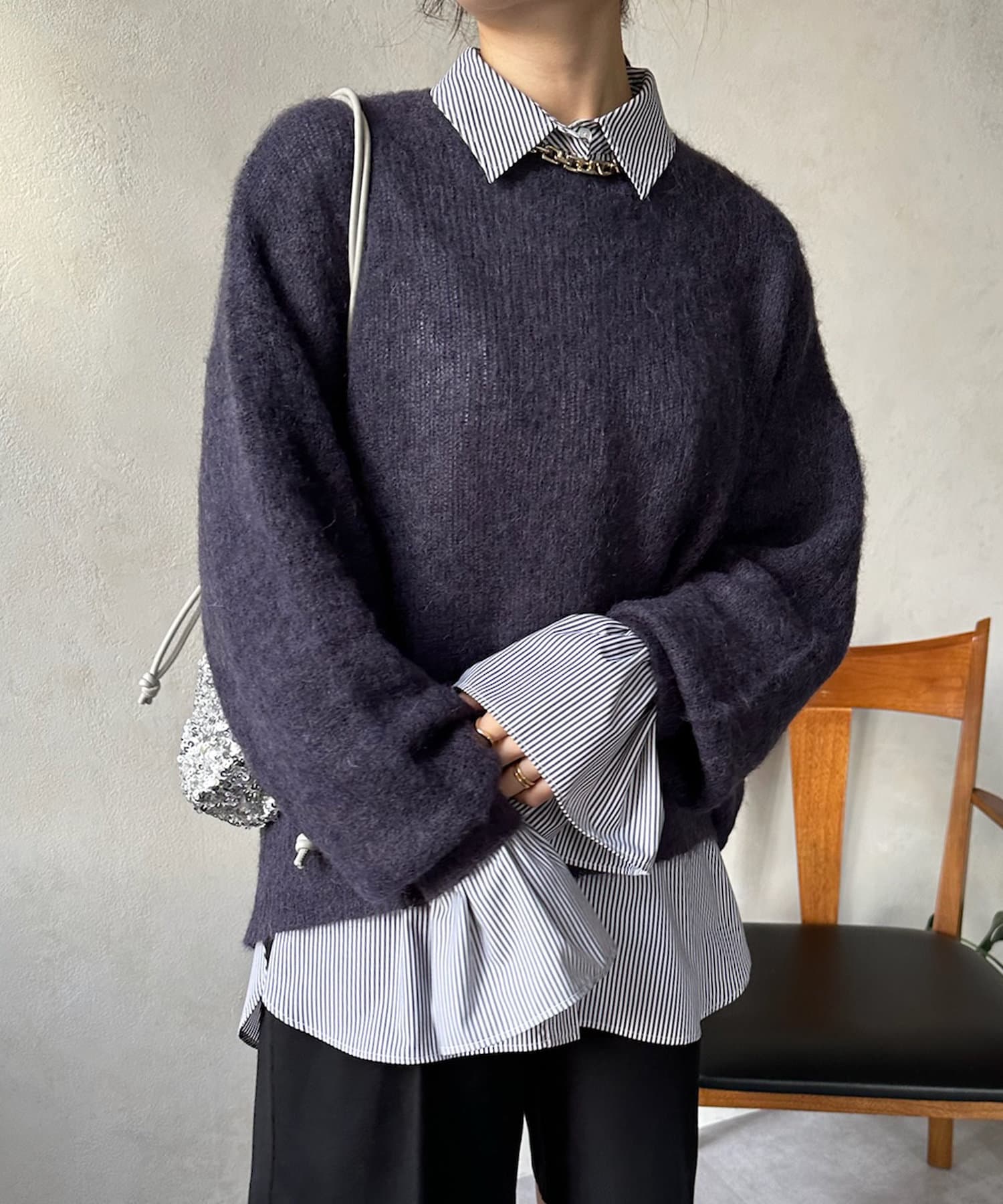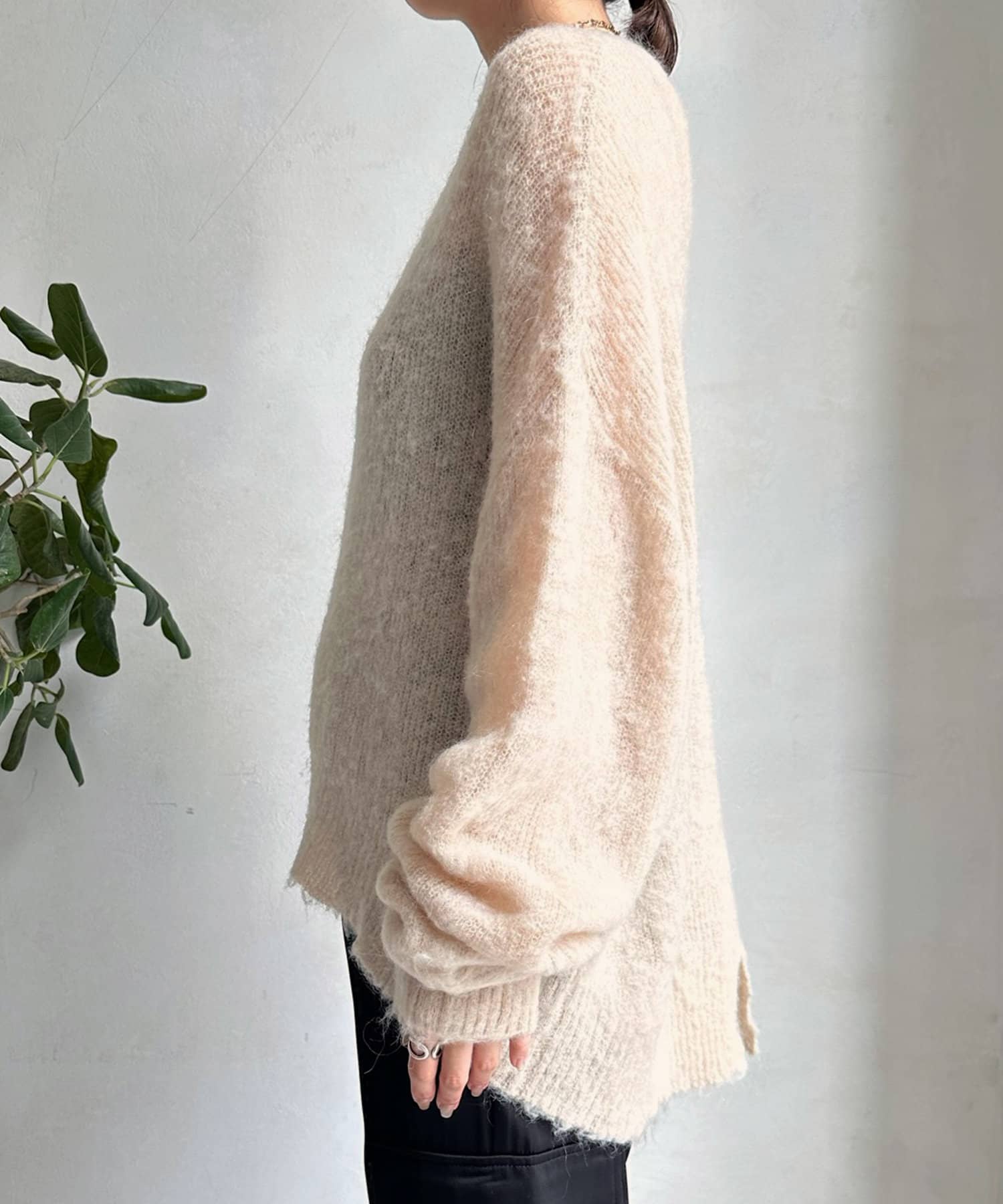 温かみのある素材感が魅力の起毛加工を施した、モヘヤのニット。