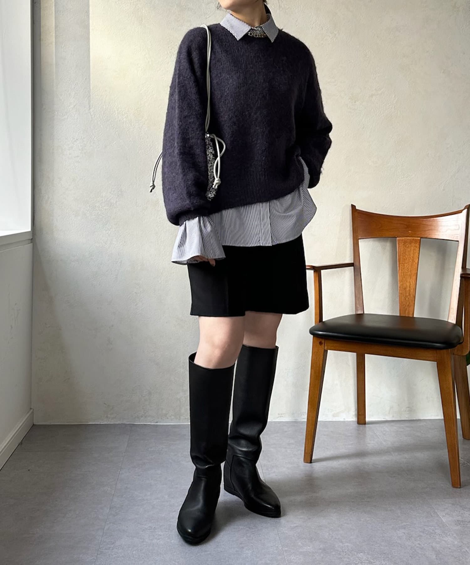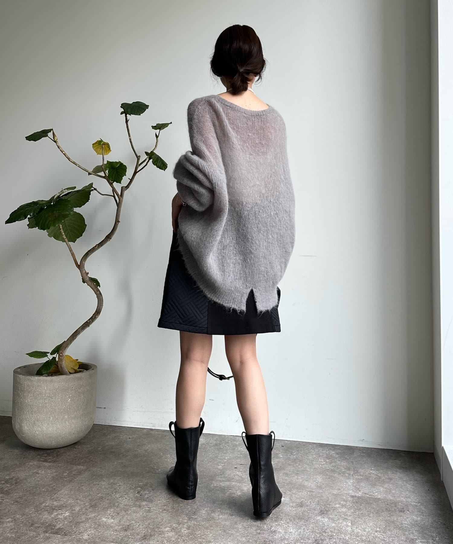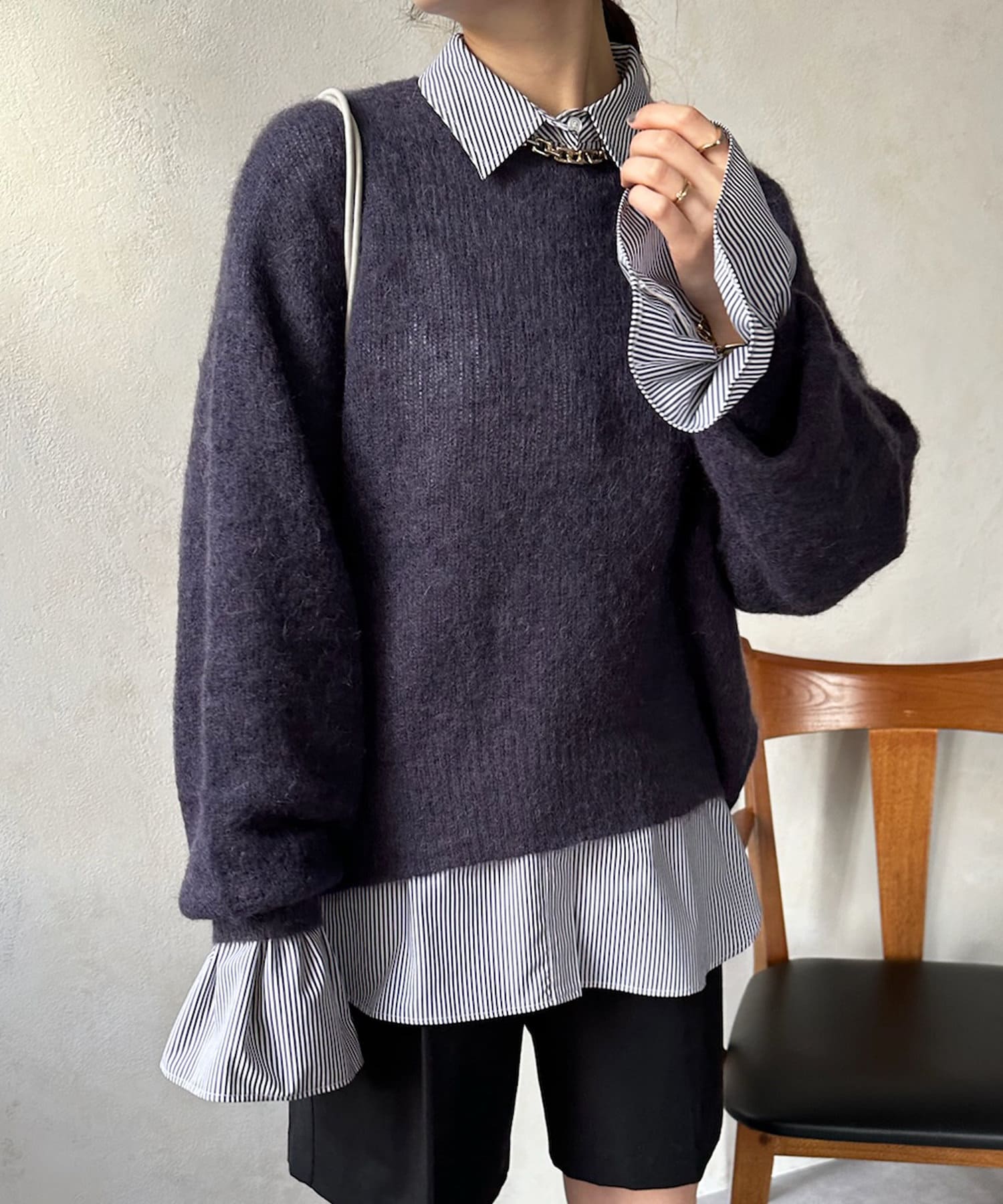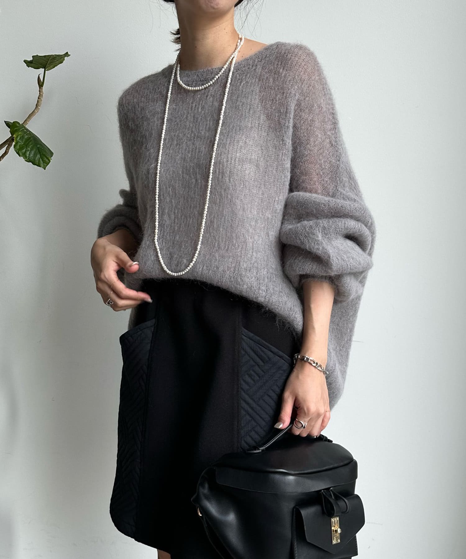 温かみのある素材感が魅力の起毛加工を施した、モヘヤのニット。