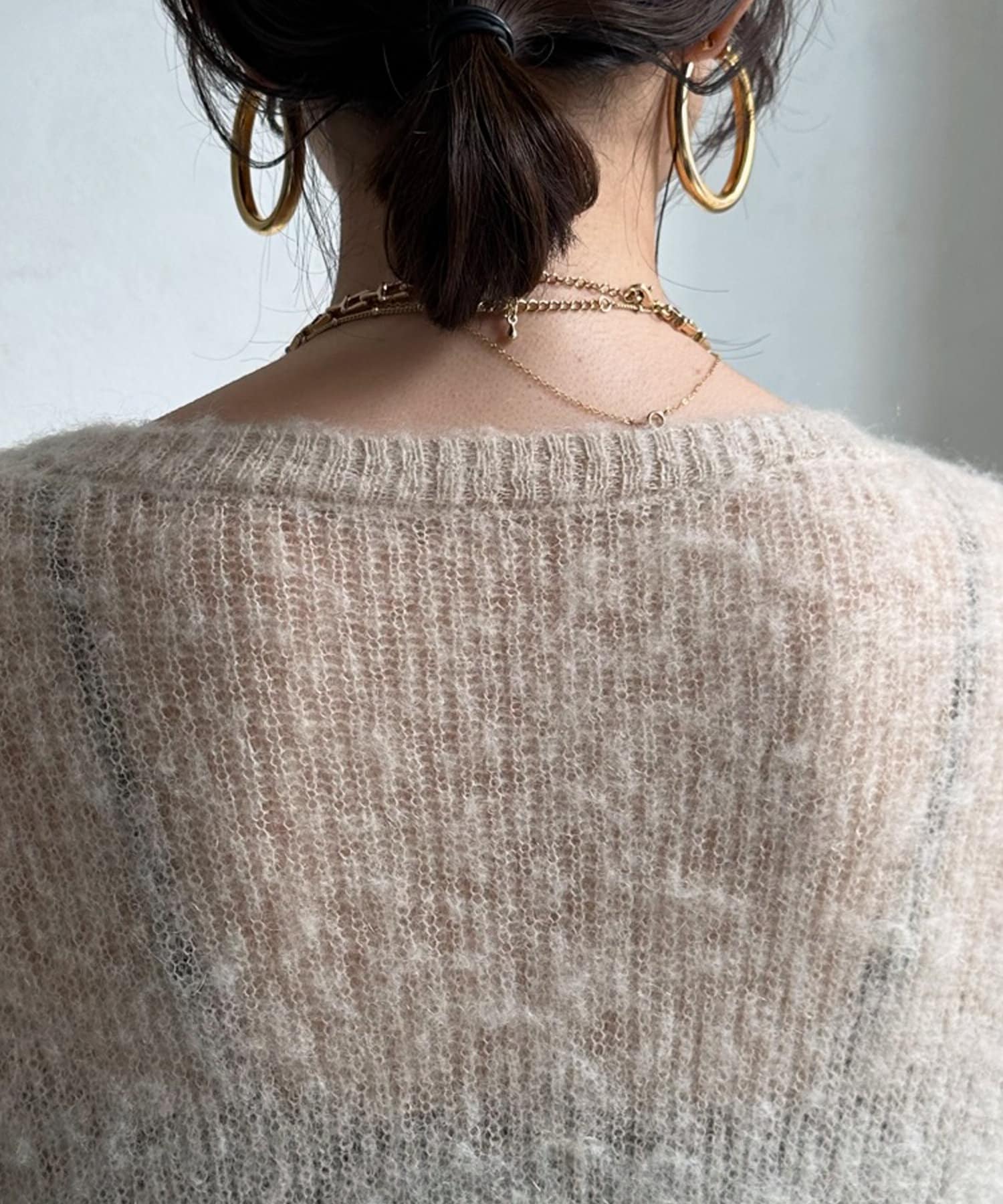 締め付け感のないネックラインに仕上げ、バックにはスリットをオン。抜け感の出る仕様に仕上げました。
