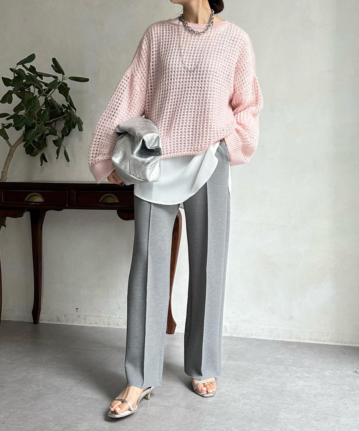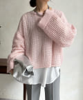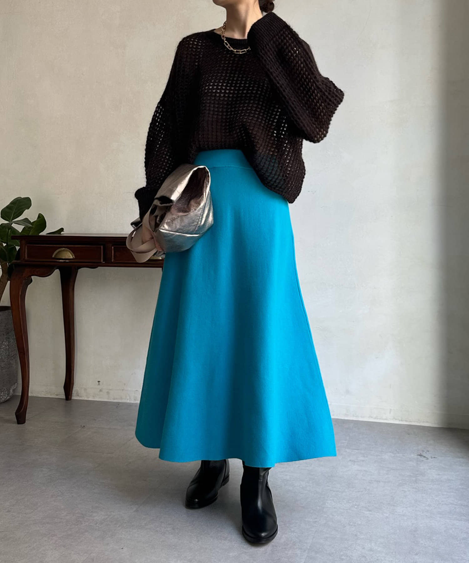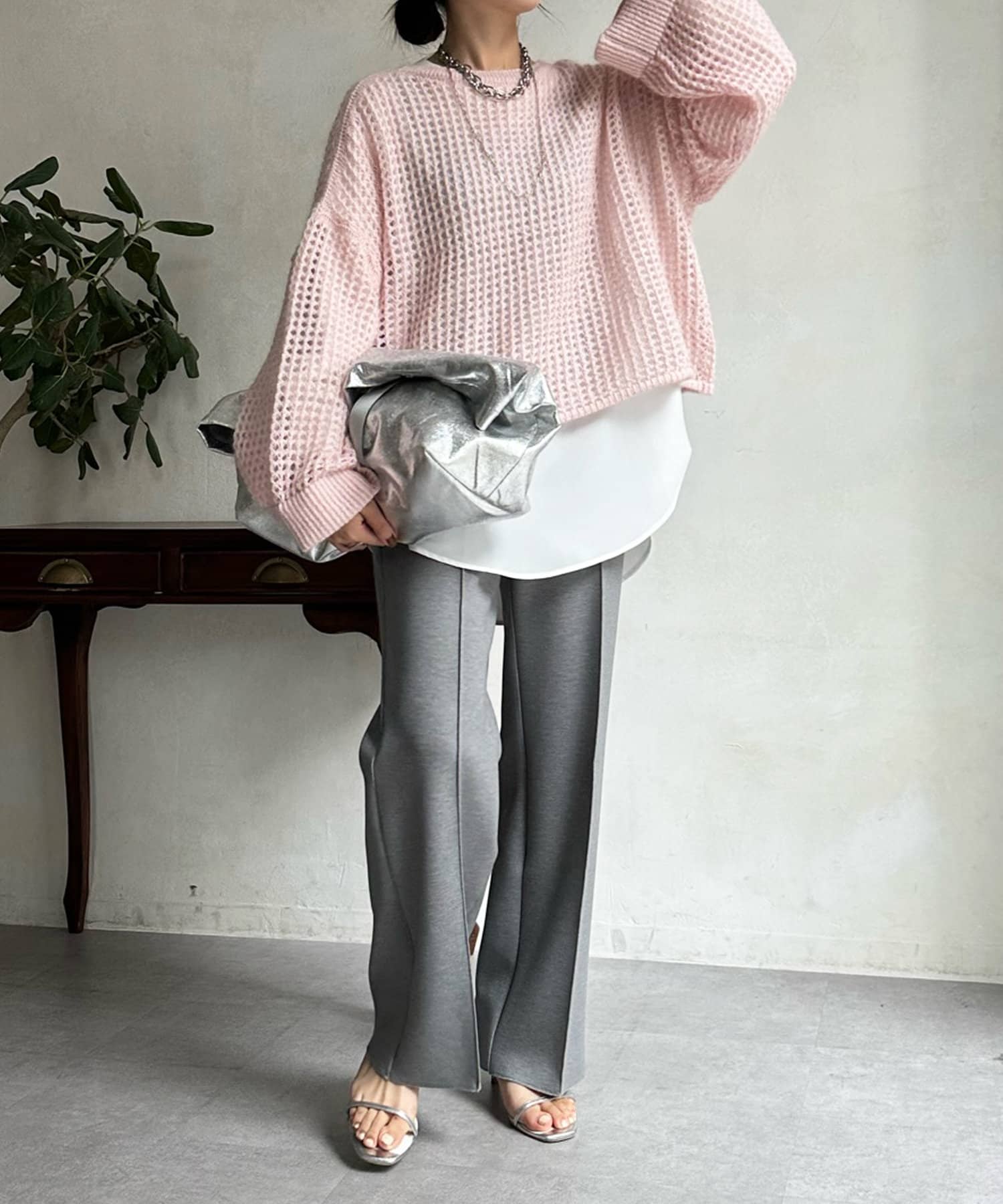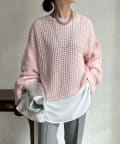粗めの編地はインナー次第でガラリと印象を変えてくれるので、様々な着こなしを楽しんでいただけますよ。