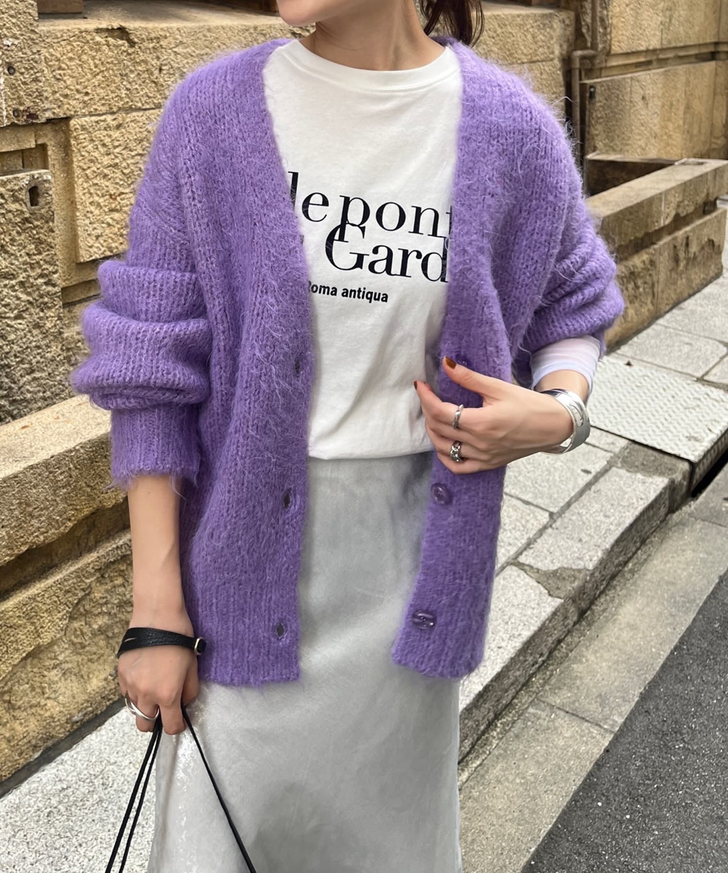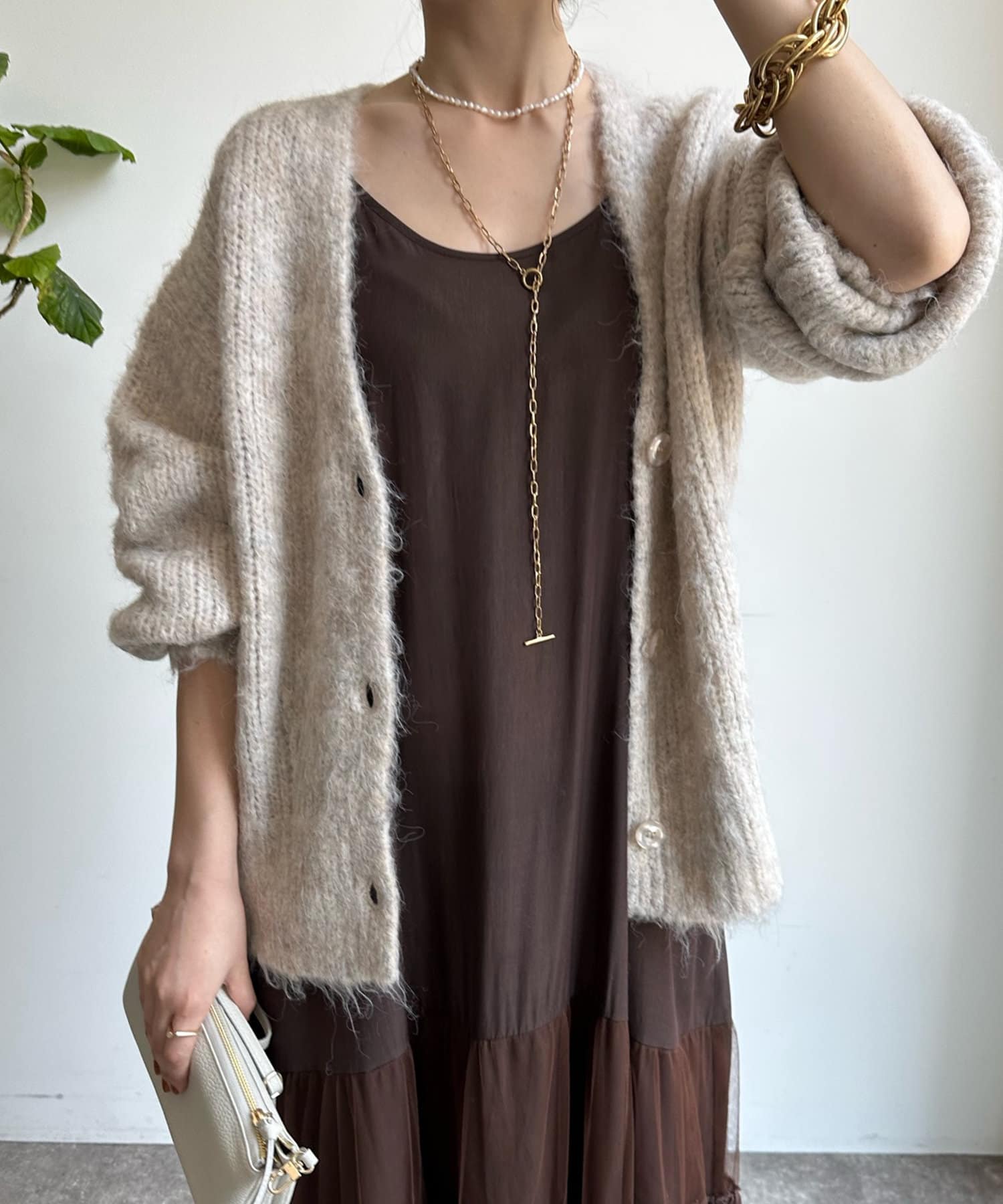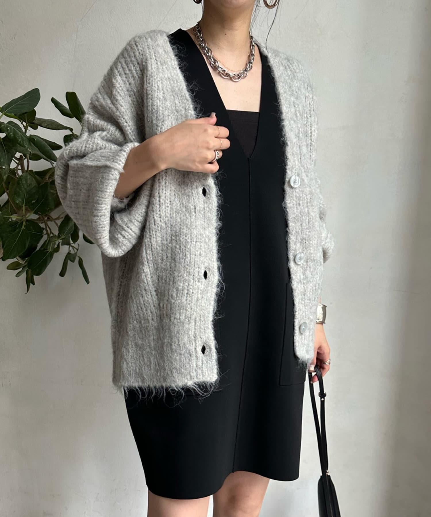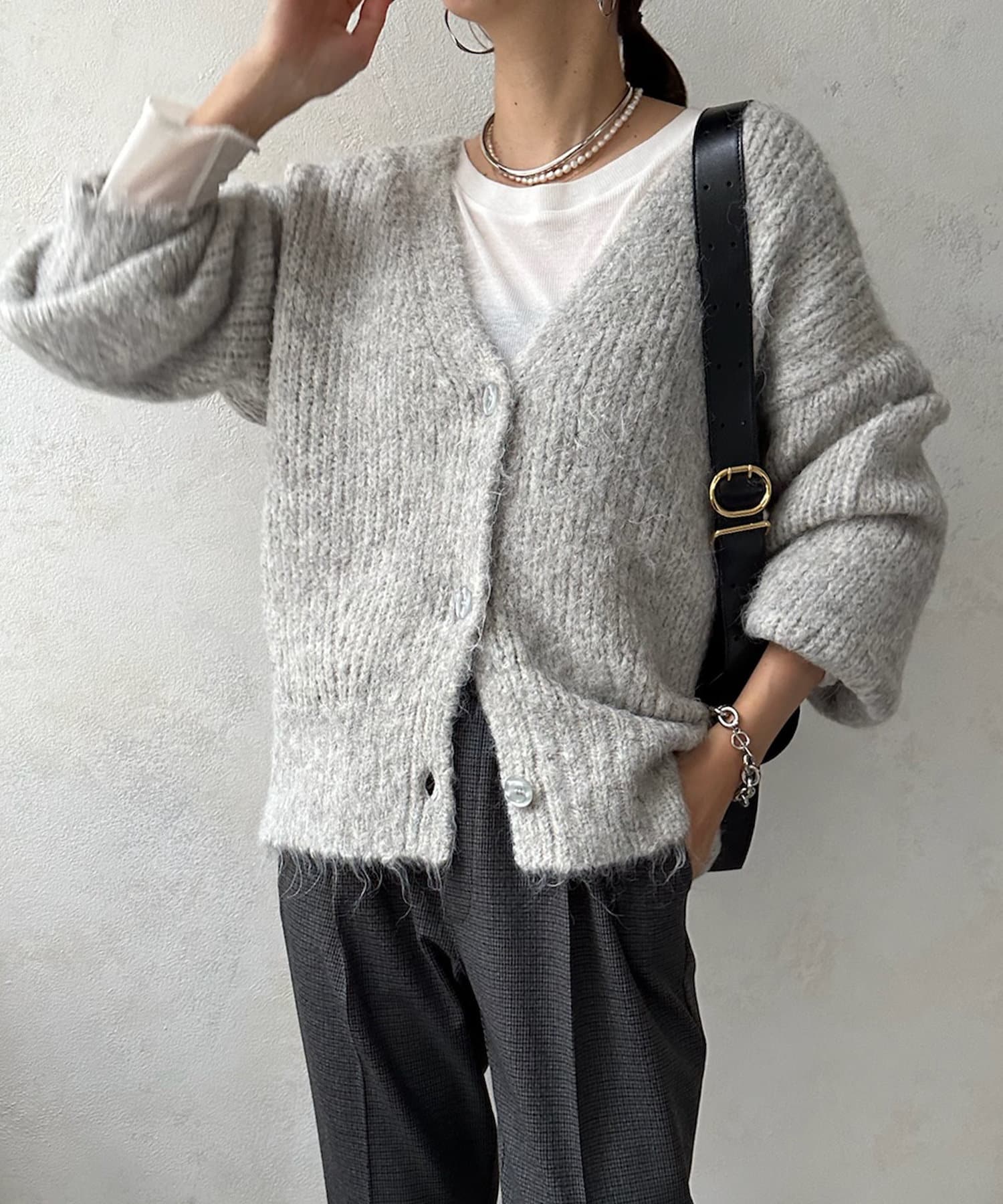 ざっくりと着られるサイジングがかわいいカーディガン。