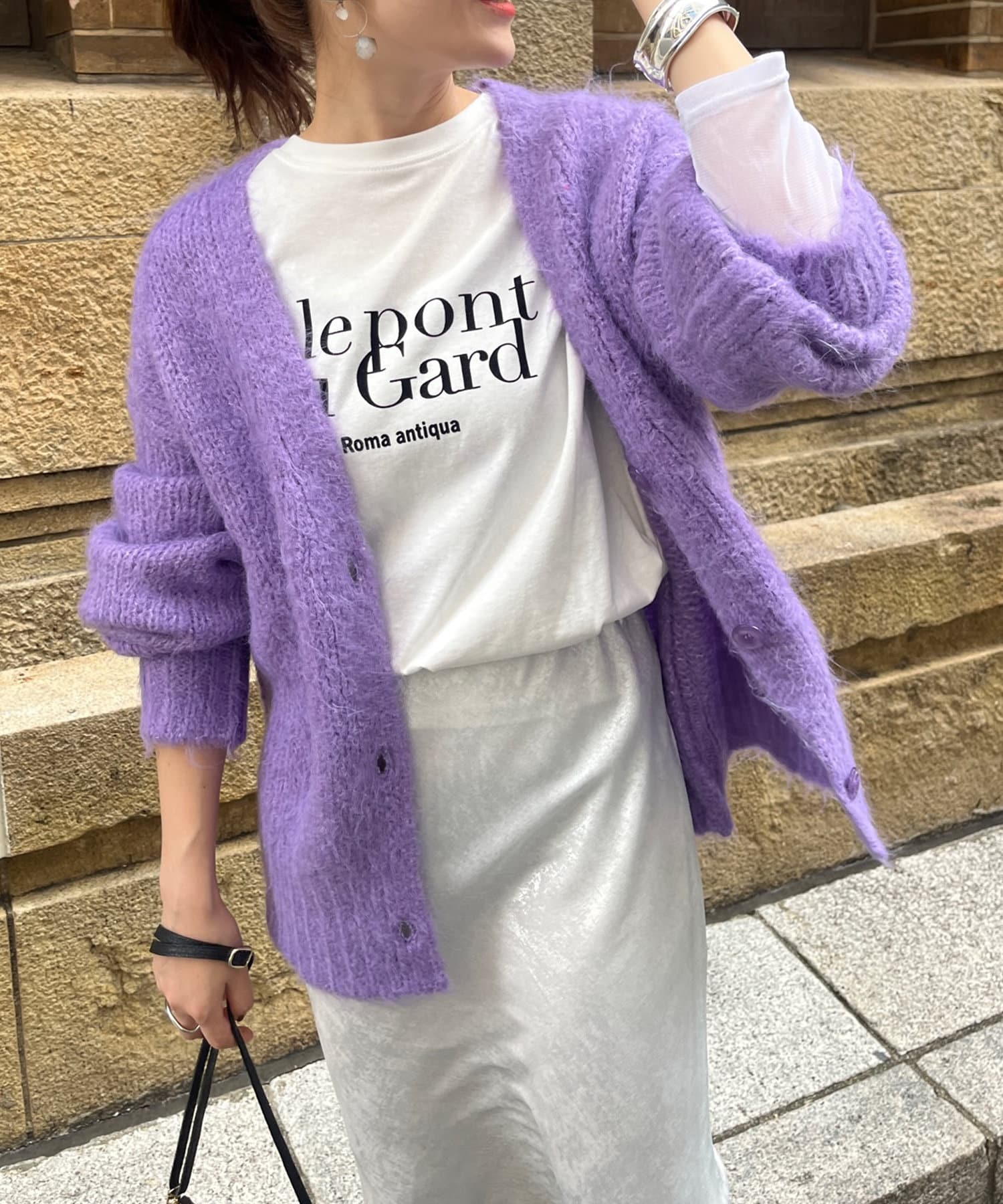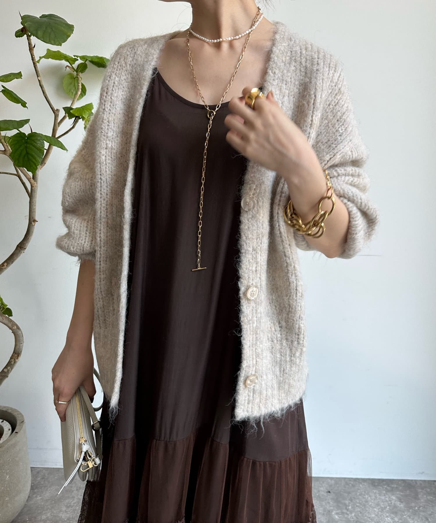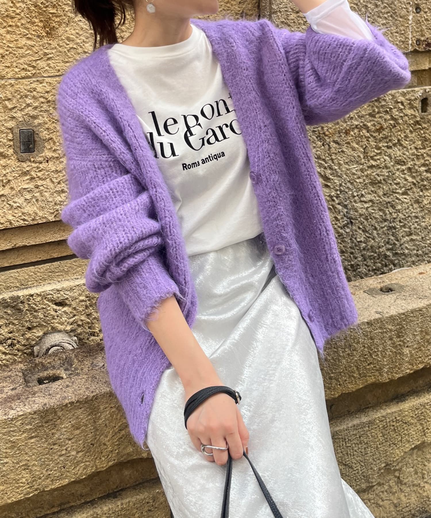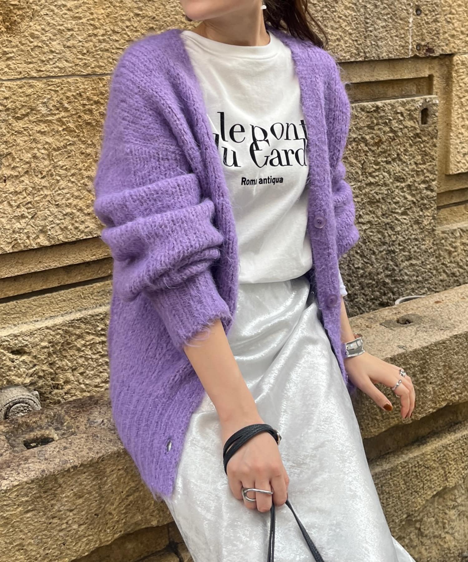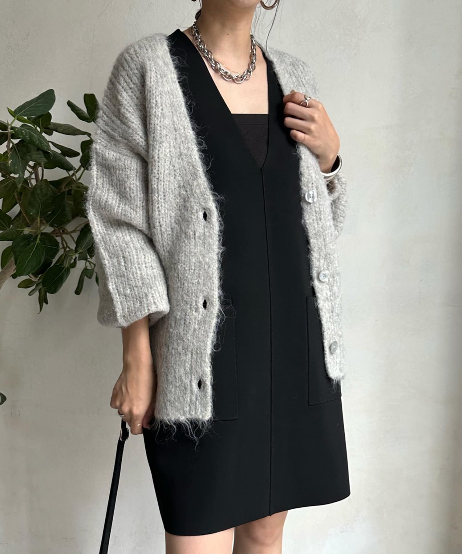 ざっくりと着られるサイジングがかわいいカーディガン。