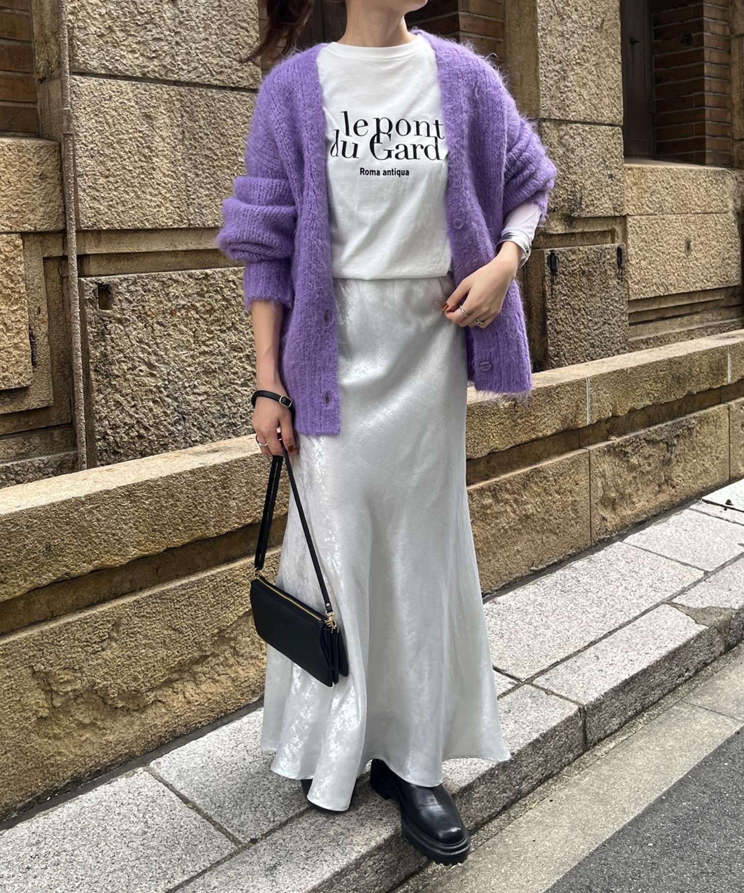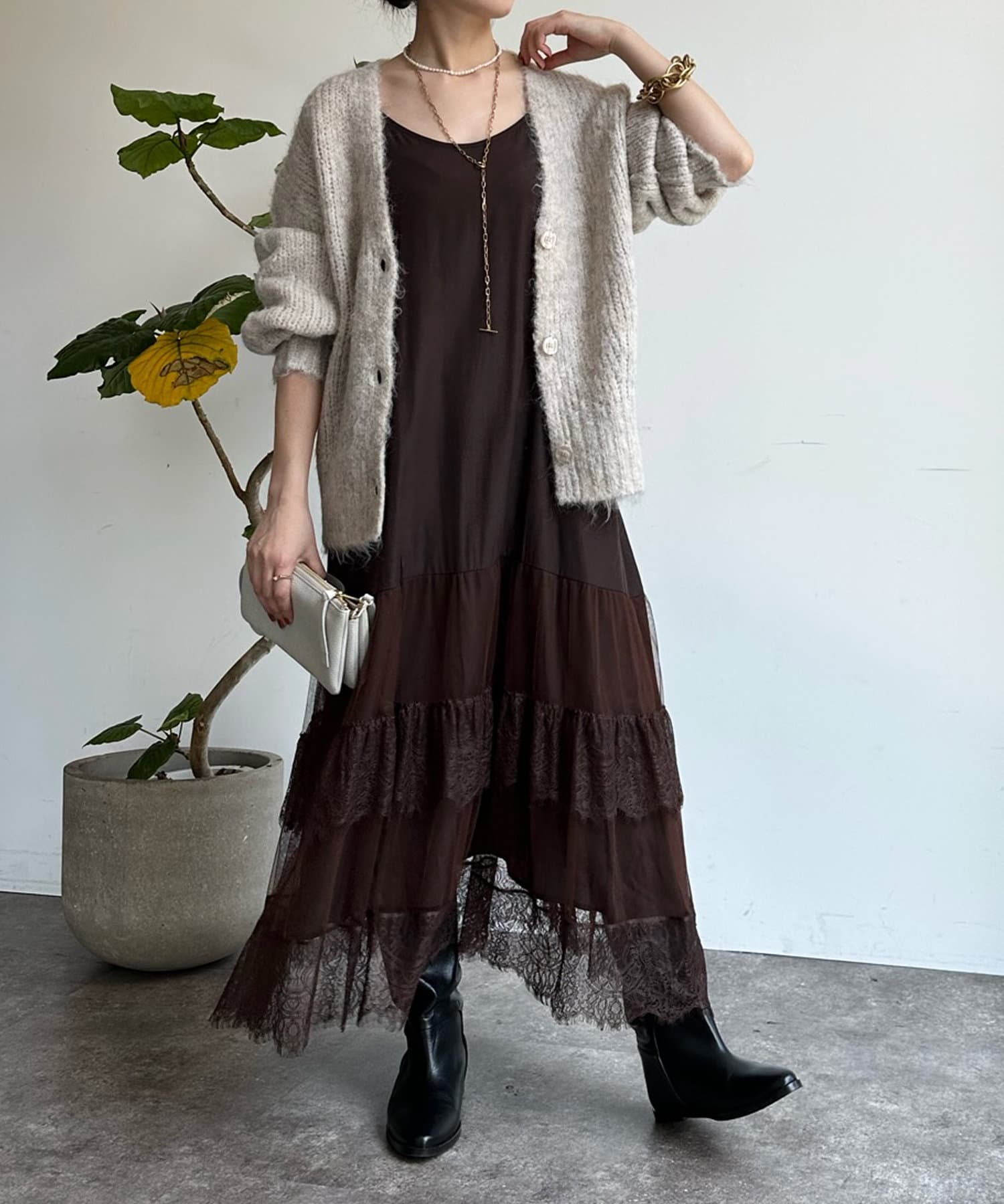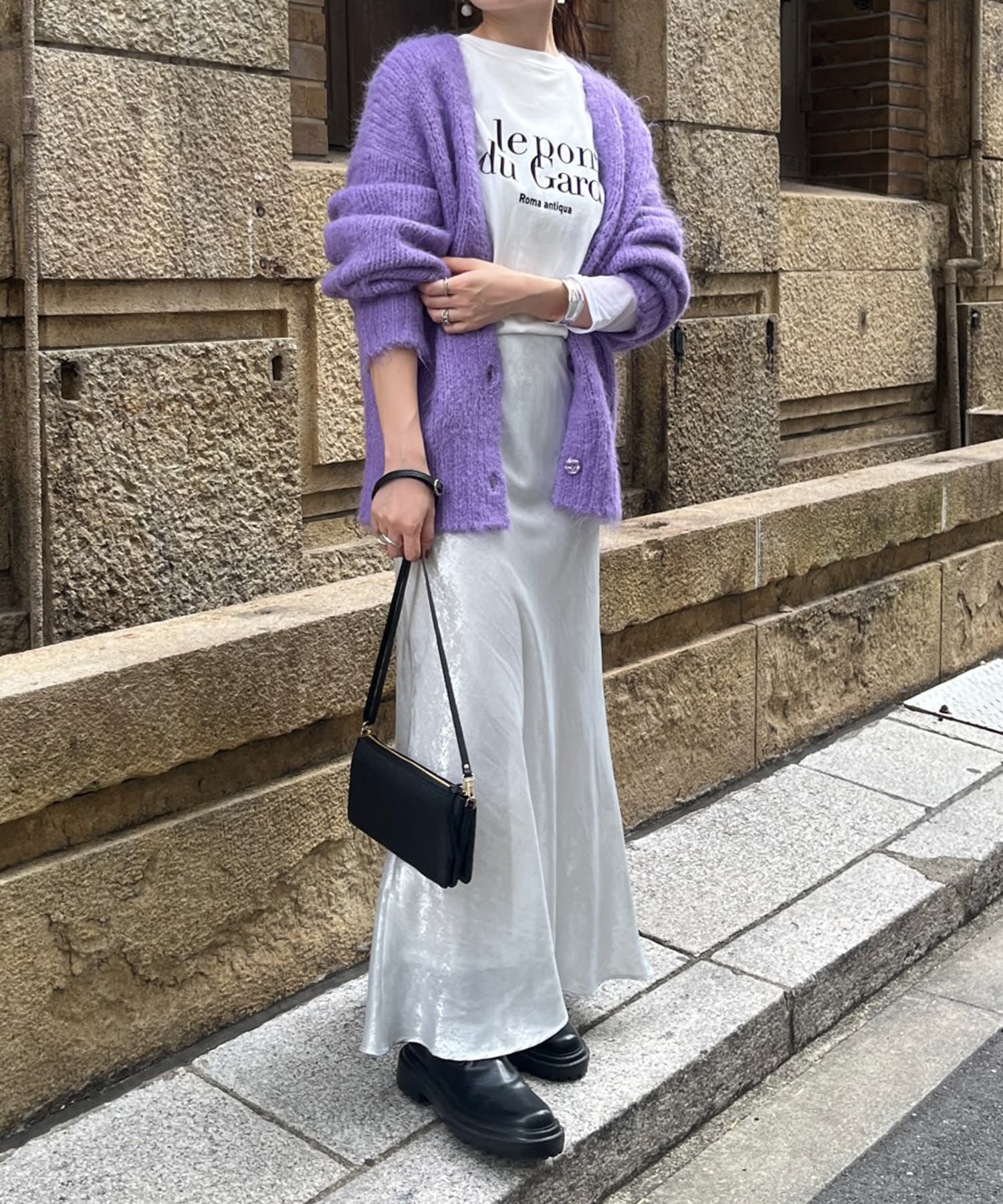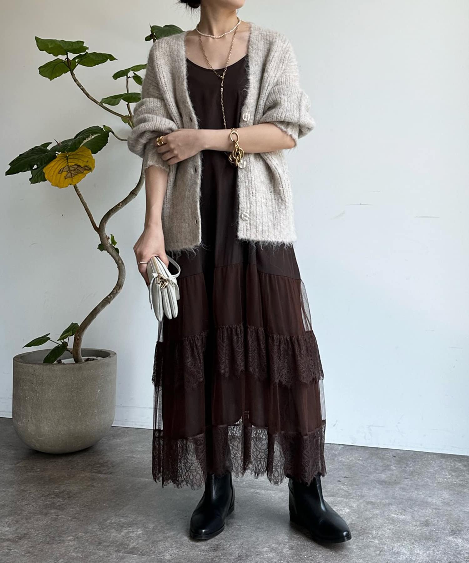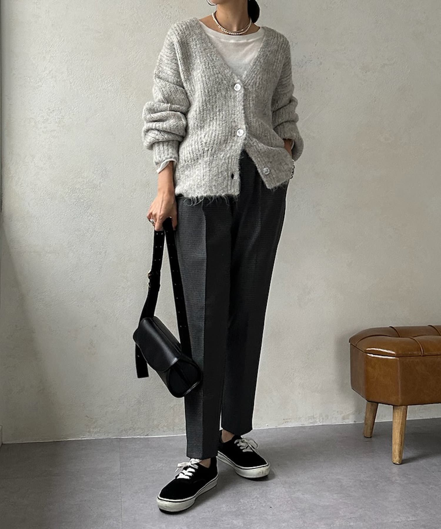 ボタンを閉じても、開けて羽織としても着られるカーディガンは1着持っておくととっても便利。
