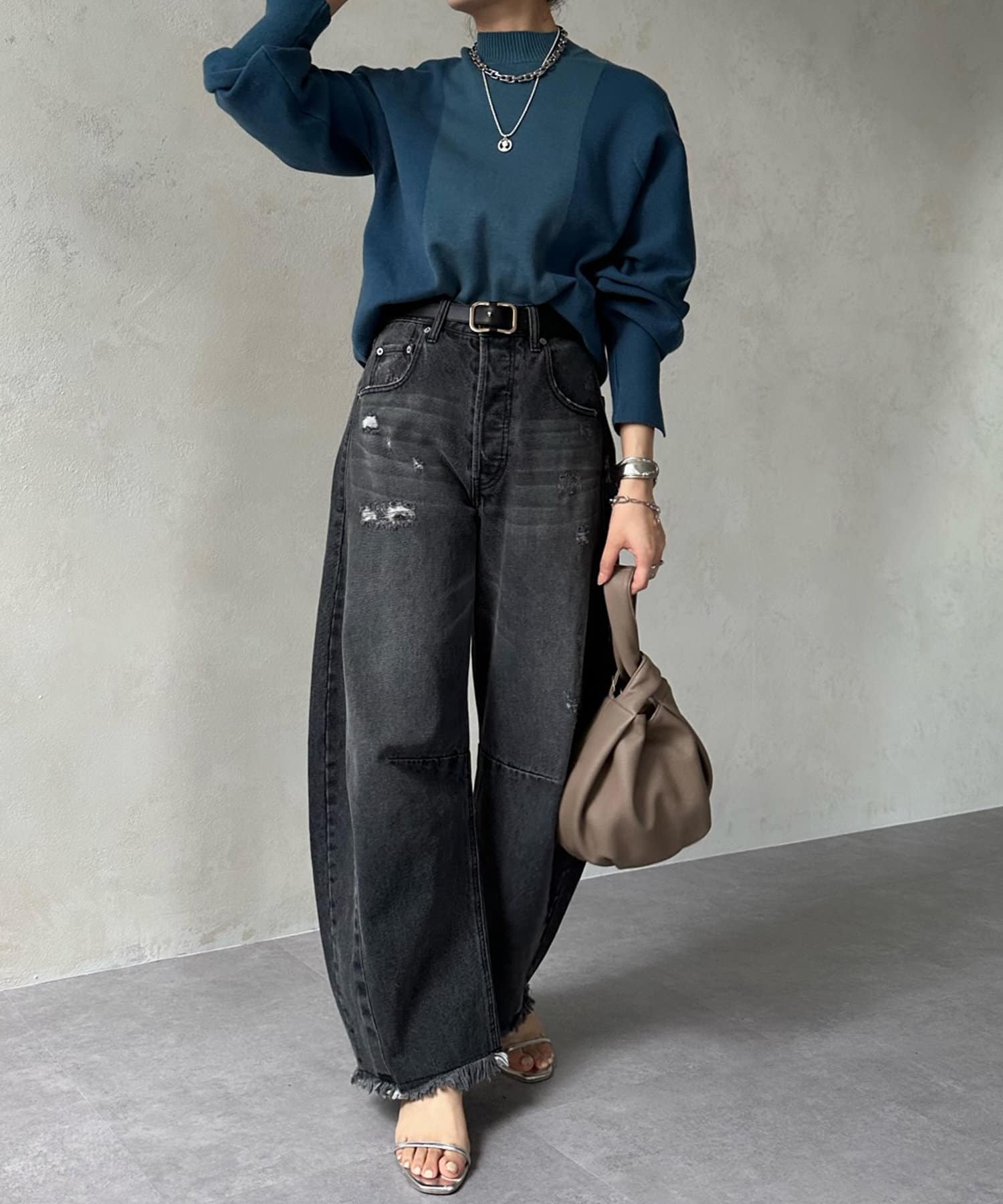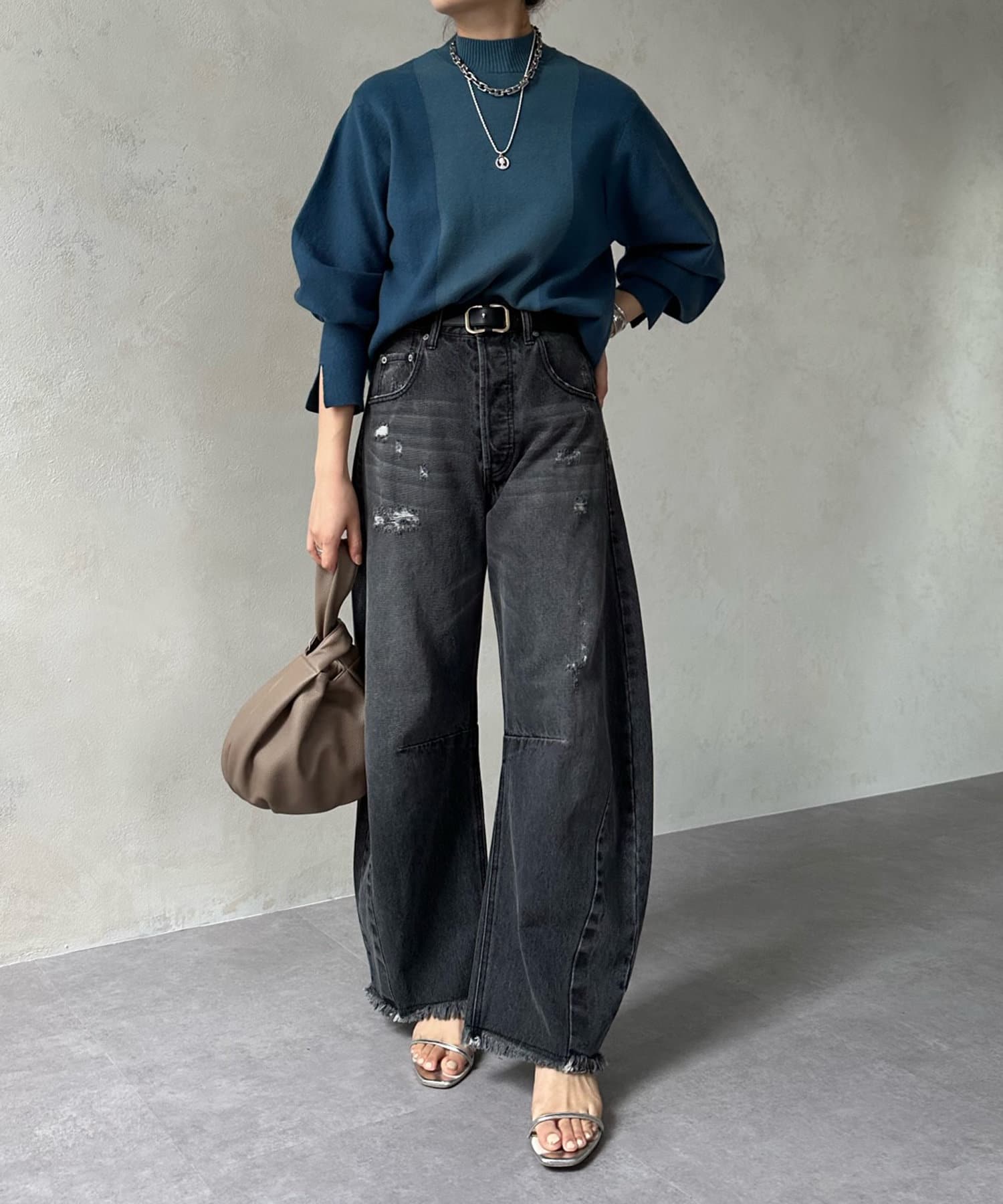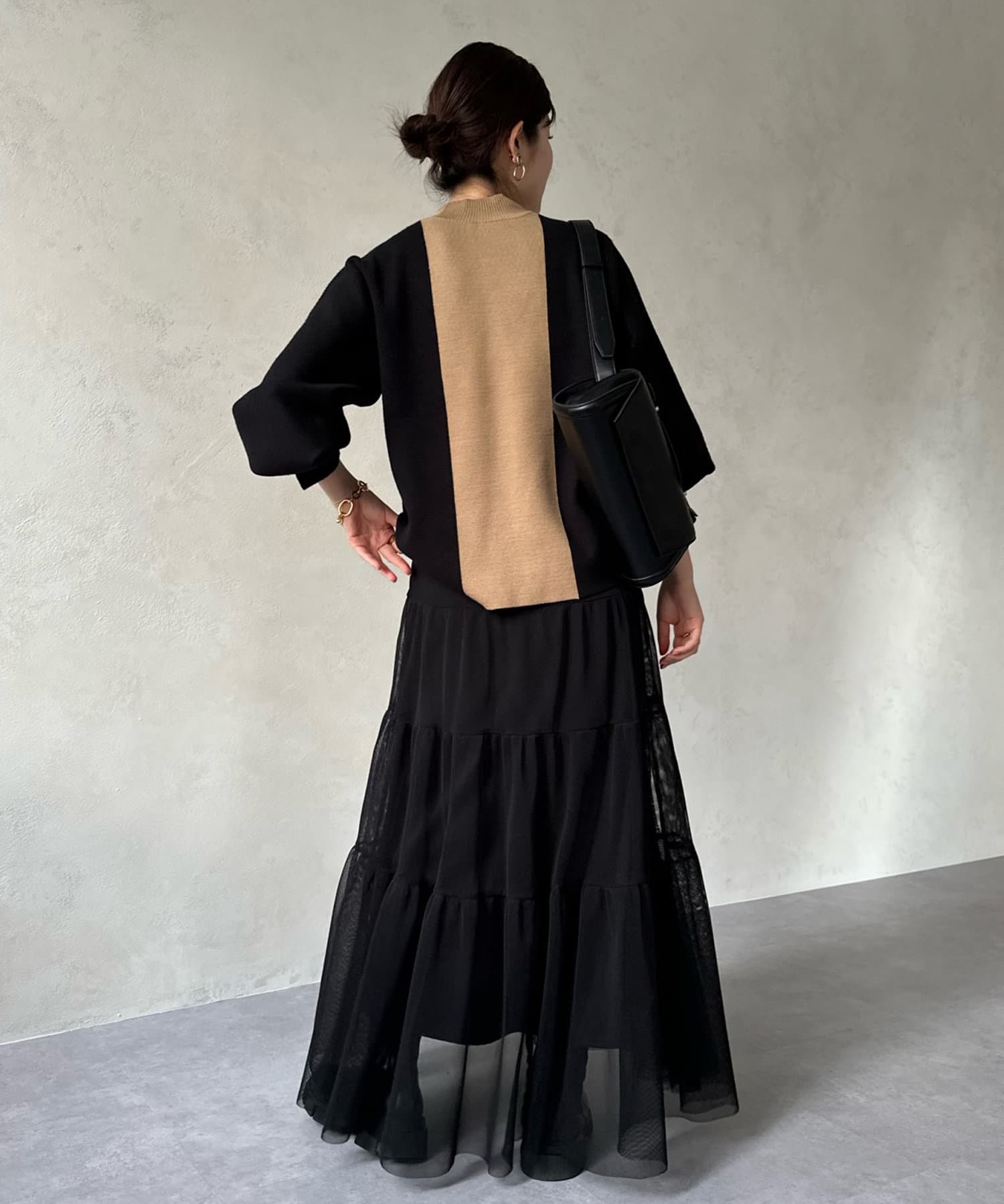 袖口のスリットがよりフェミニンな印象をプラスしてくれています。