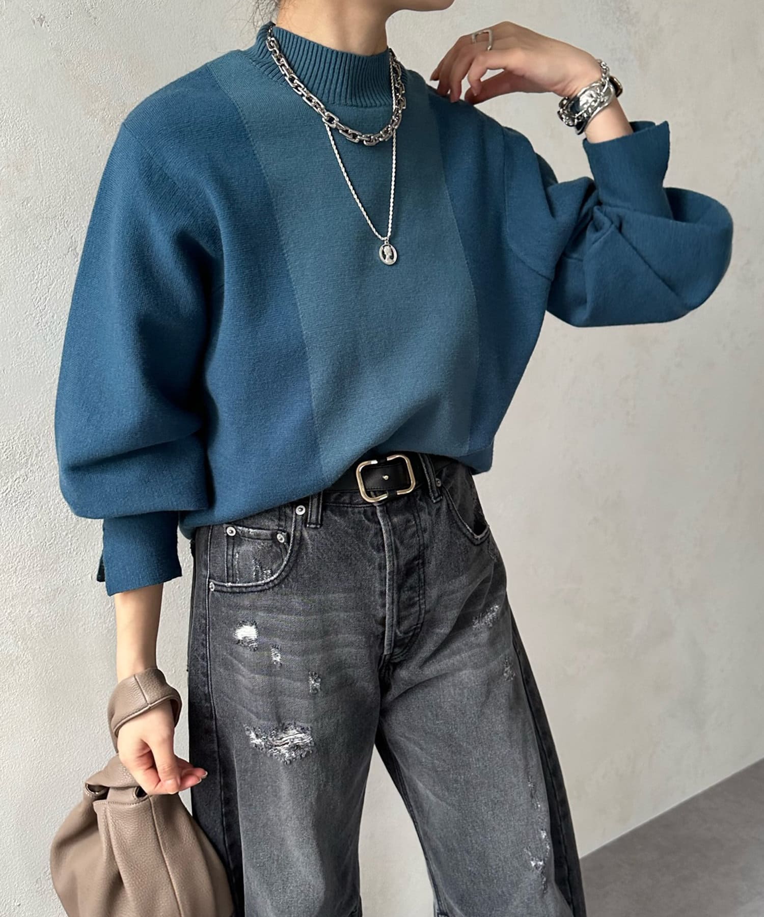 袖は丸みのあるシルエットになっており、きゅっと締まっている袖口がさらに立体感を出してくれています。