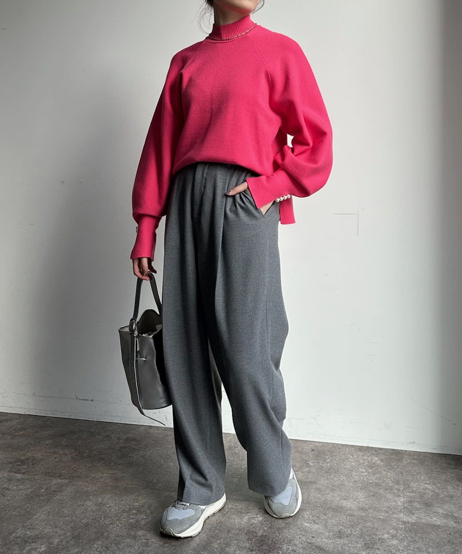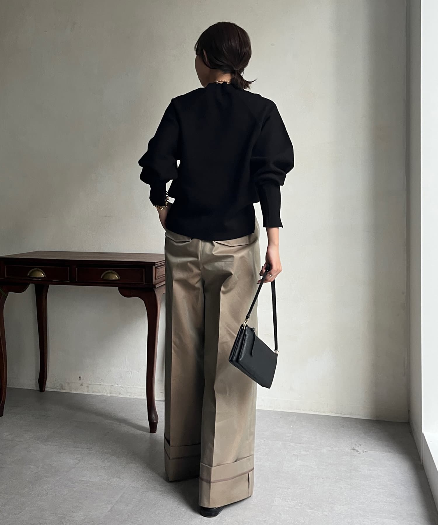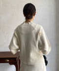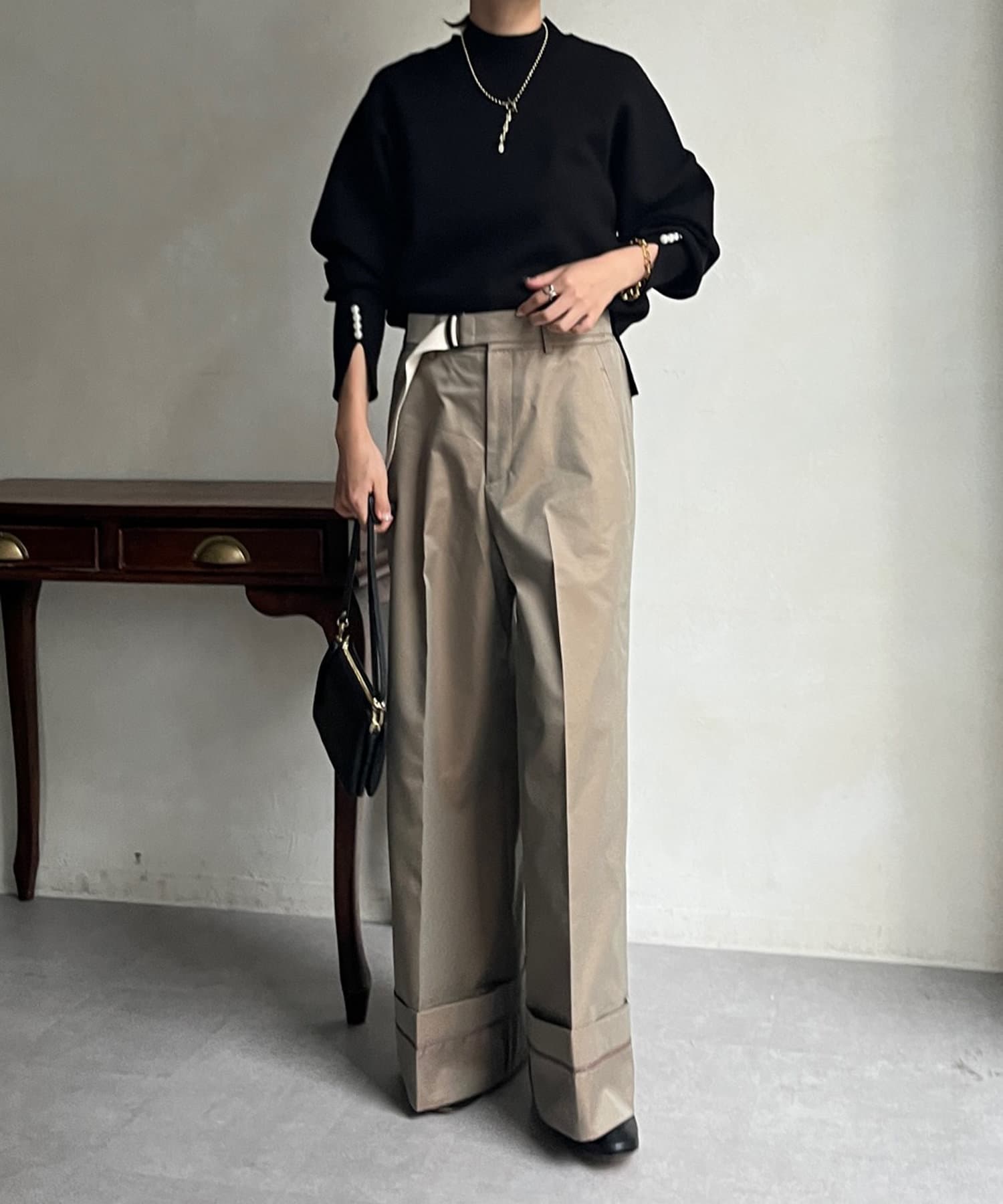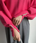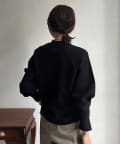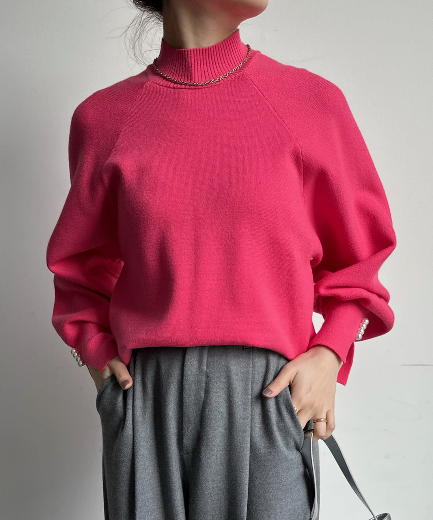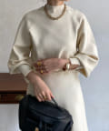 首元が詰まっているデザインと袖のパールとスリットがフェミニンな女性感をだしてくれます。