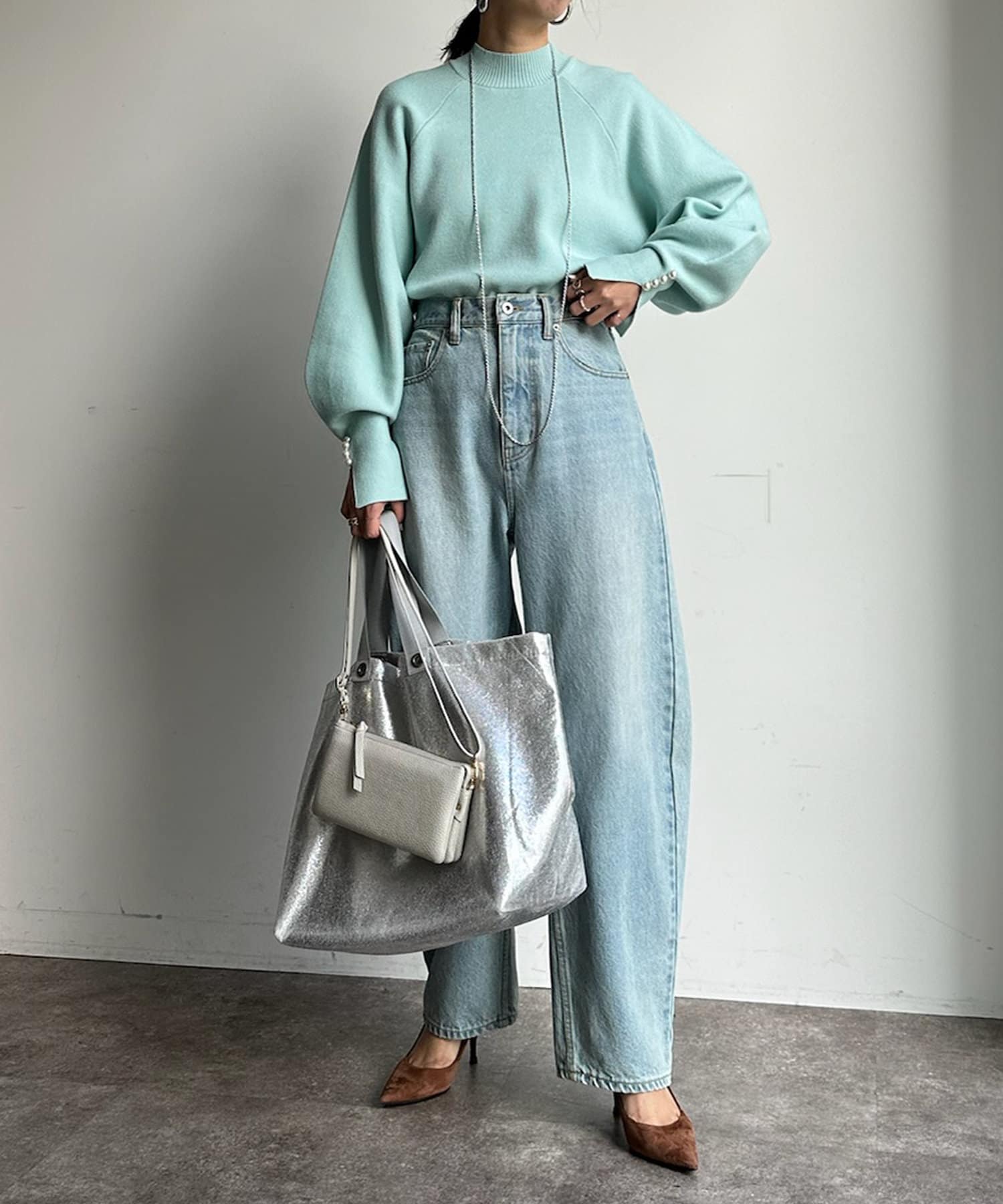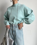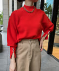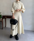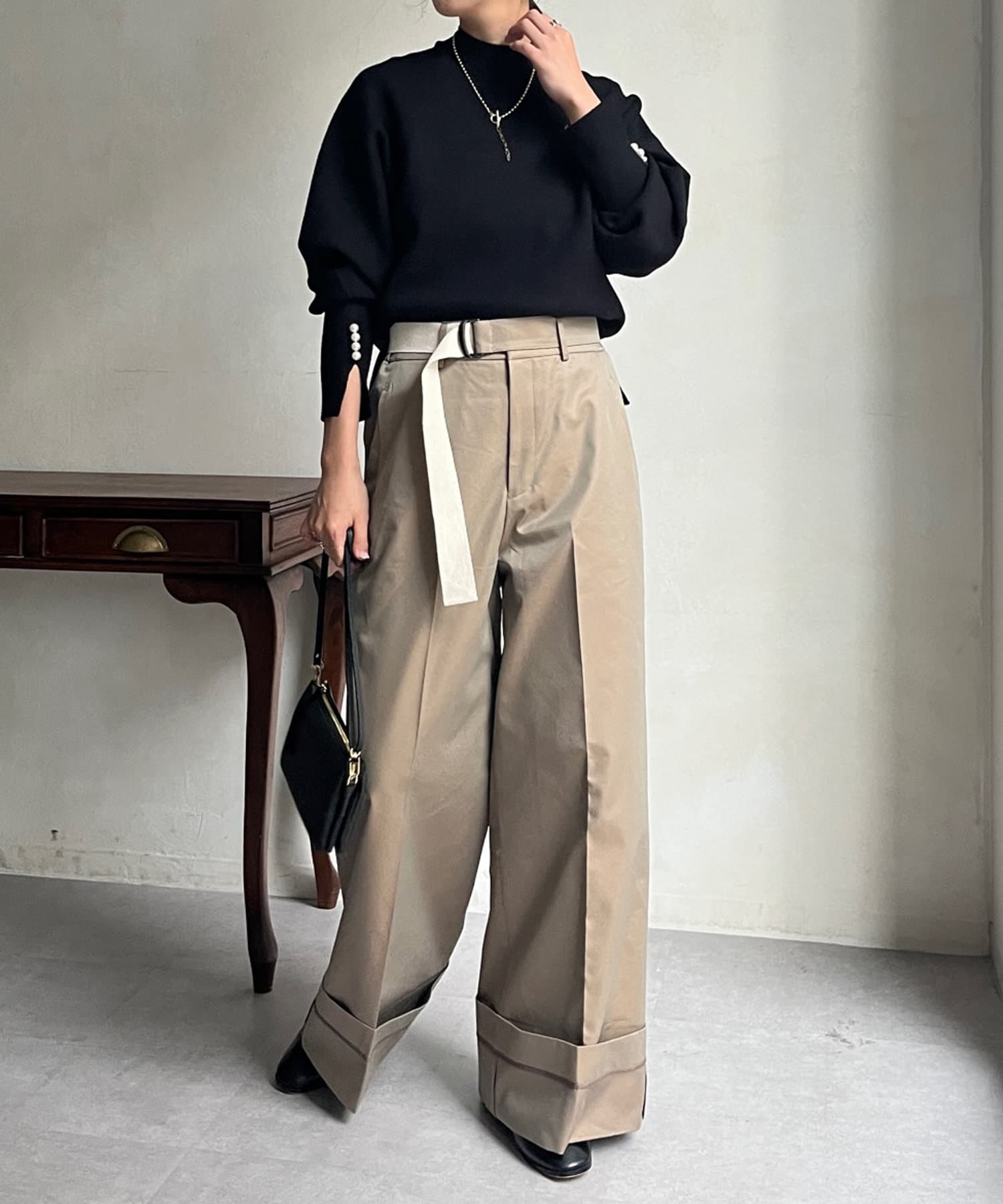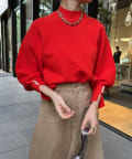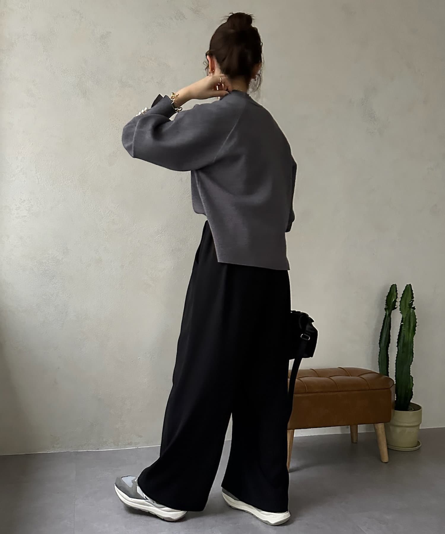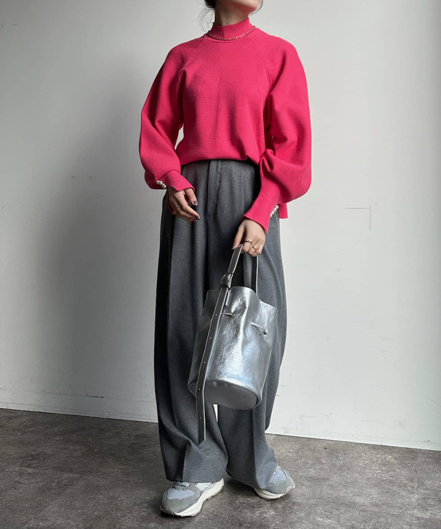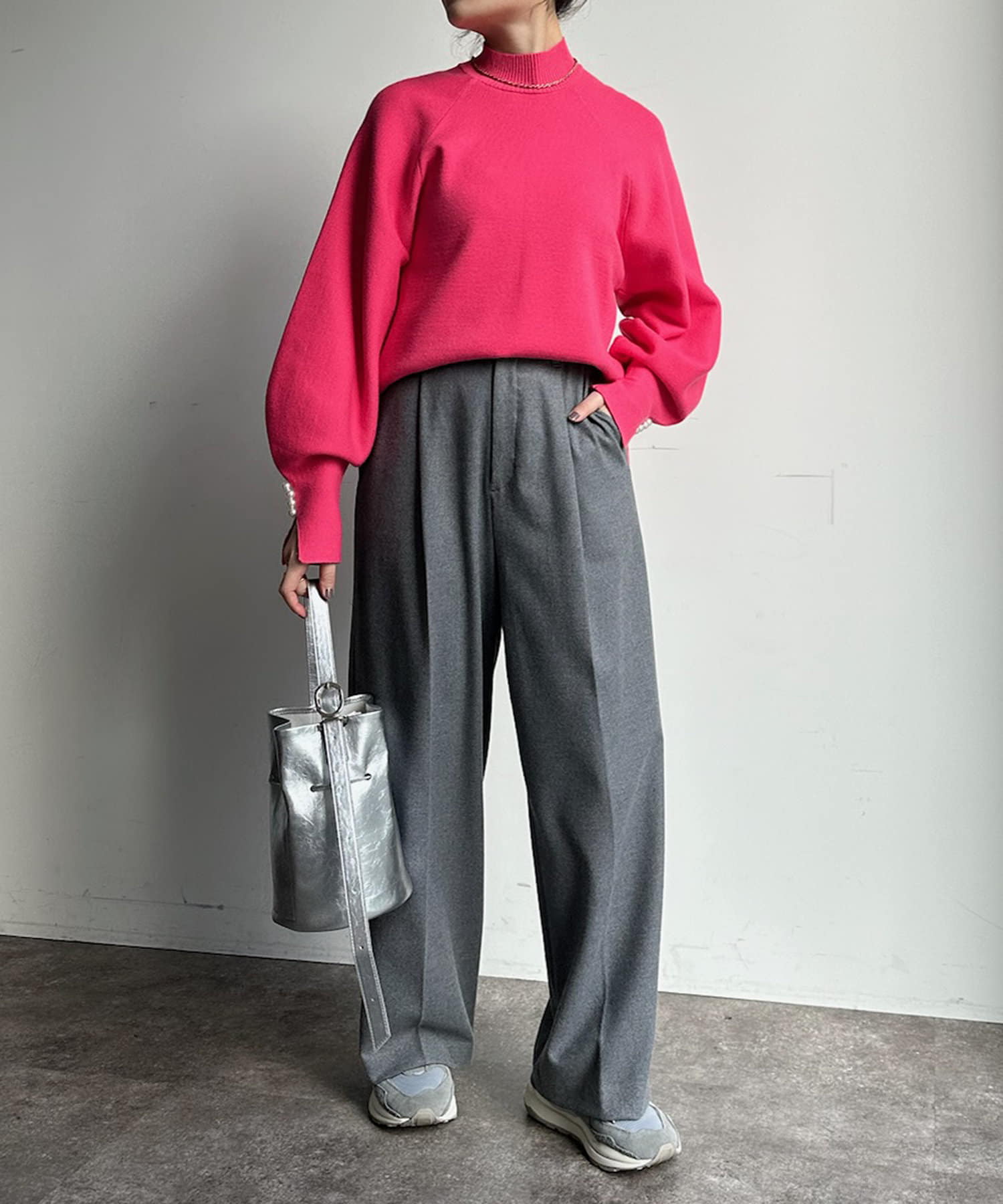 首元が詰まっているデザインと袖のパールとスリットがフェミニンな女性感をだしてくれます。