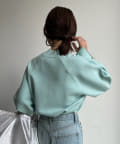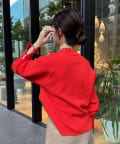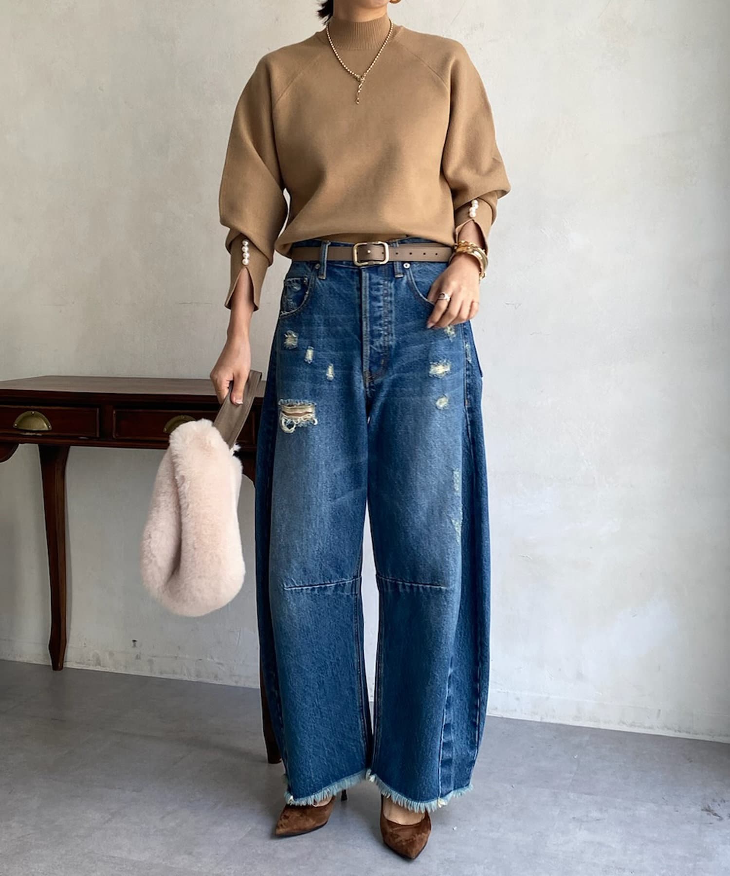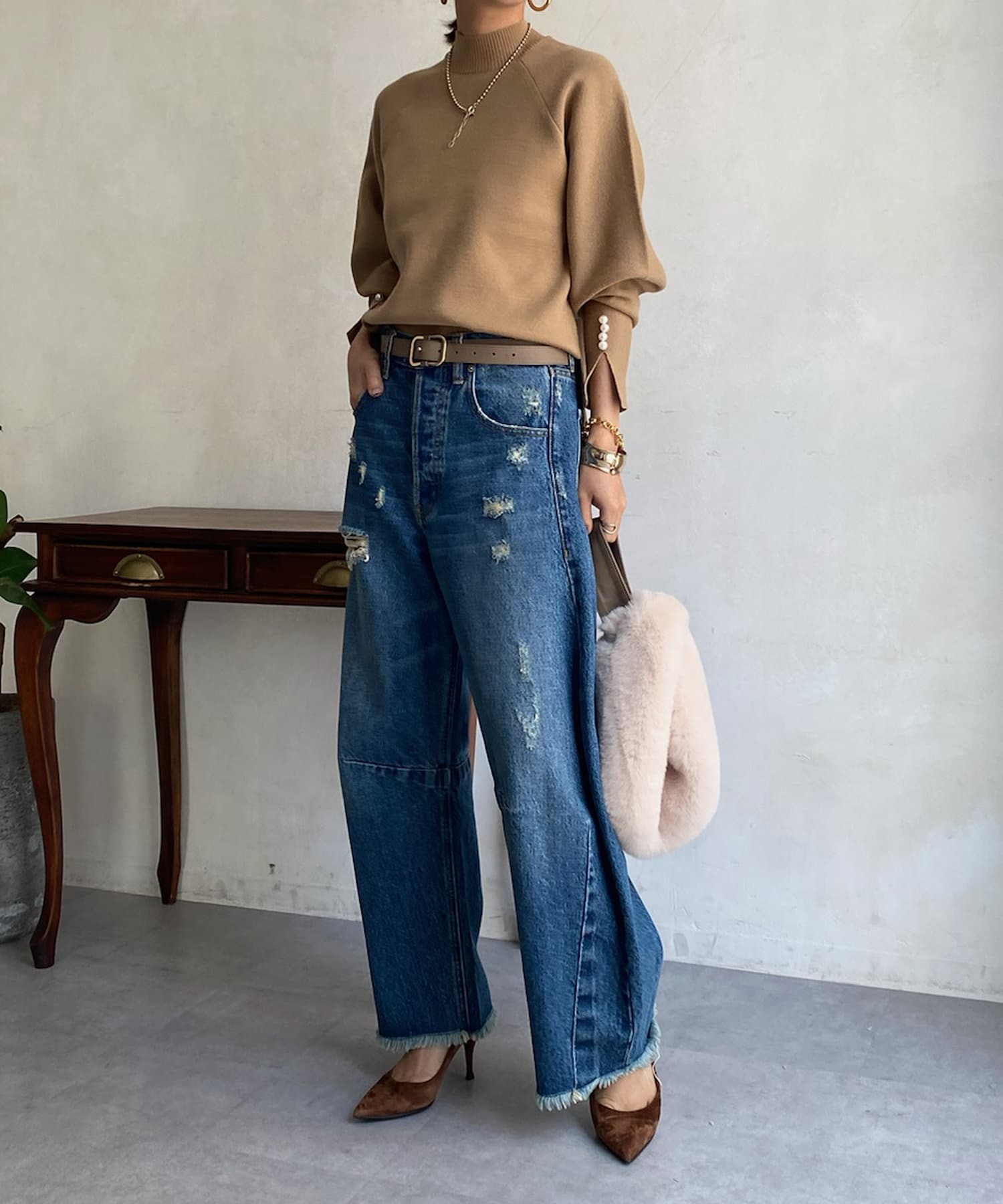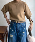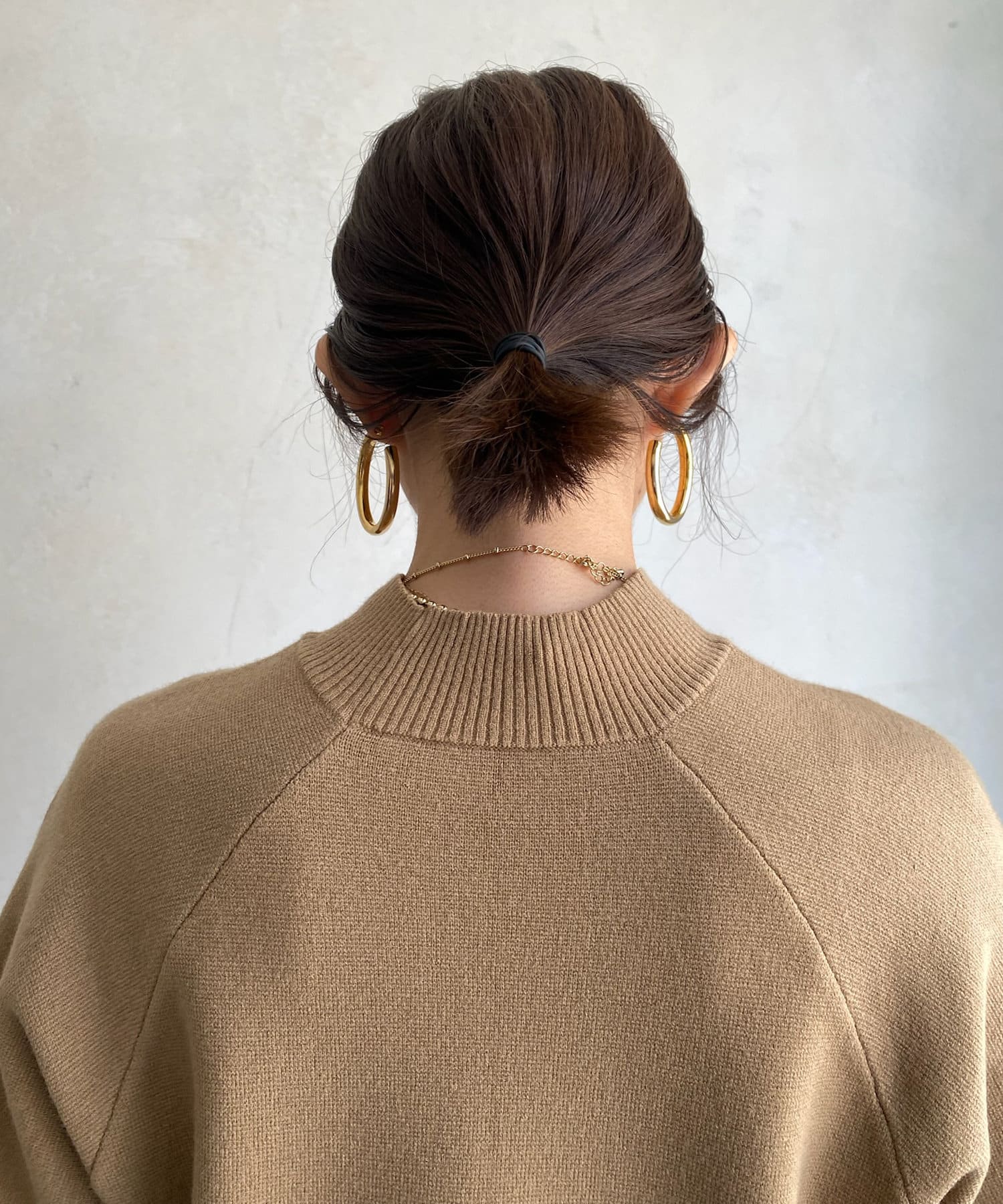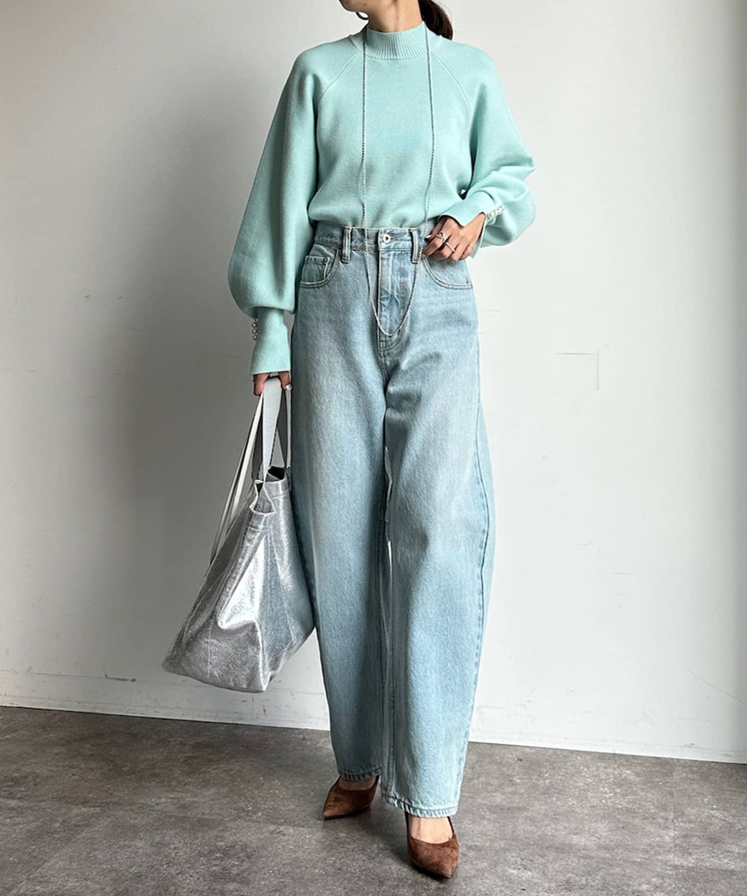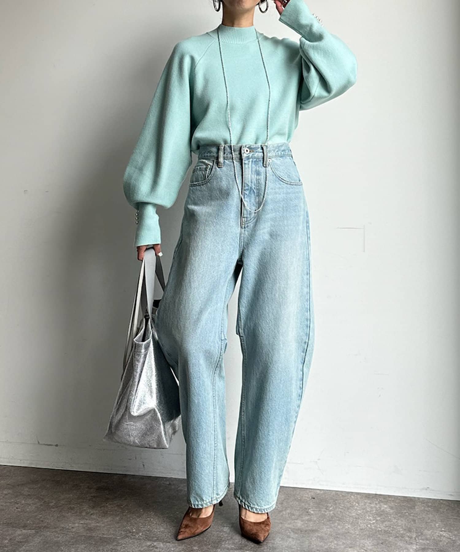 首元が詰まっているデザインと袖のパールとスリットがフェミニンな女性感をだしてくれます。