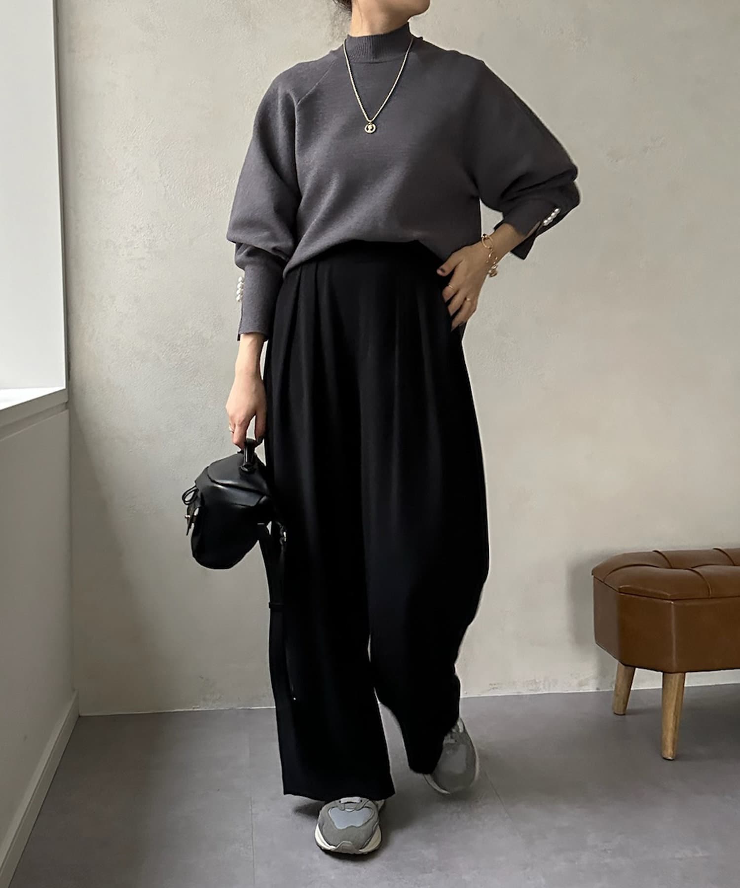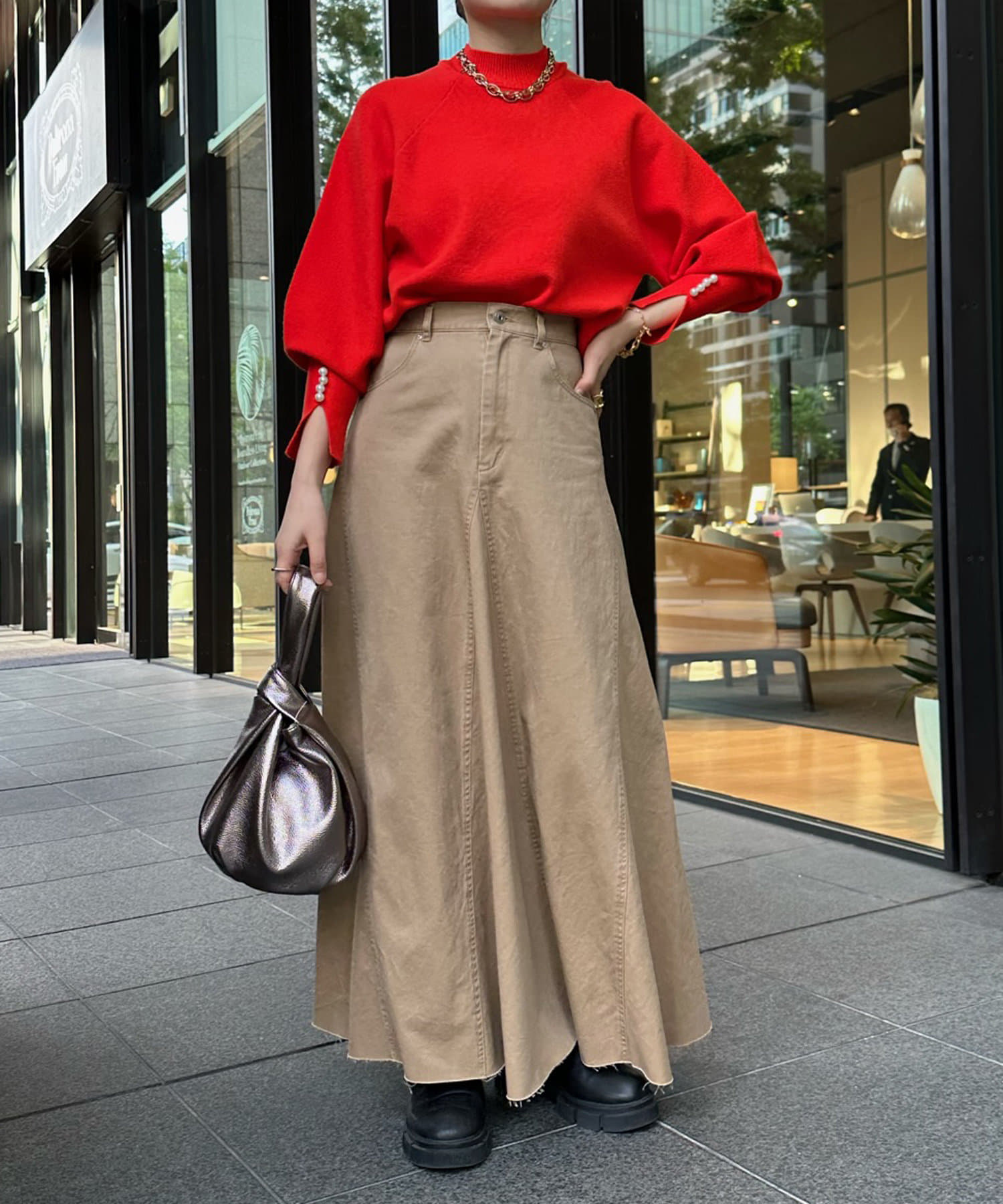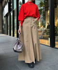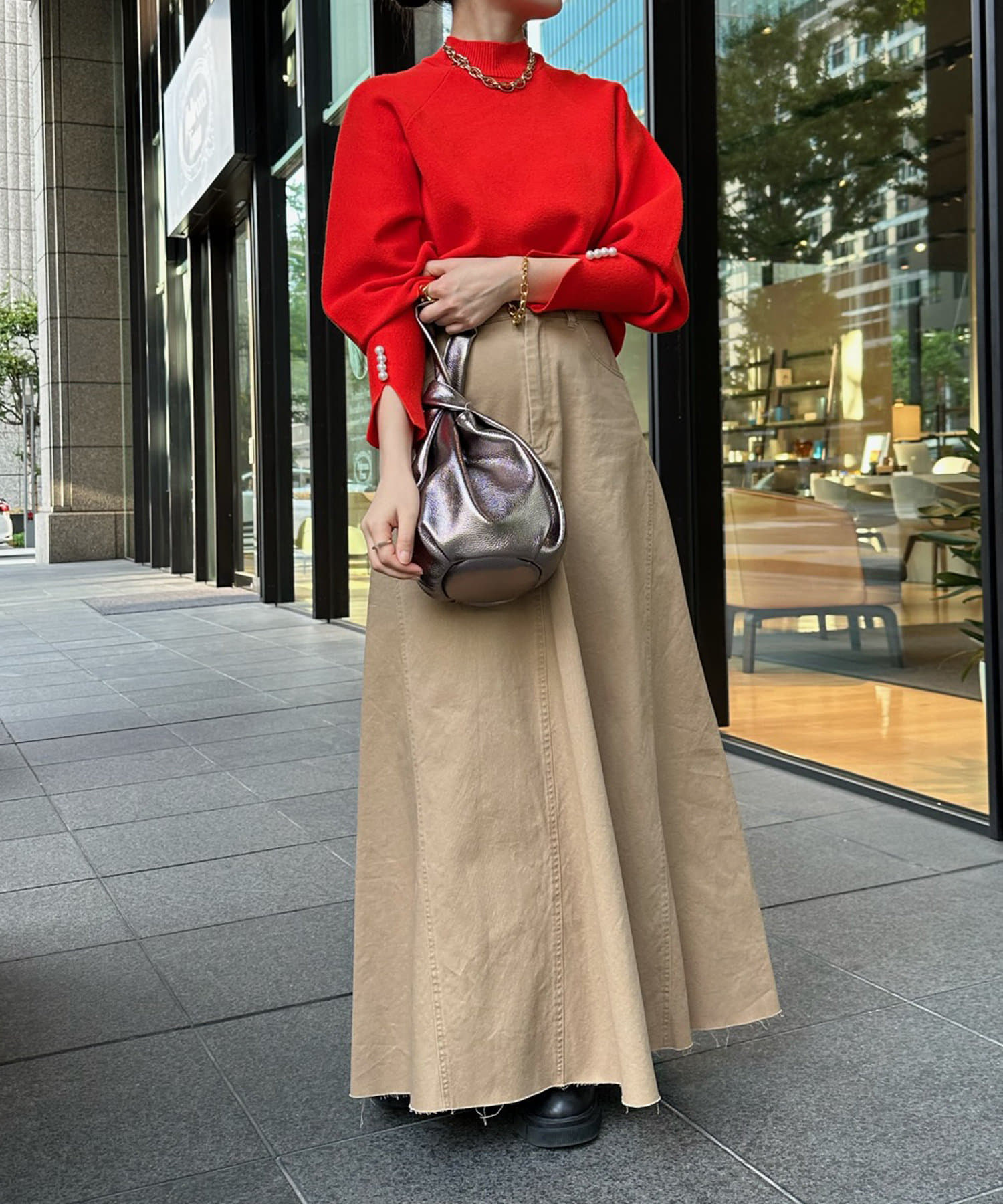 しっかりした素材感なのでシルエットに動きをつけてくれて、体形カバーも叶いますよ!